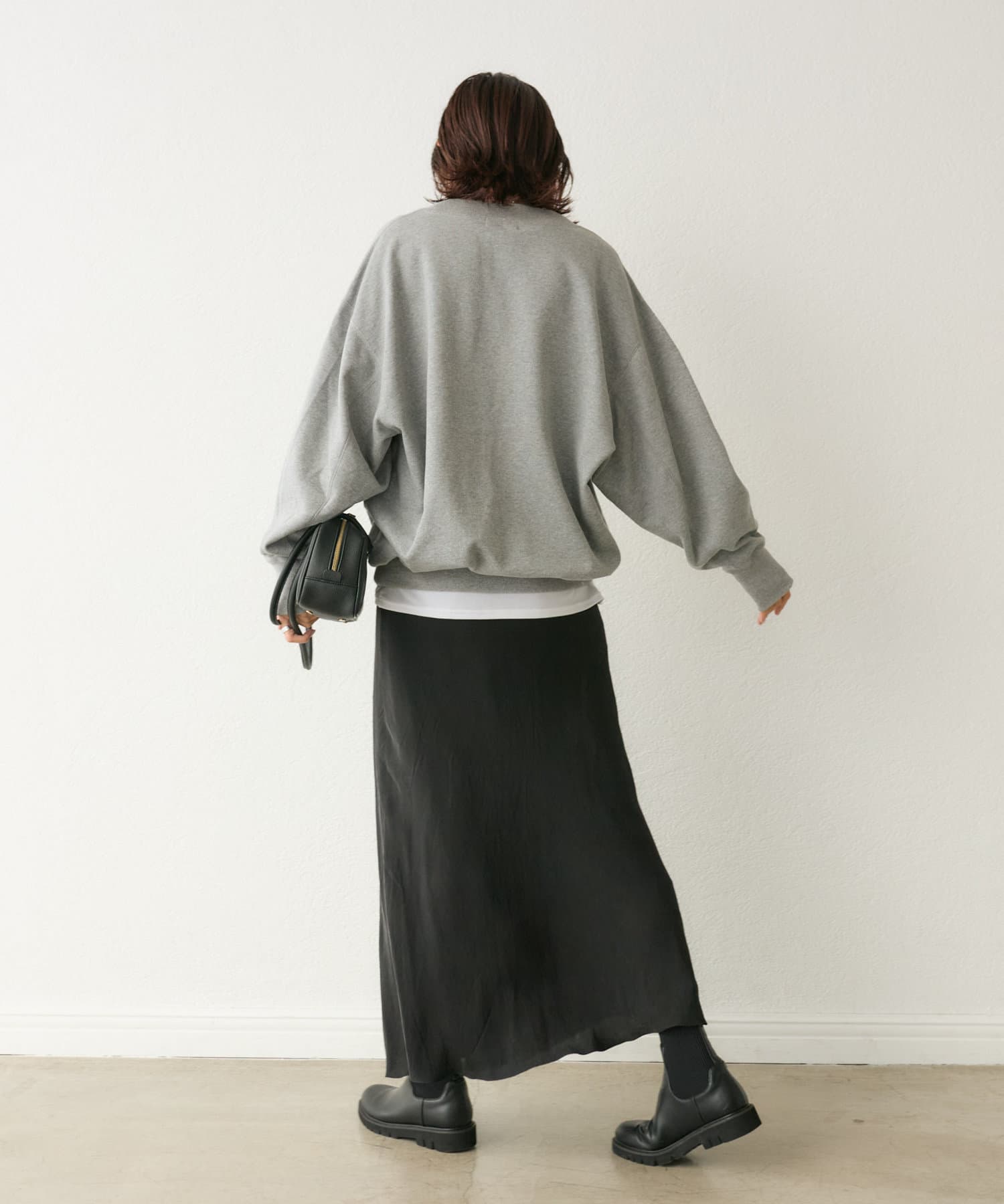 程よくハリのある裏毛素材を使用しており、袖廻りのゆるっとしたフォルムや、後ろ下がりのシルエットが綺麗に出るようになっております。