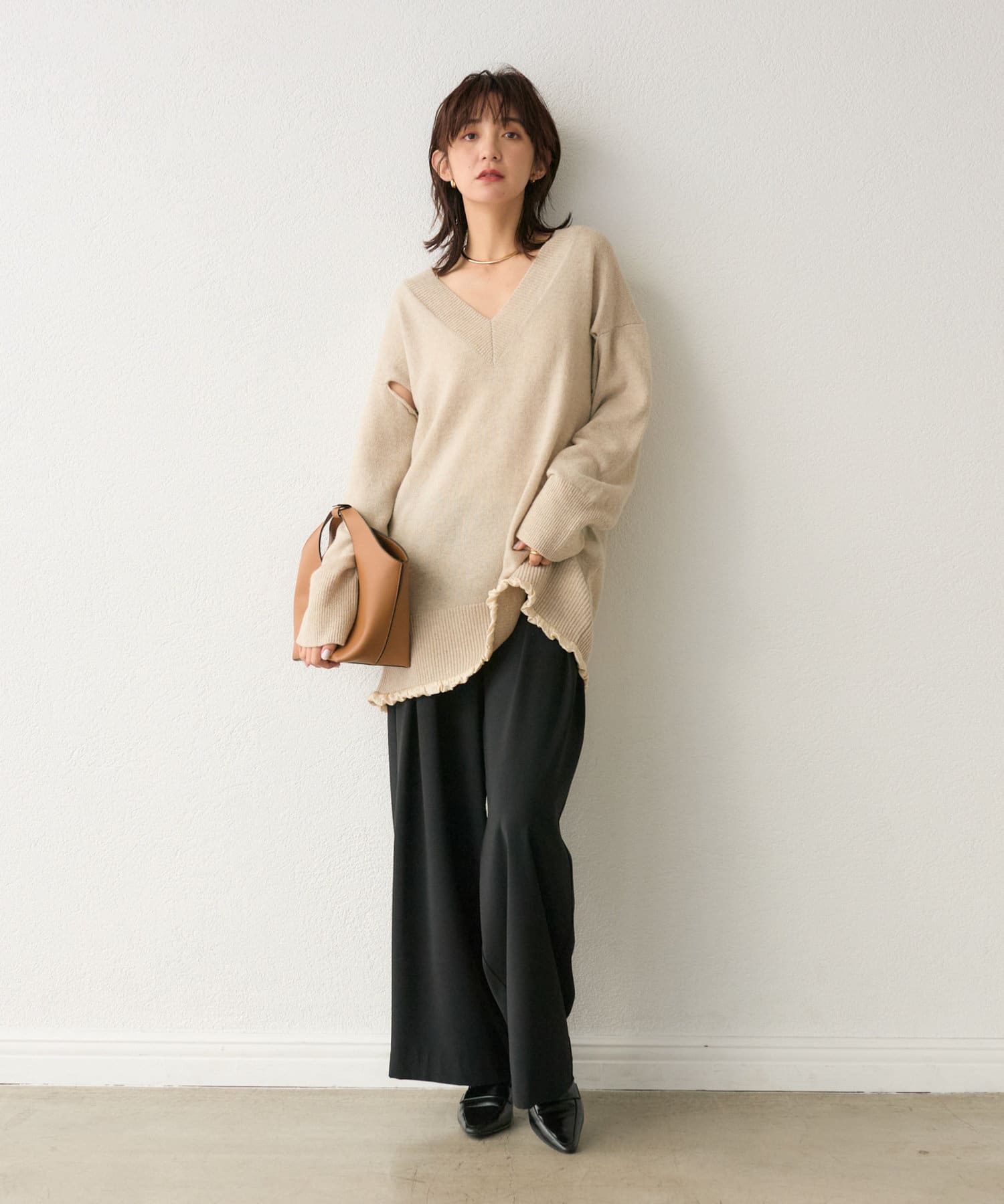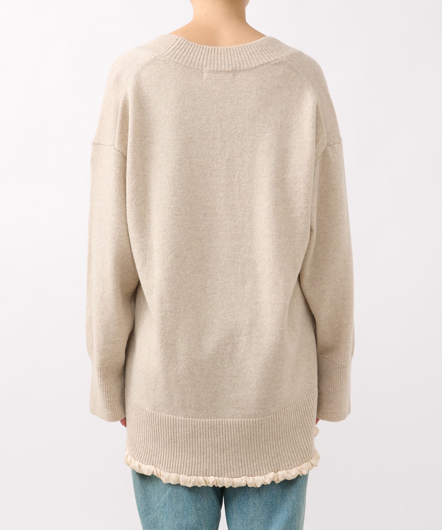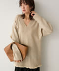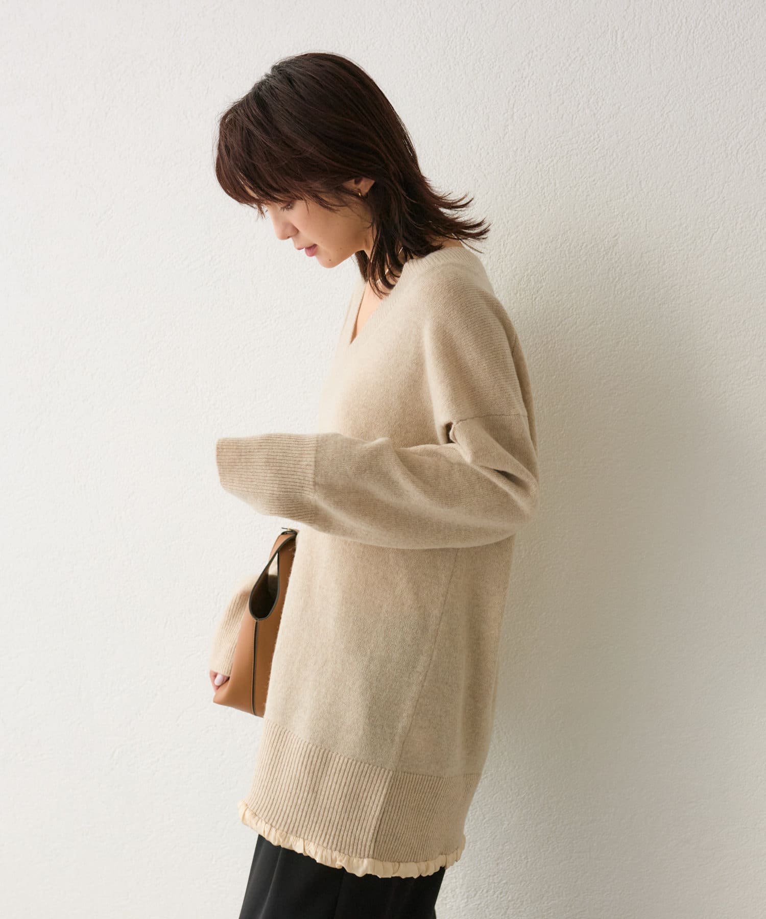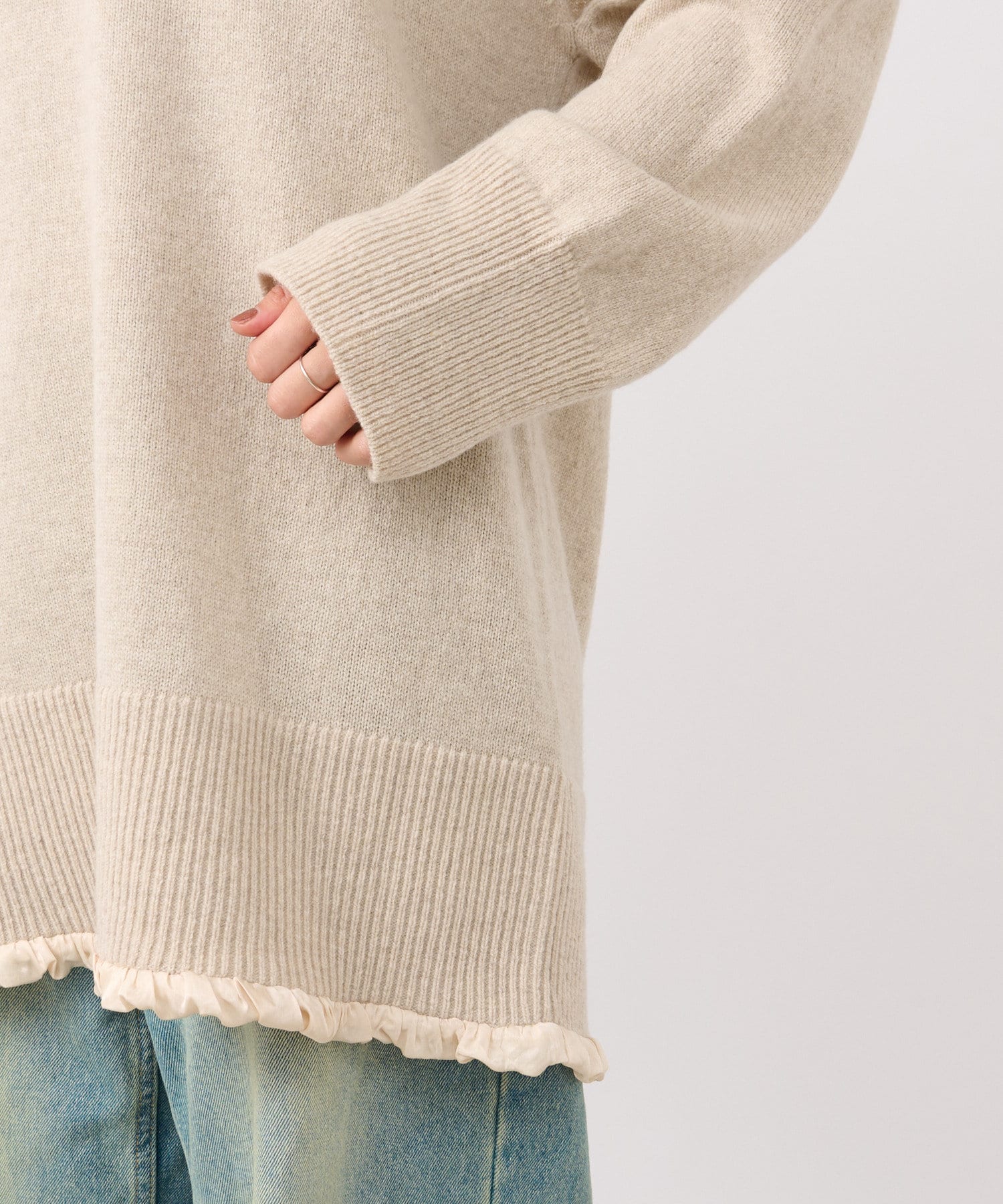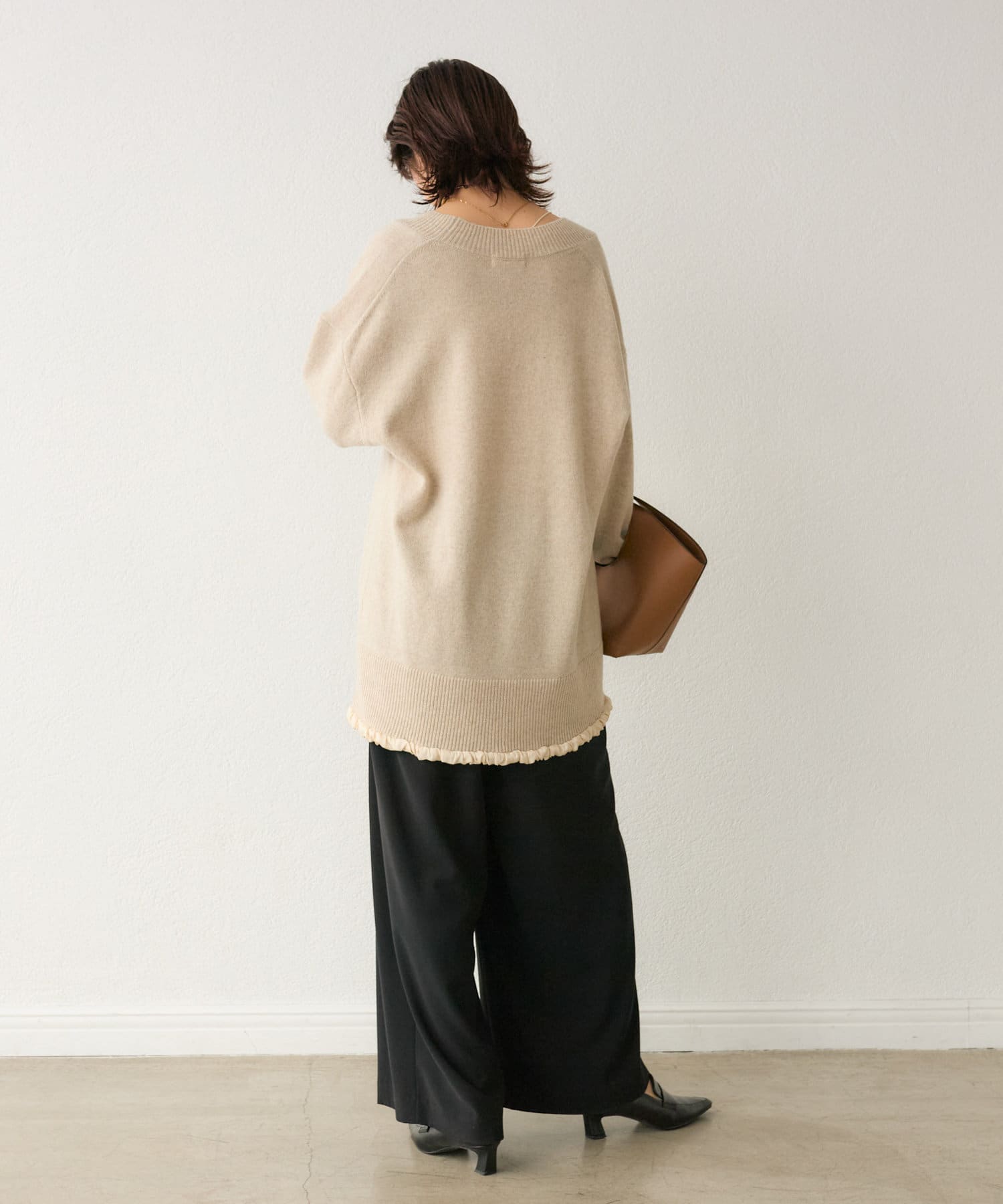 ゆるいシルエットと裾のあしらいがポイントのニット。