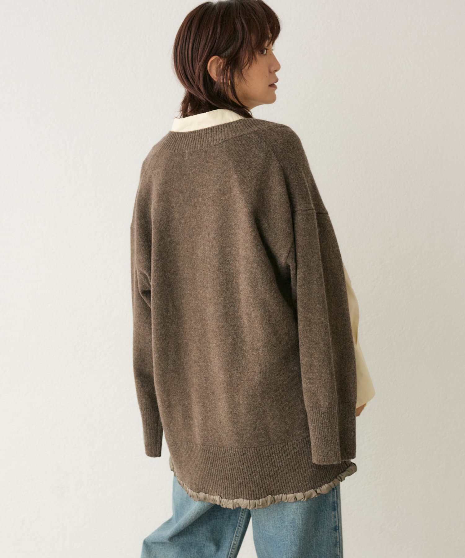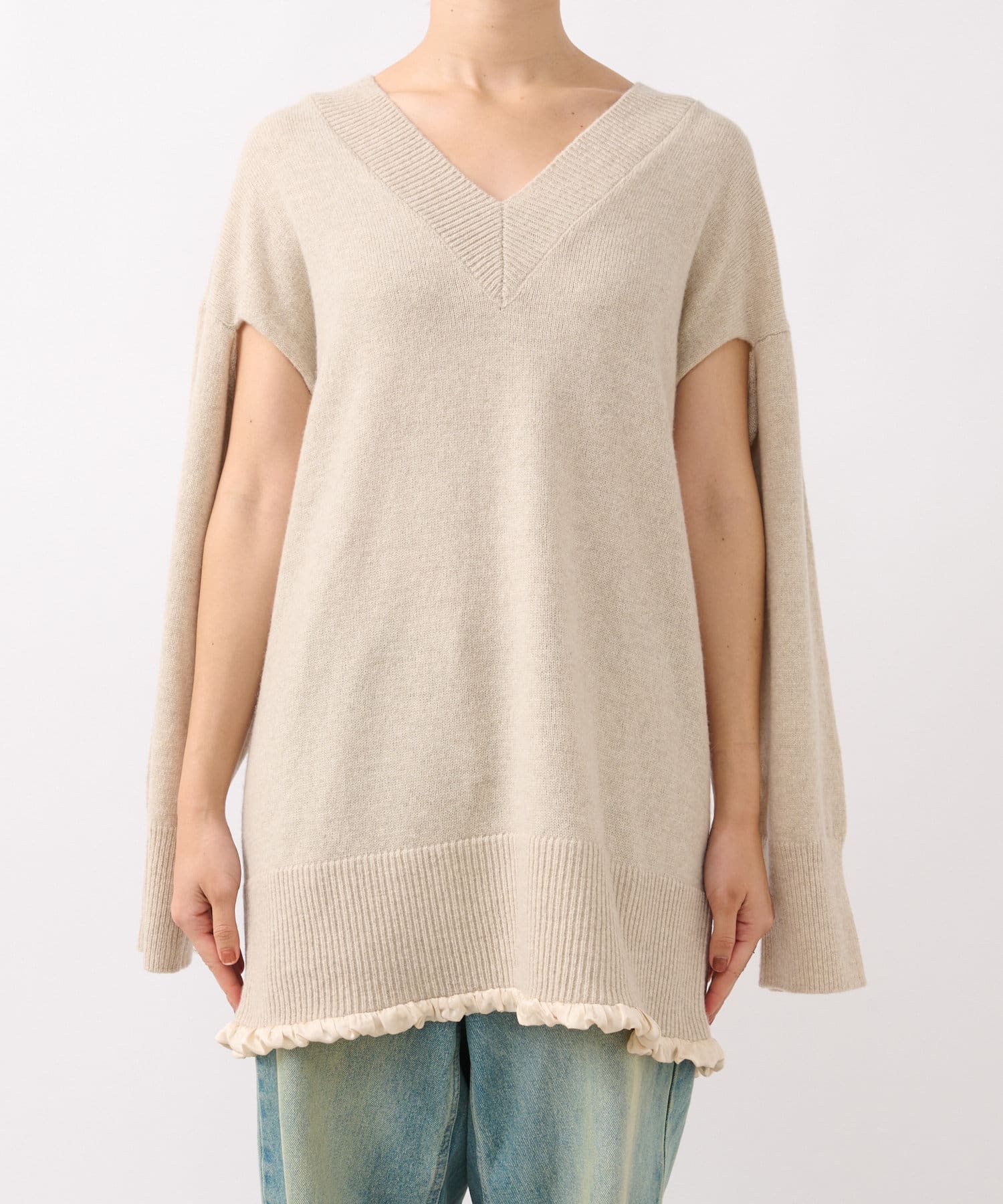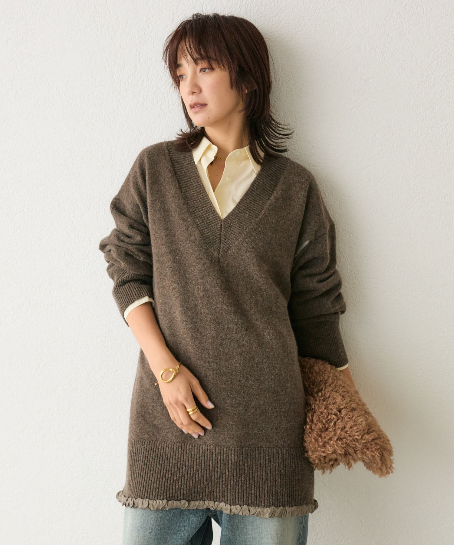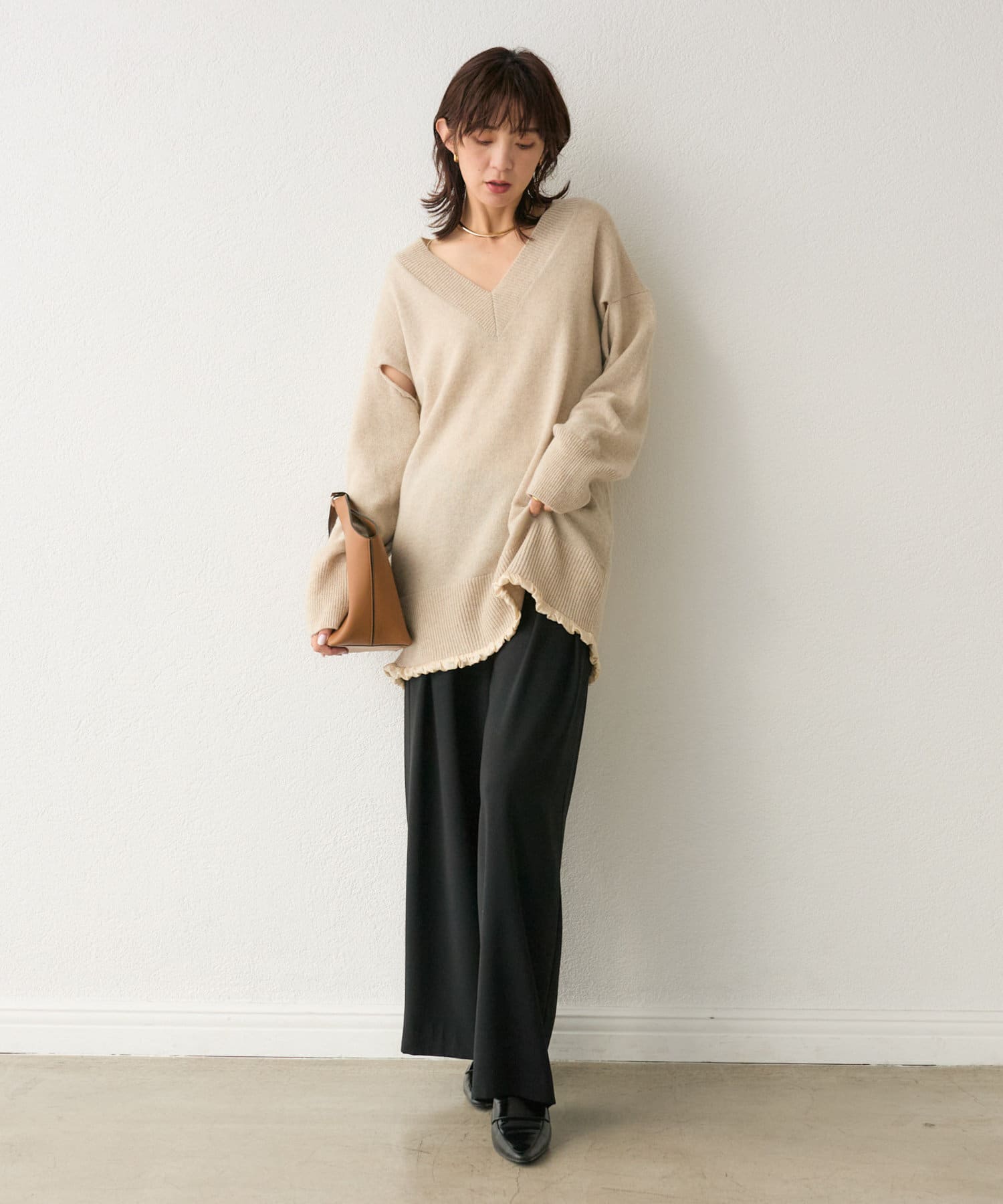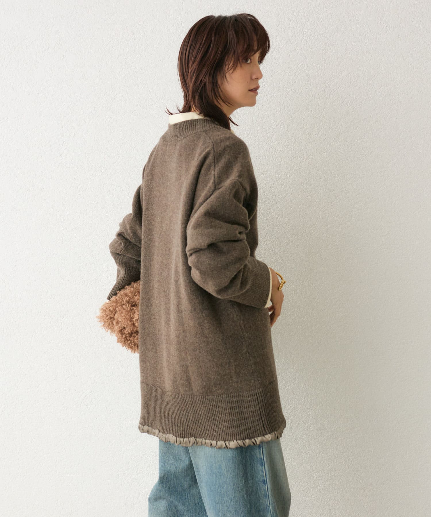 ゆるいシルエットと裾のあしらいがポイントのニット。