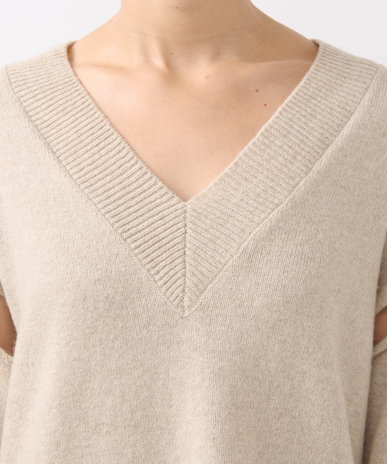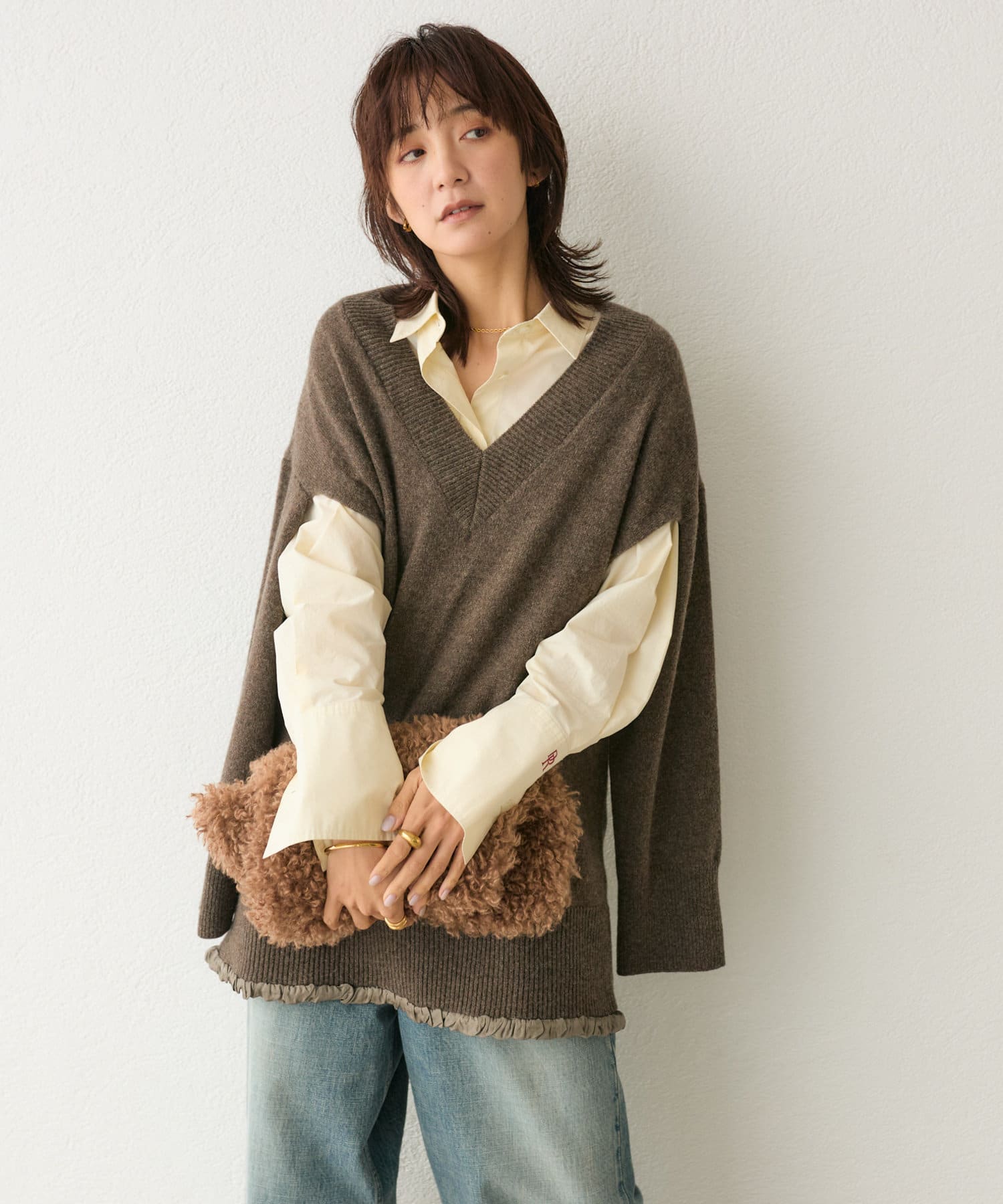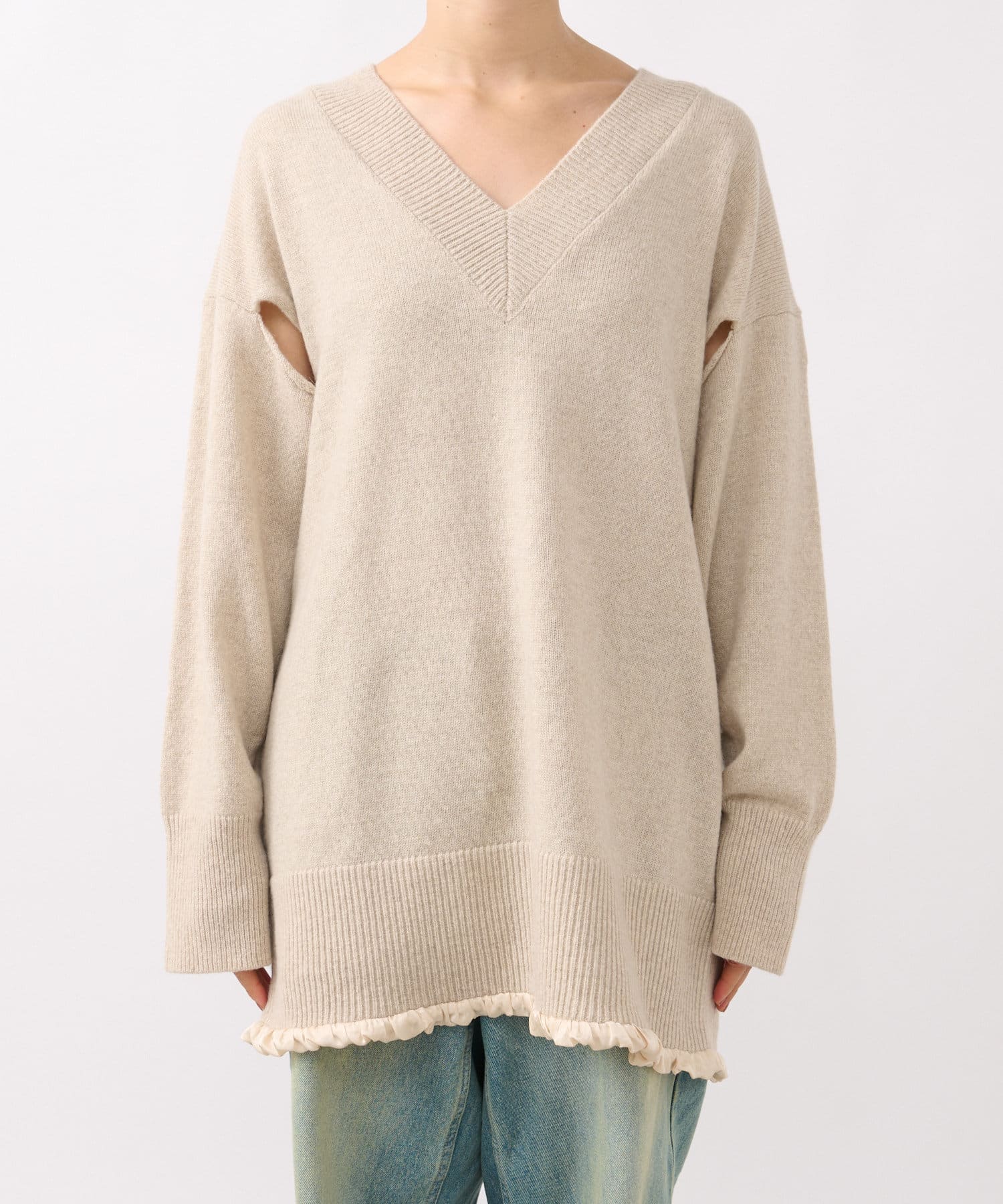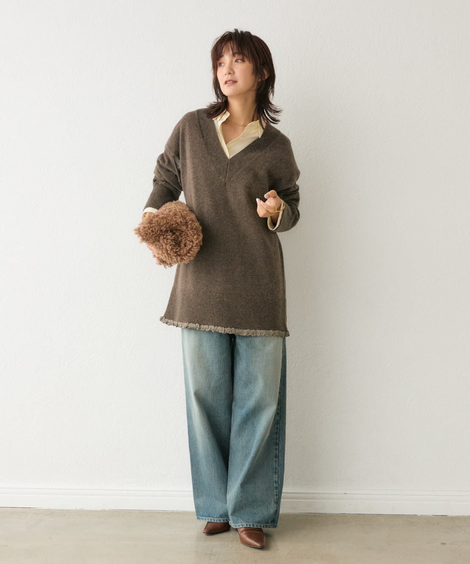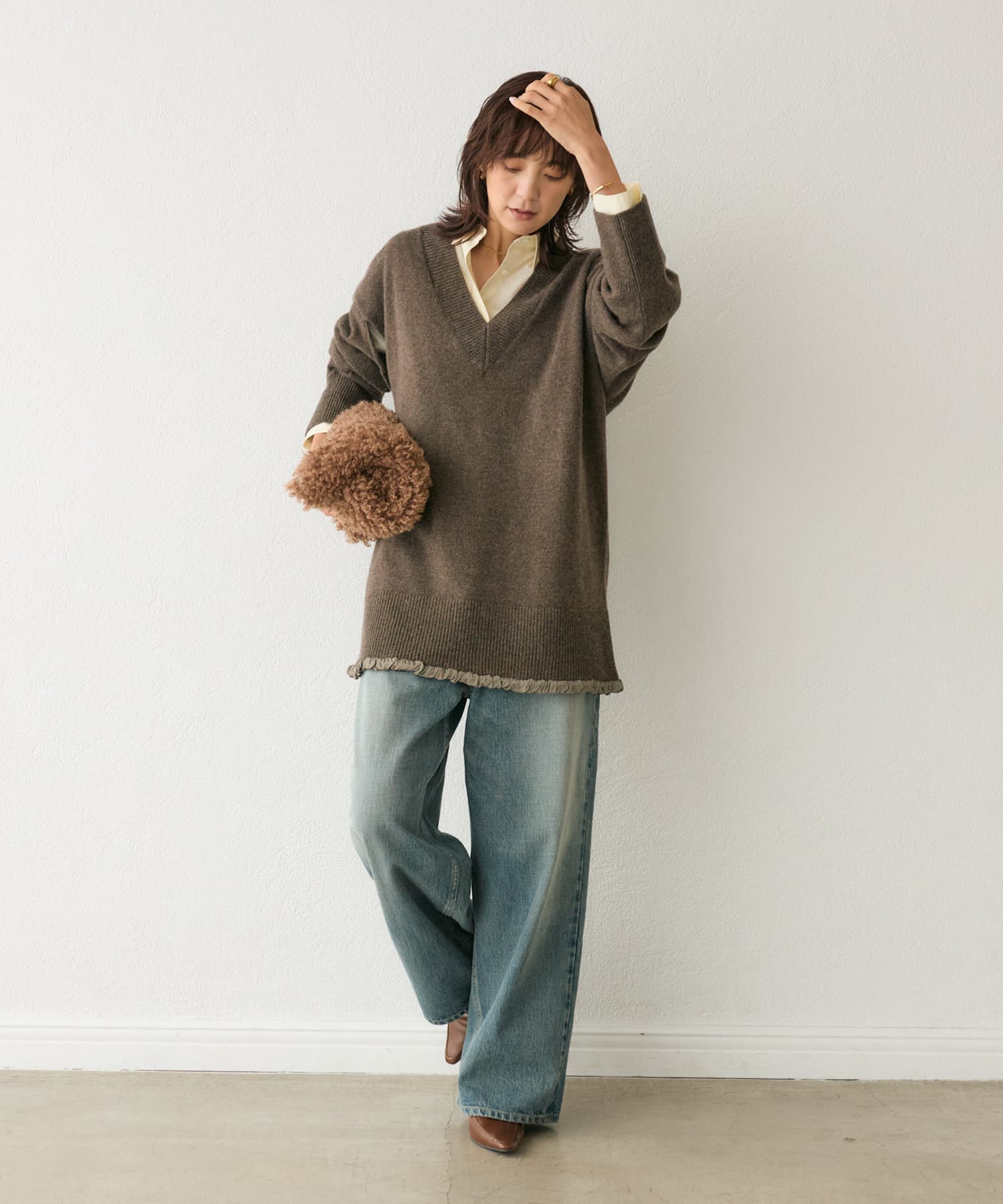 ゆるいシルエットと裾のあしらいがポイントのニット。