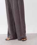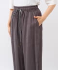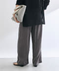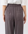 ウエストゴムで腰回りもゆったりとしたシルエットですが、素材の落ち感ですっきり見せてくれます。