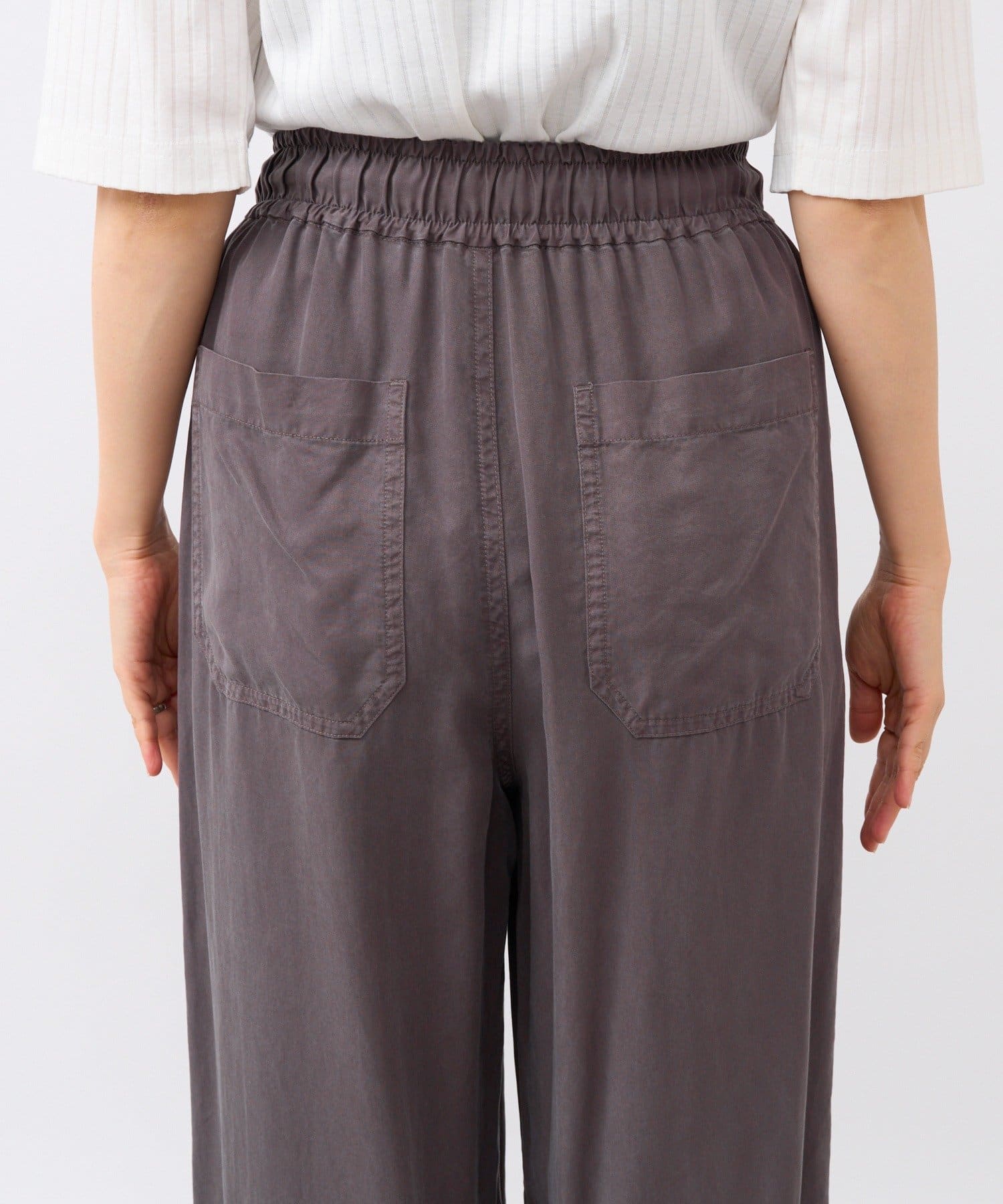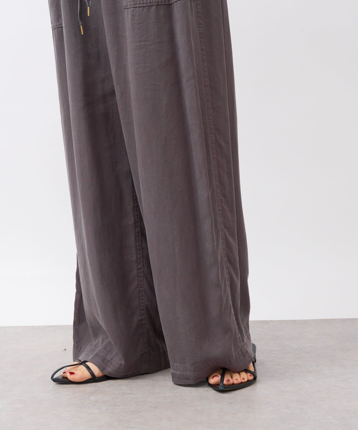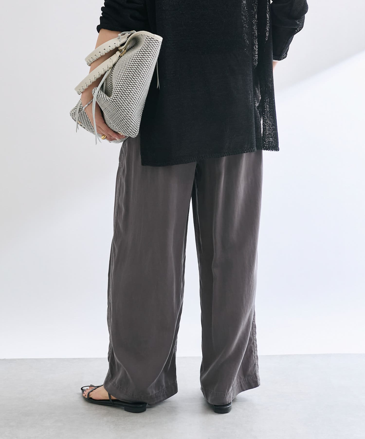 落ち感のあるテンセルツイルを使用して、製品染を施したワイドパンツ。