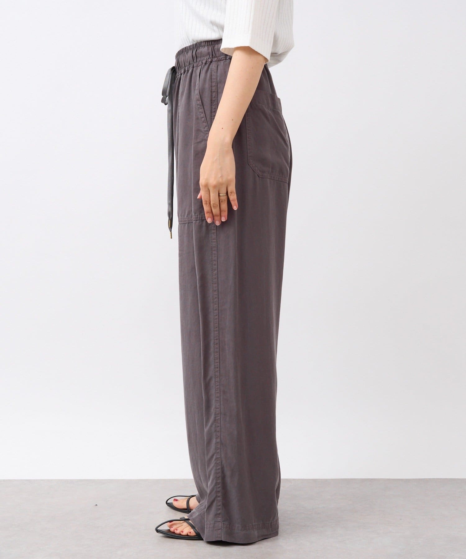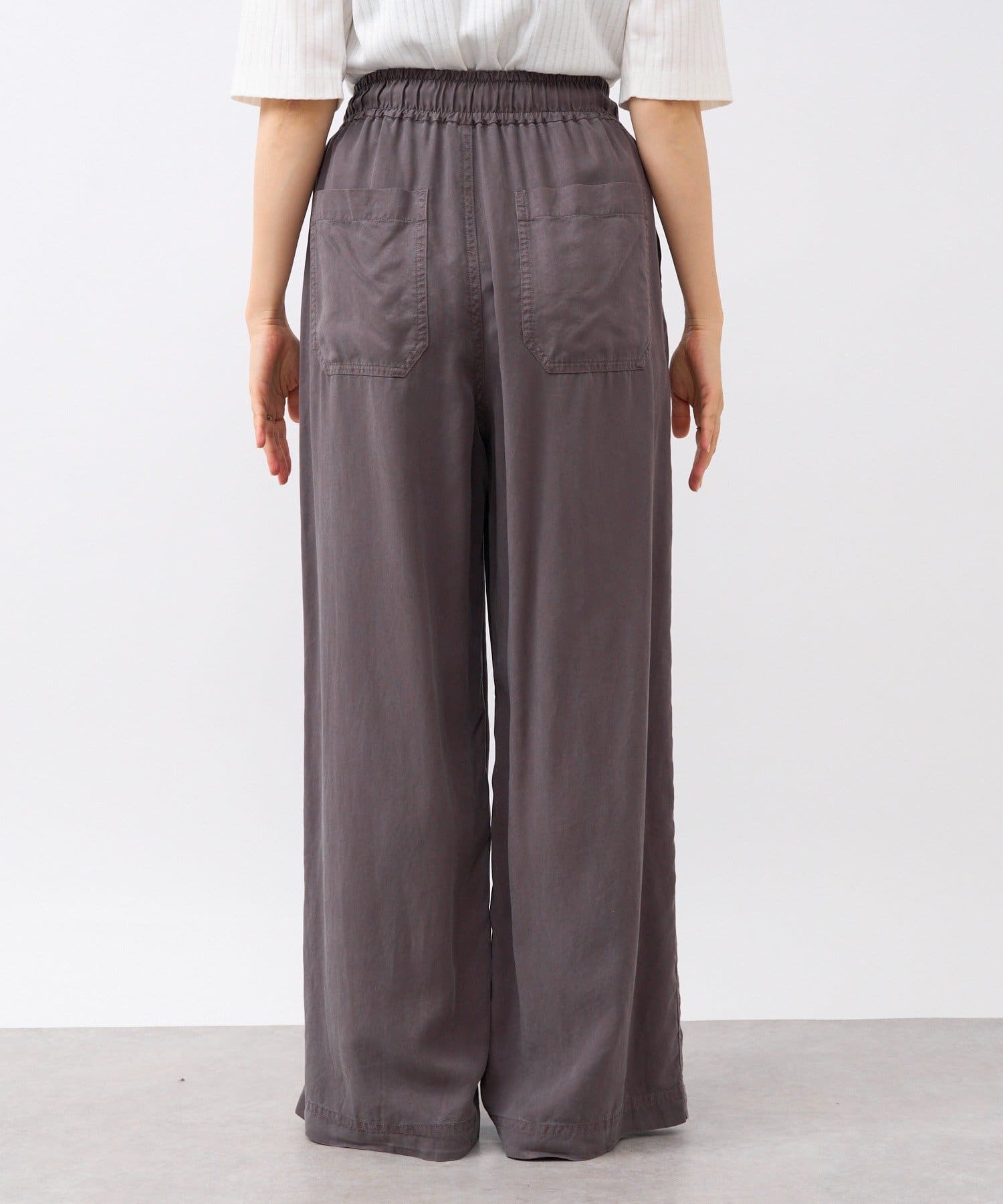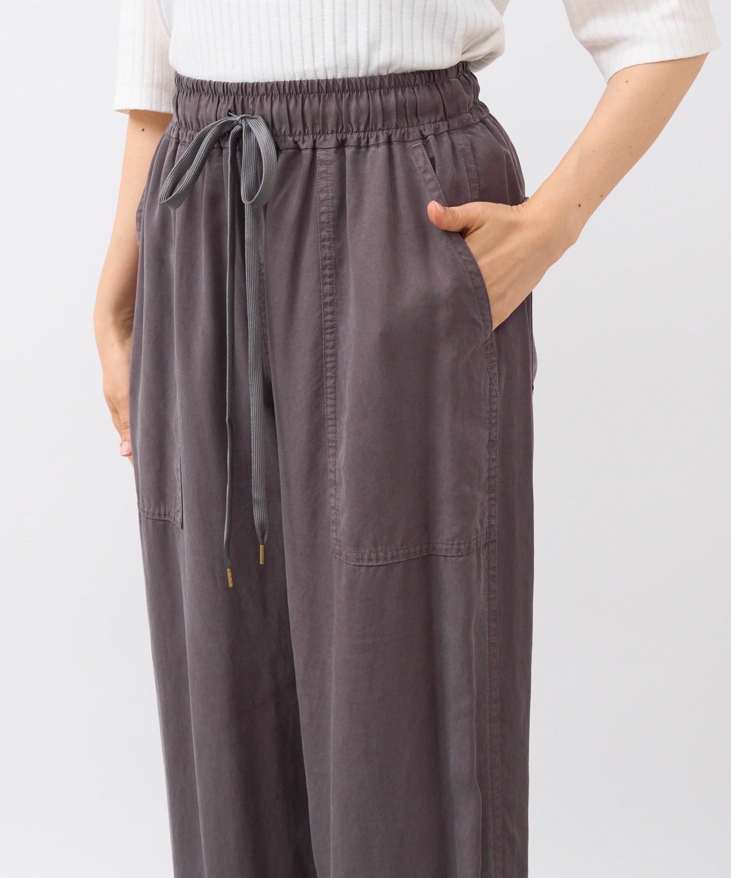 落ち感のあるテンセルツイルを使用して、製品染を施したワイドパンツ。