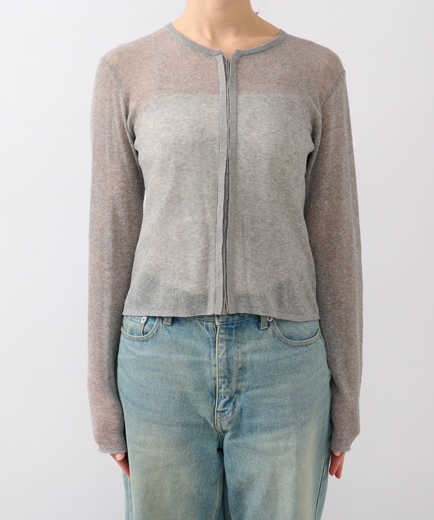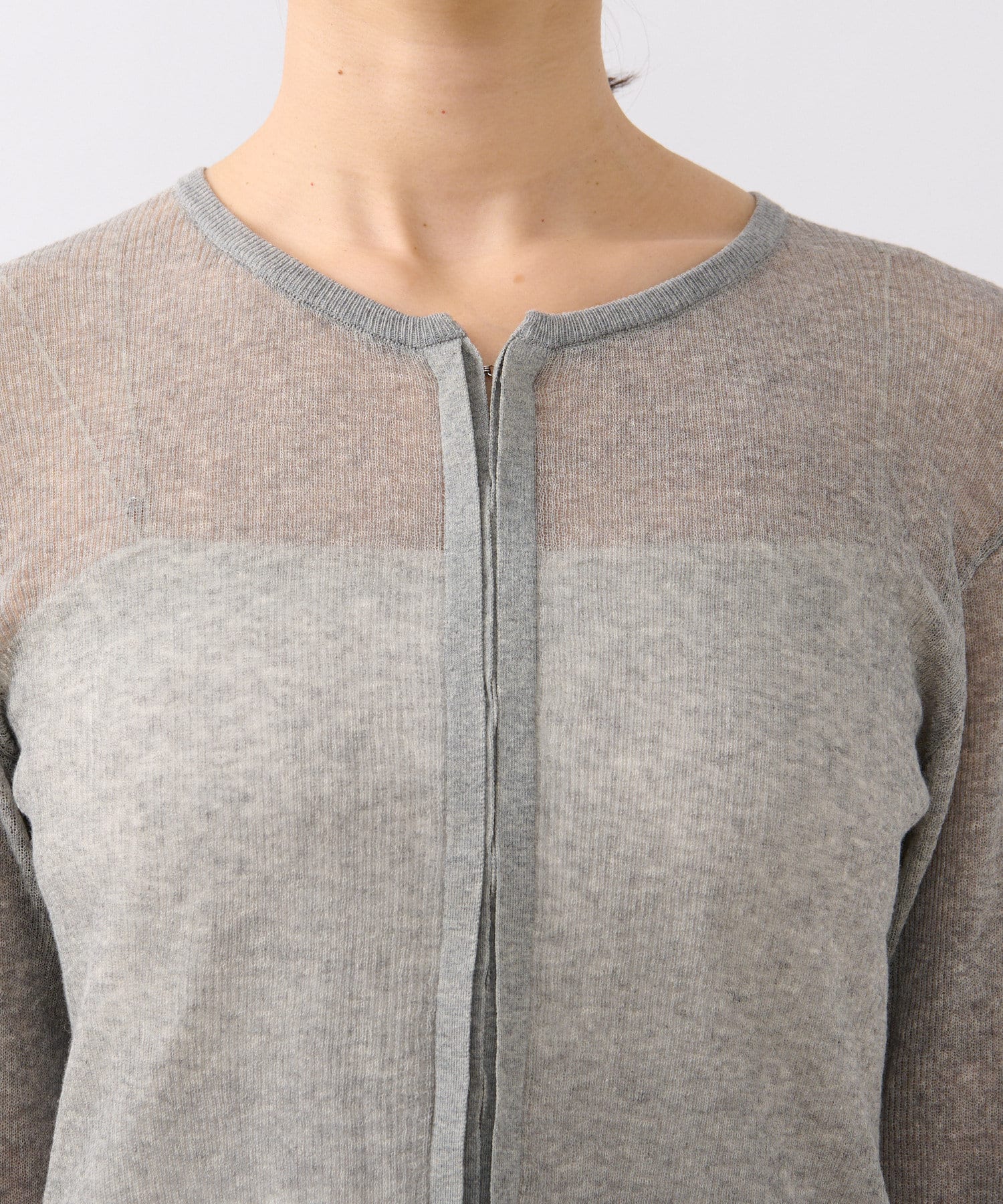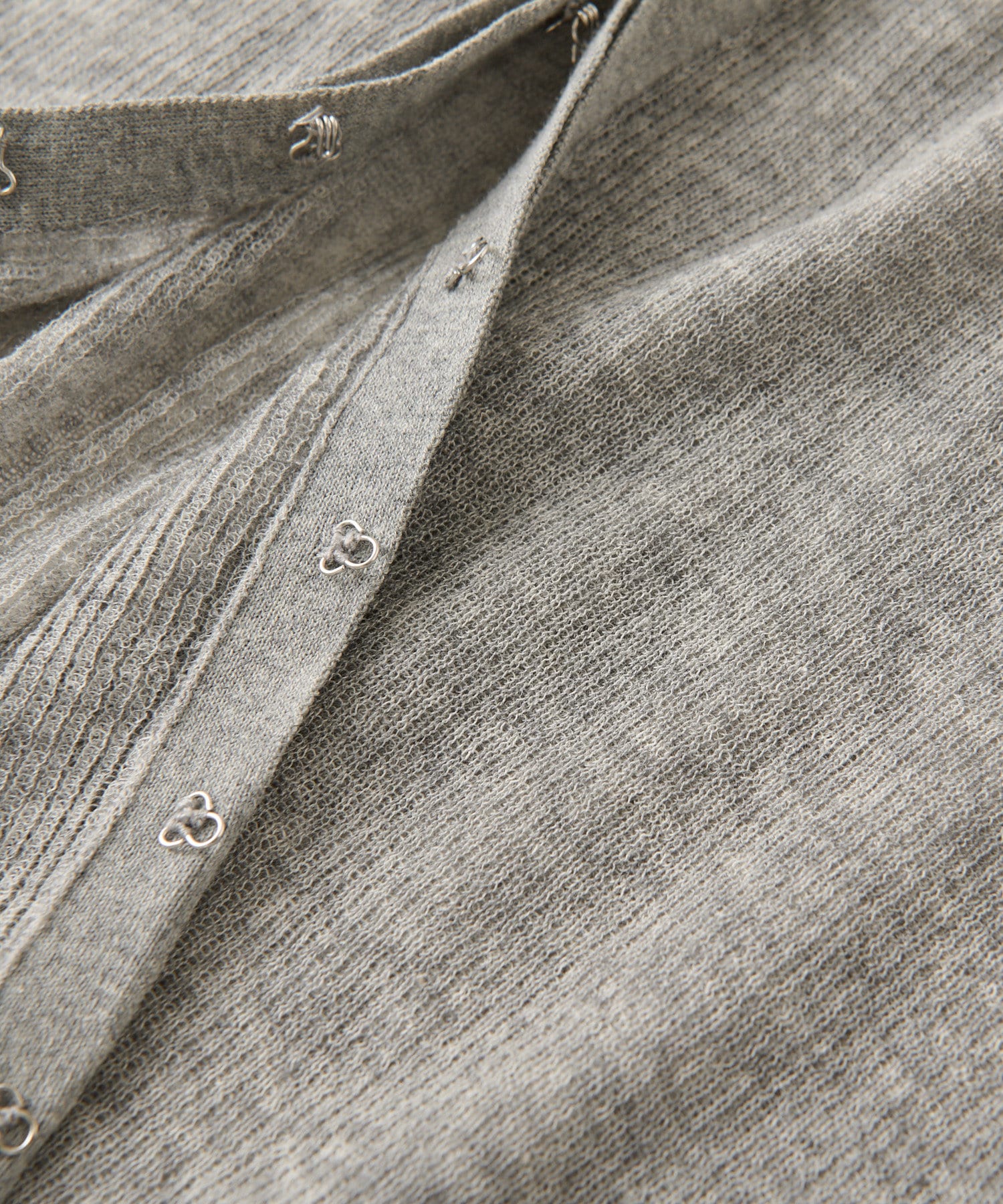 コットンナイロンの糸を使用した、繊細でさらっと柔らかいニュアンスのある風合いのリブカーディガン。