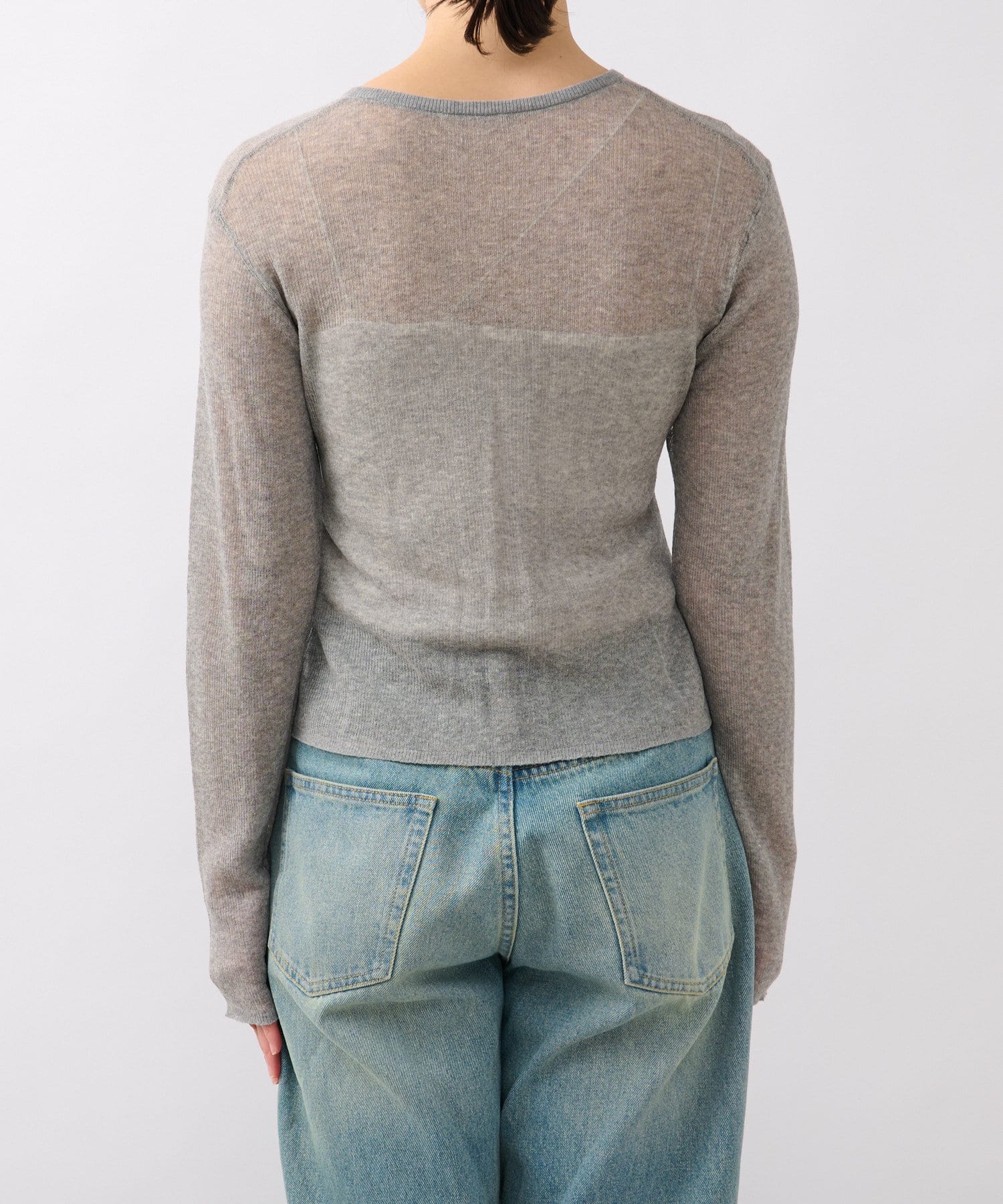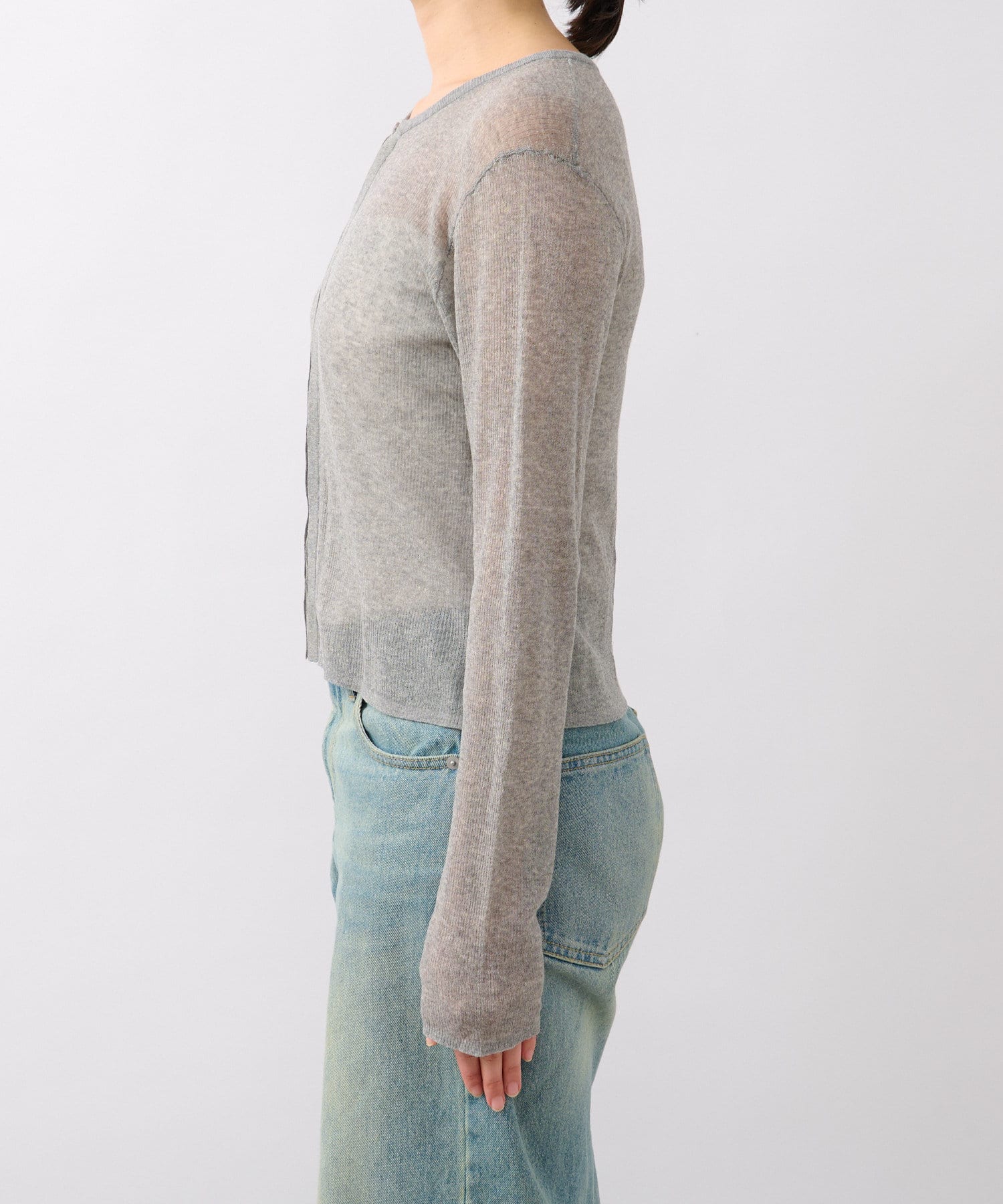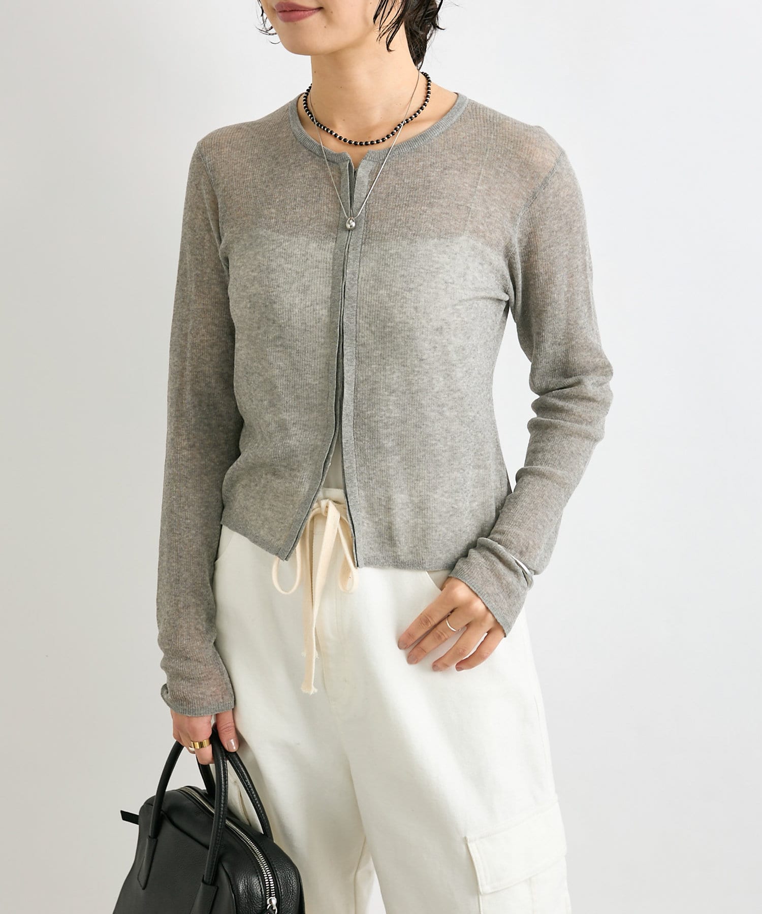 コットンナイロンの糸を使用した、繊細でさらっと柔らかいニュアンスのある風合いのリブカーディガン。
