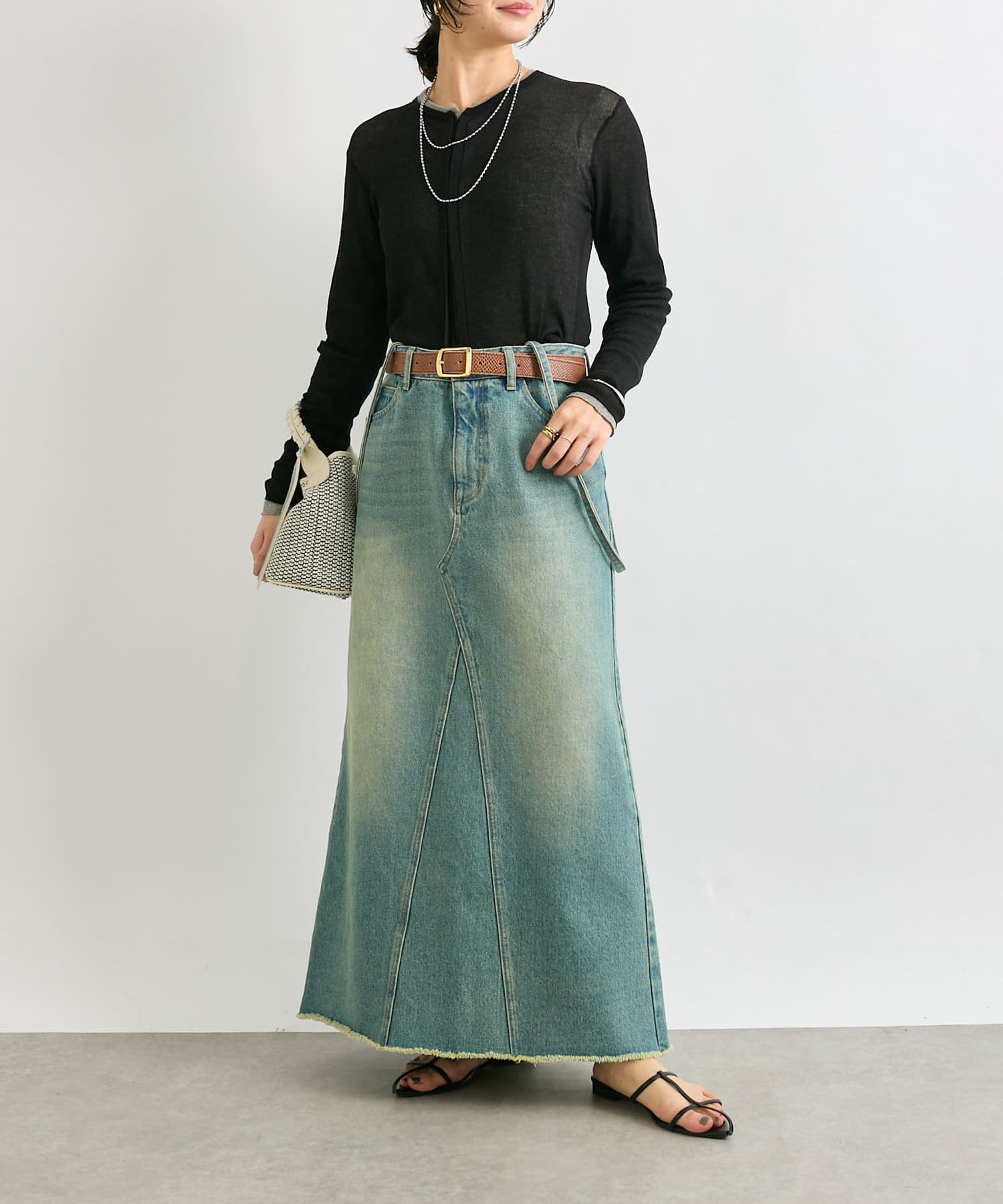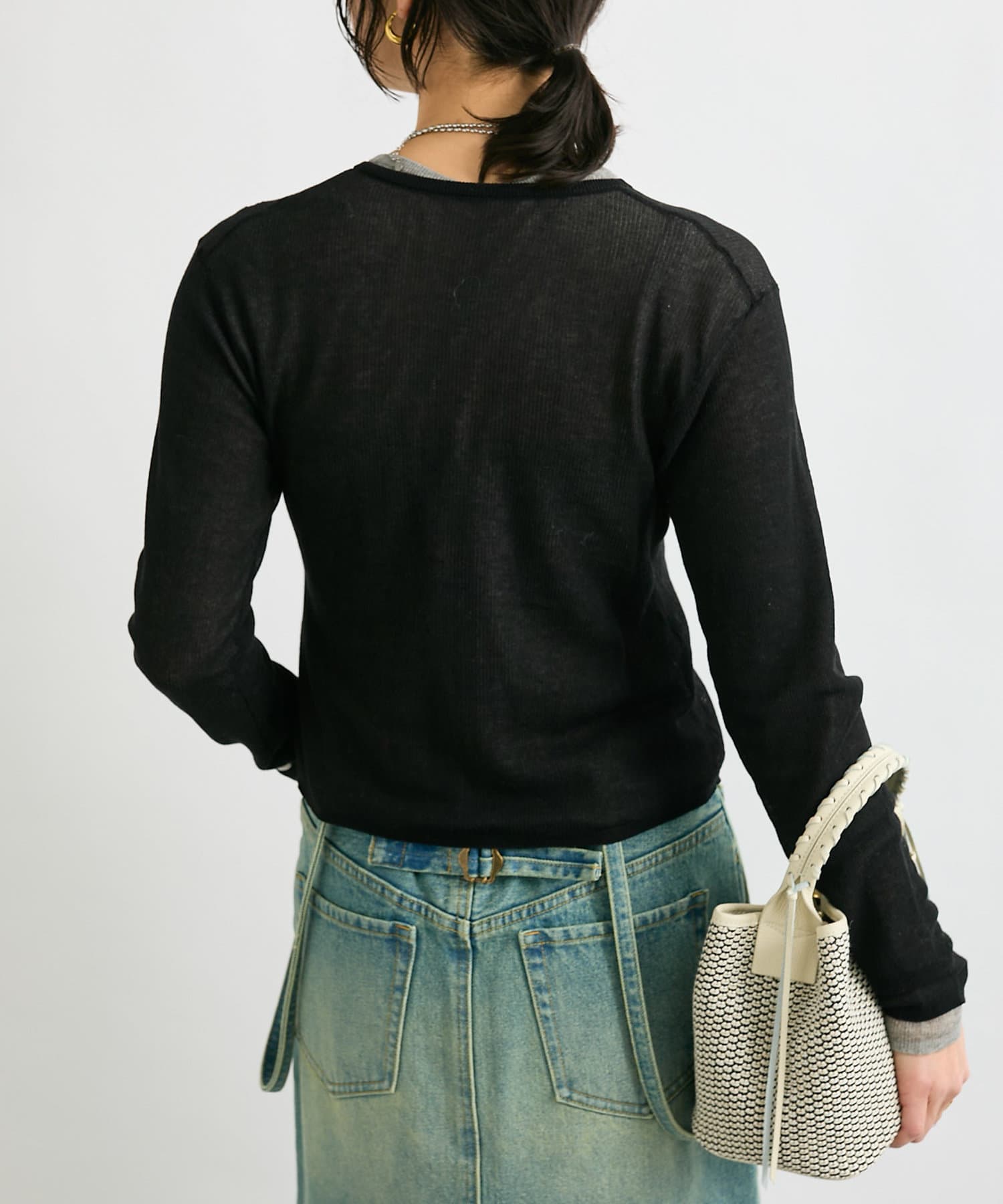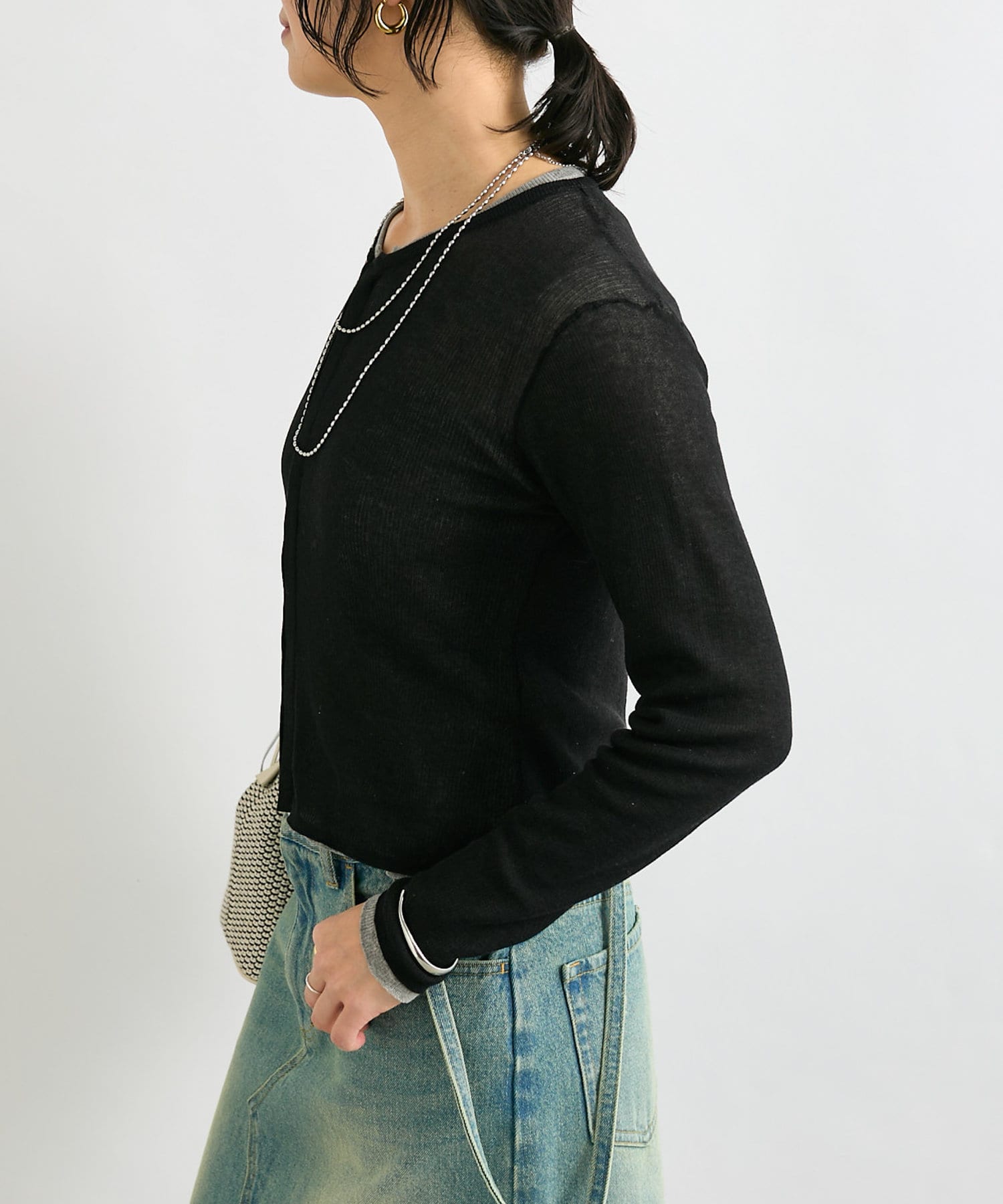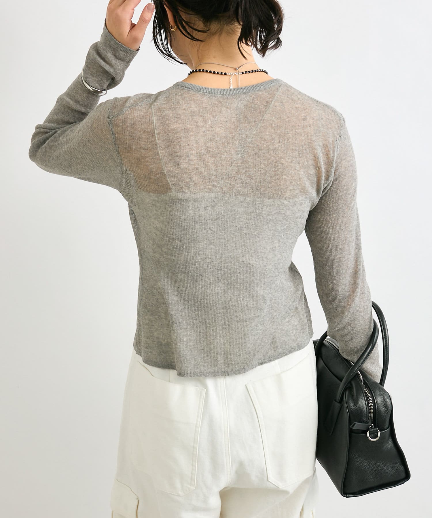 先行感のあるセミシアーな見え感でインナーとのコーディネートを楽しんでいただけます。