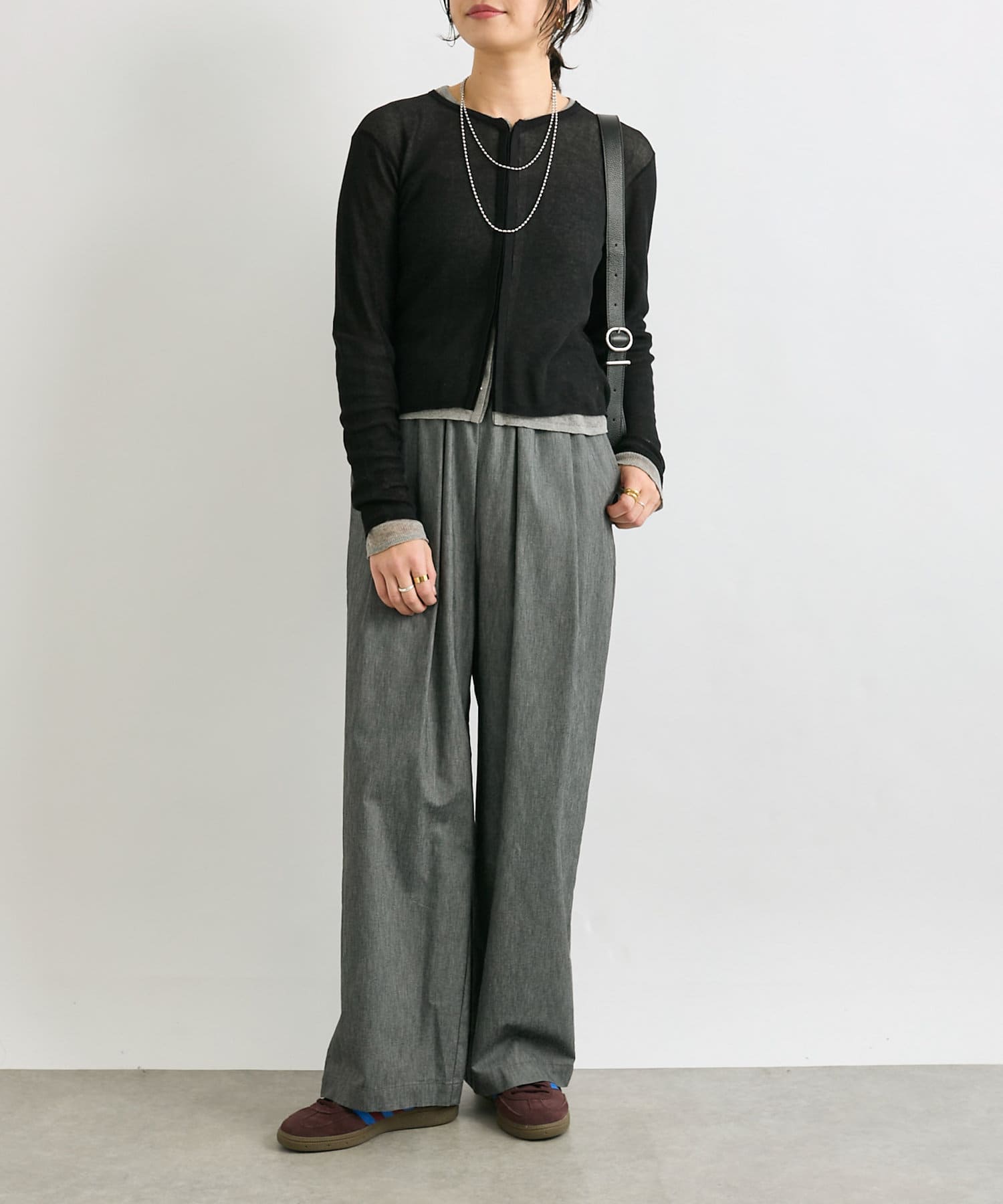 コンパクトで短めの着丈なのですっきりと着ていただけるため、ボリュームのあるボトムとの合わせがおすすめです。