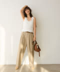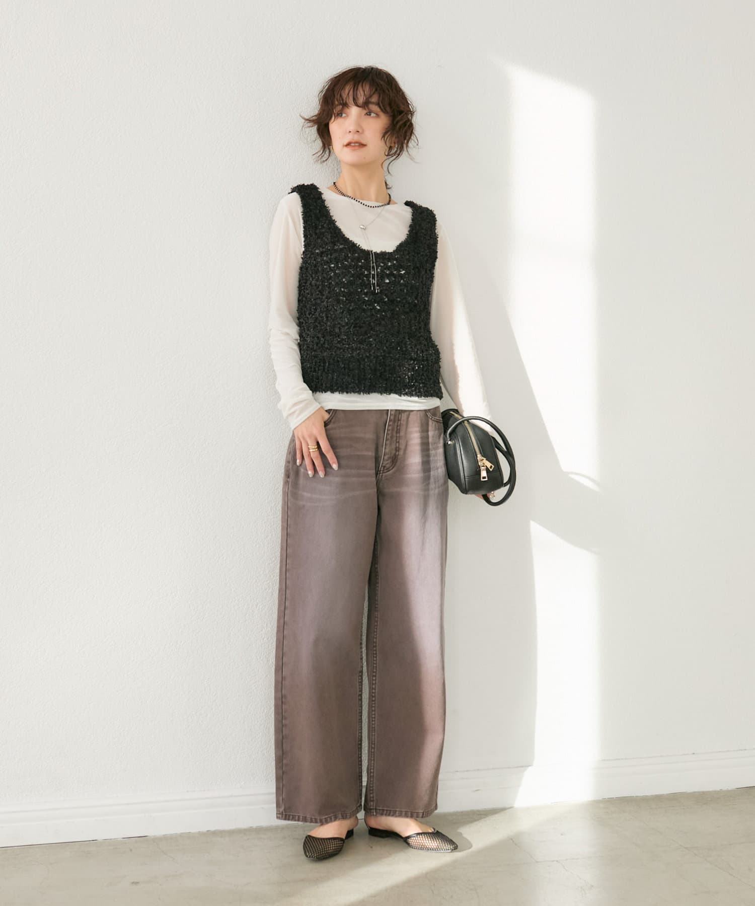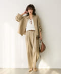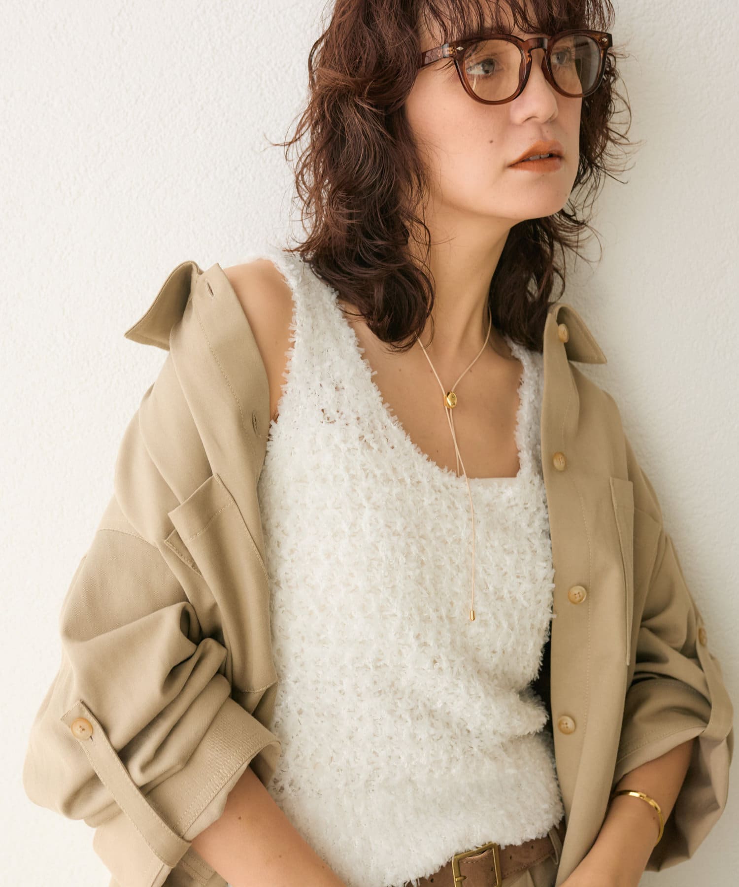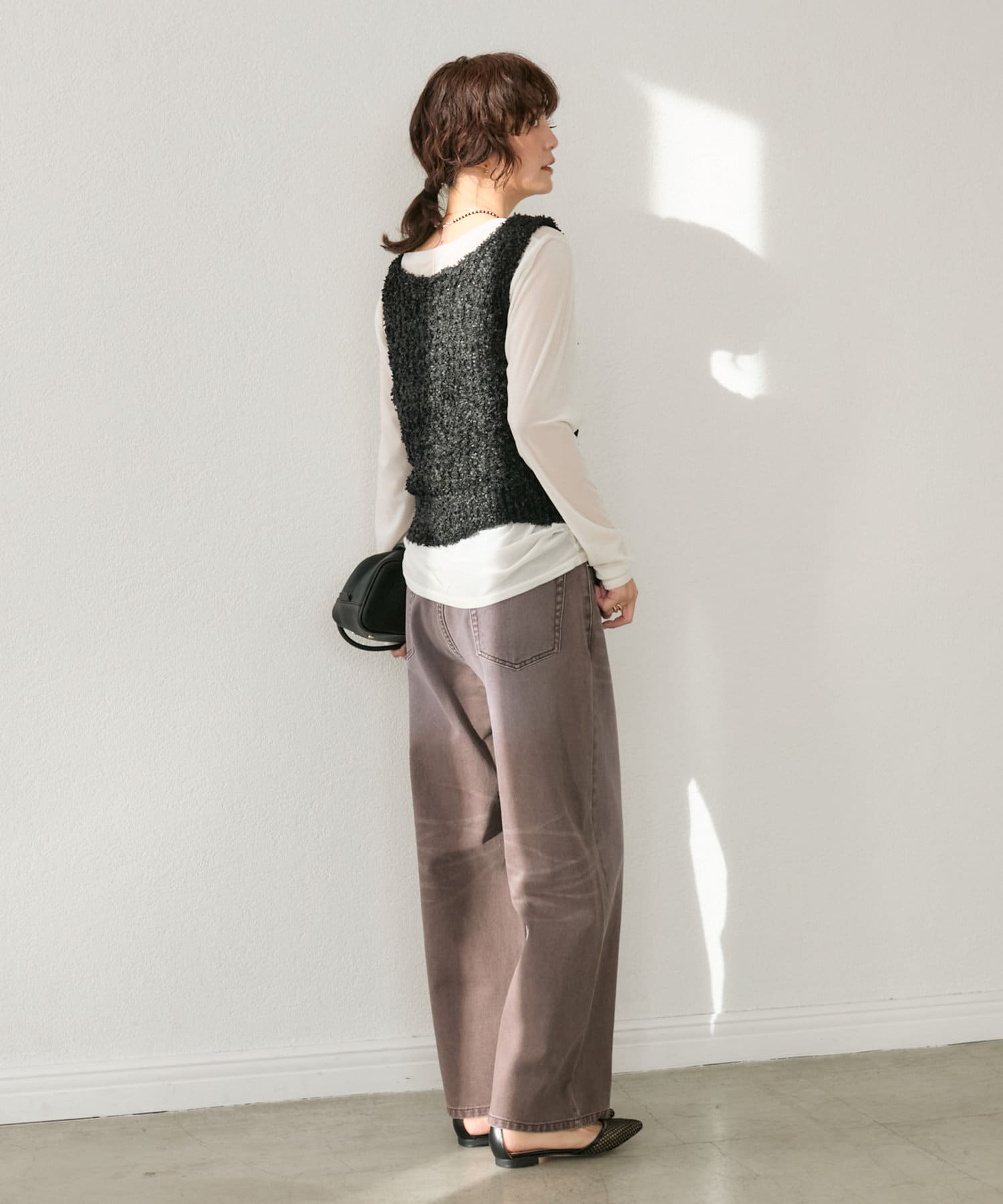 深めに開いた襟ぐりと、少し詰まった衿ぐりで前後2wayで着用できるので、合わせるアイテムによってお好みの着方を楽しんでいただくのも◎
