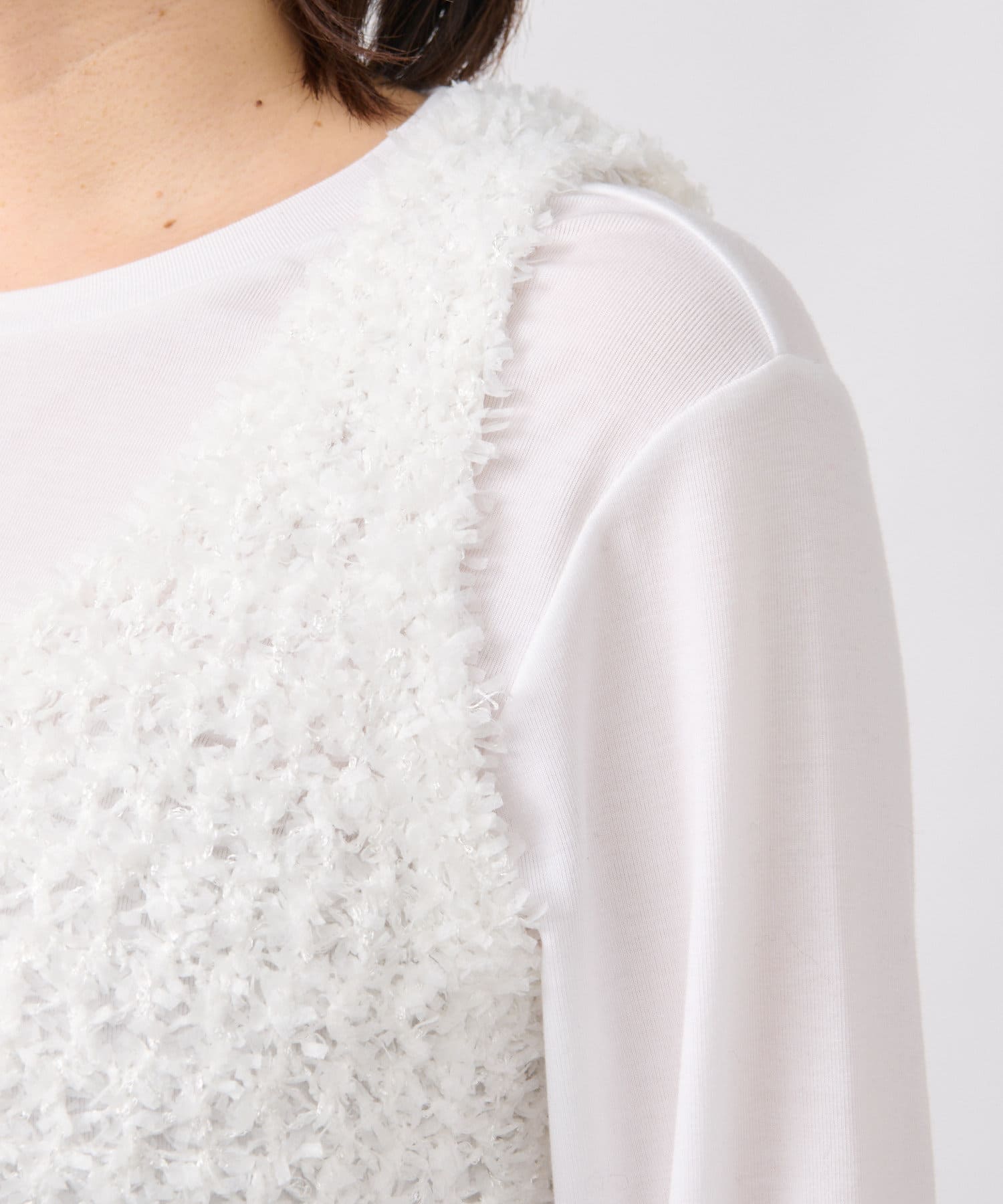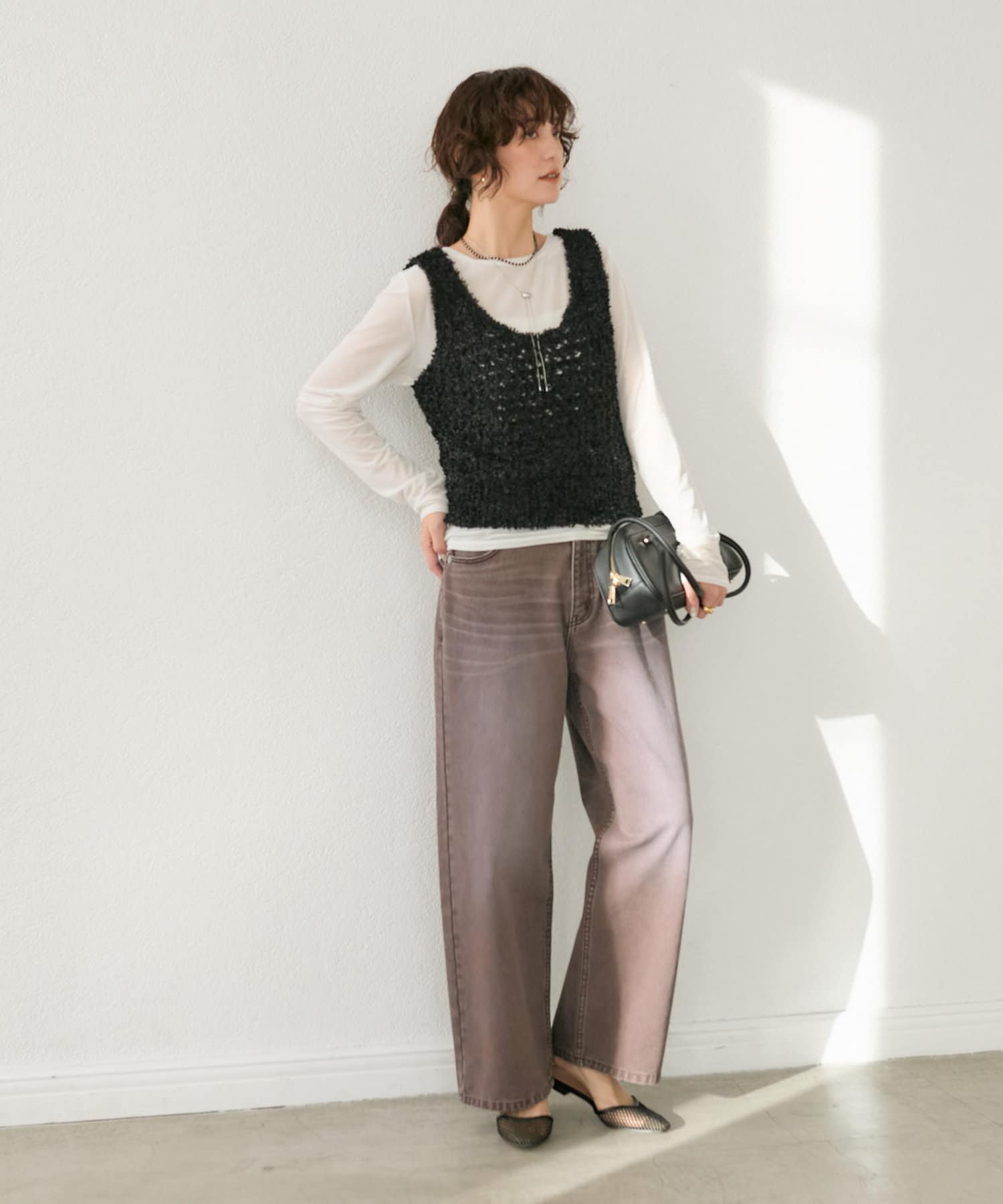 フリンジの表面感はありますが、メッシュ柄に編んで、すっきりと軽い印象に仕上げました。