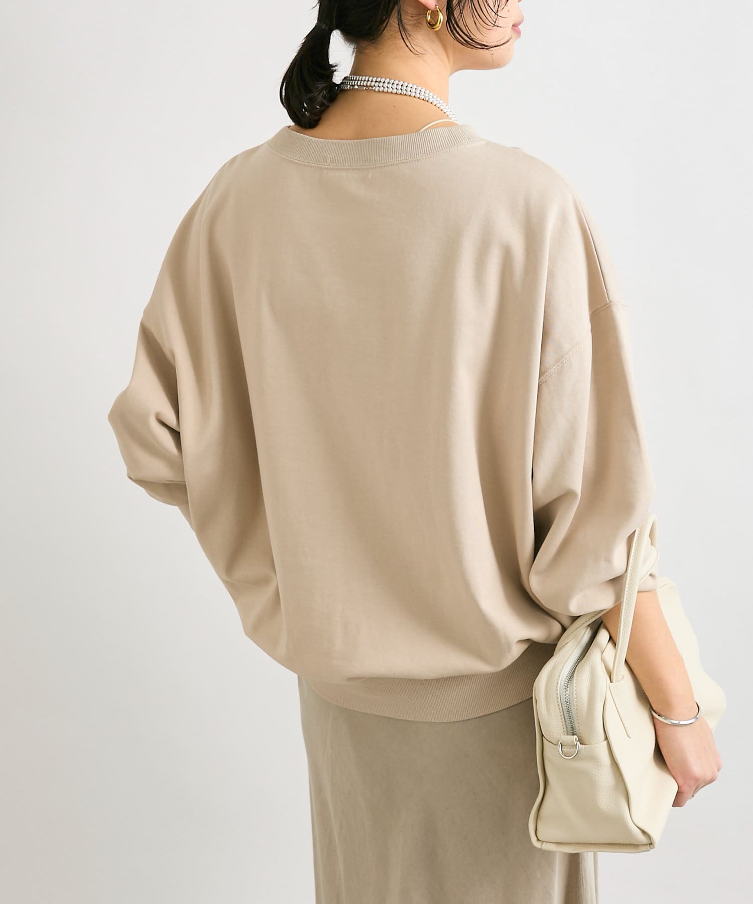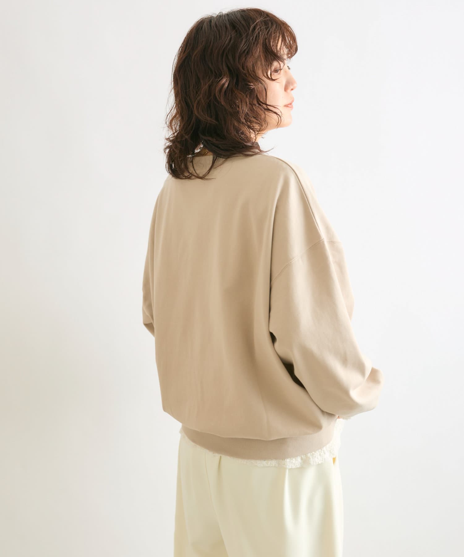 たっぷり目のシルエットですが軽くて薄手な裏毛素材を使用しているのでゴワつかず、着心地も抜群。