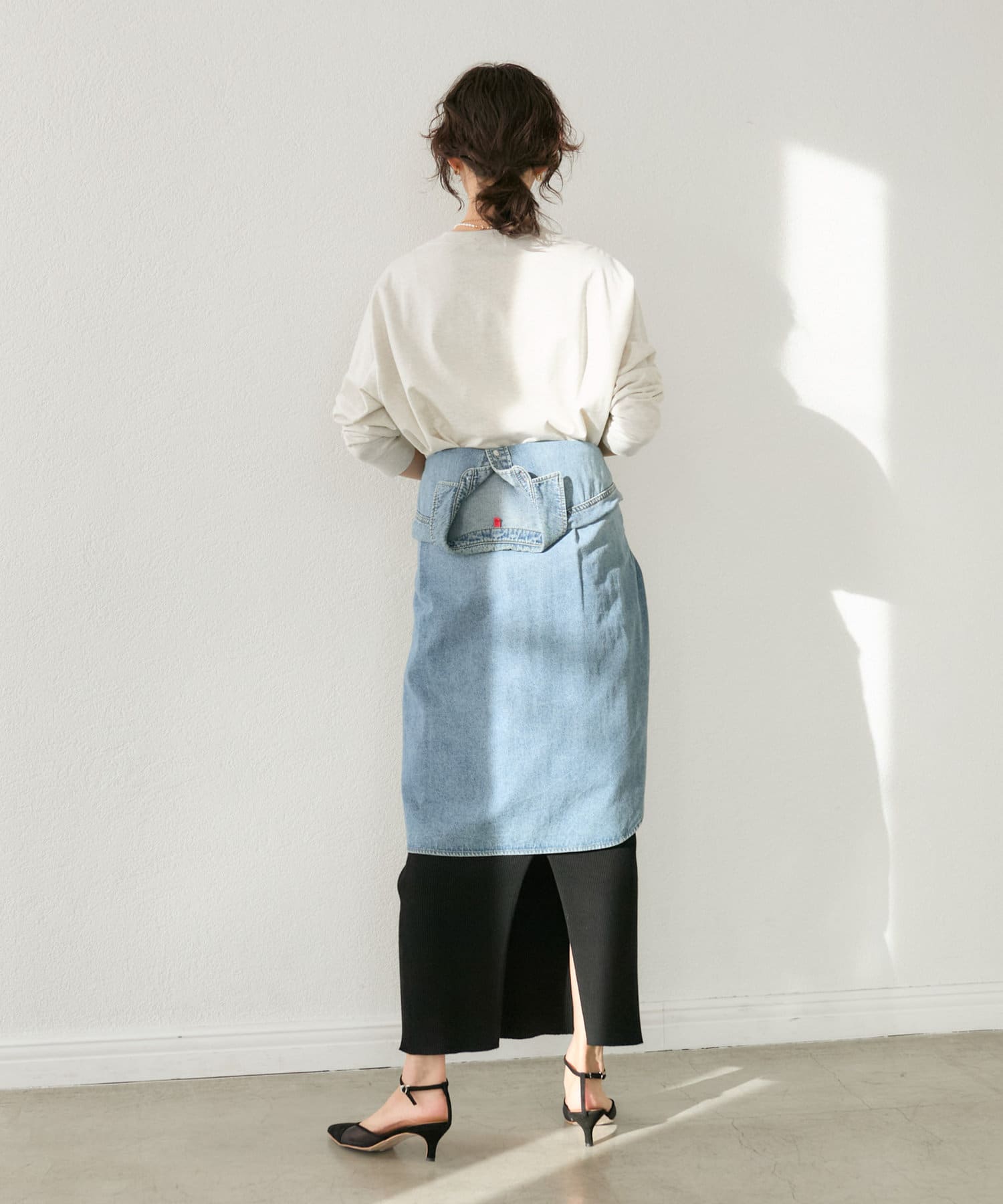 お尻がすっぽり隠れる丈感で、タイトスカートなどすっきりとしたボトムとの相性も◎