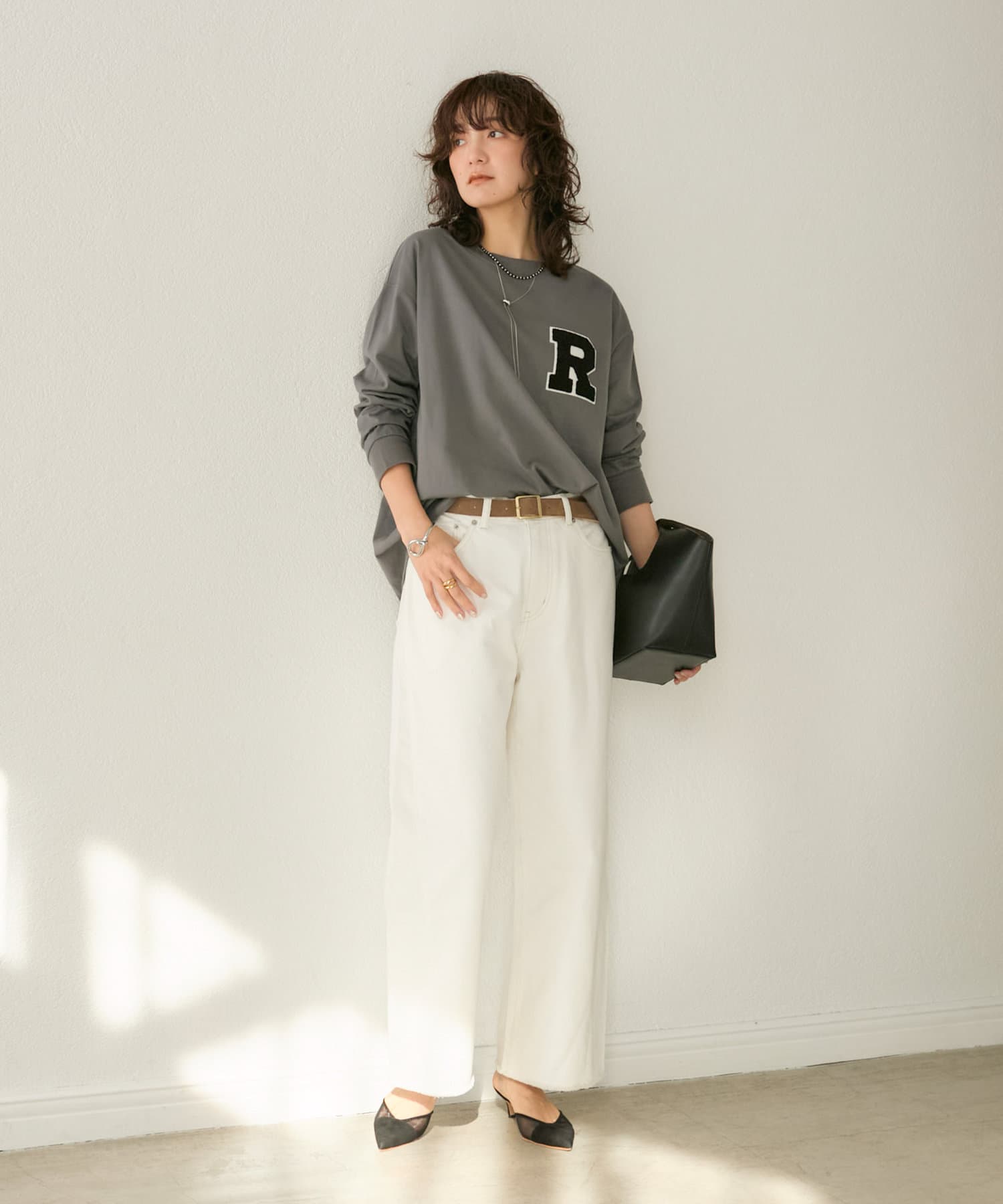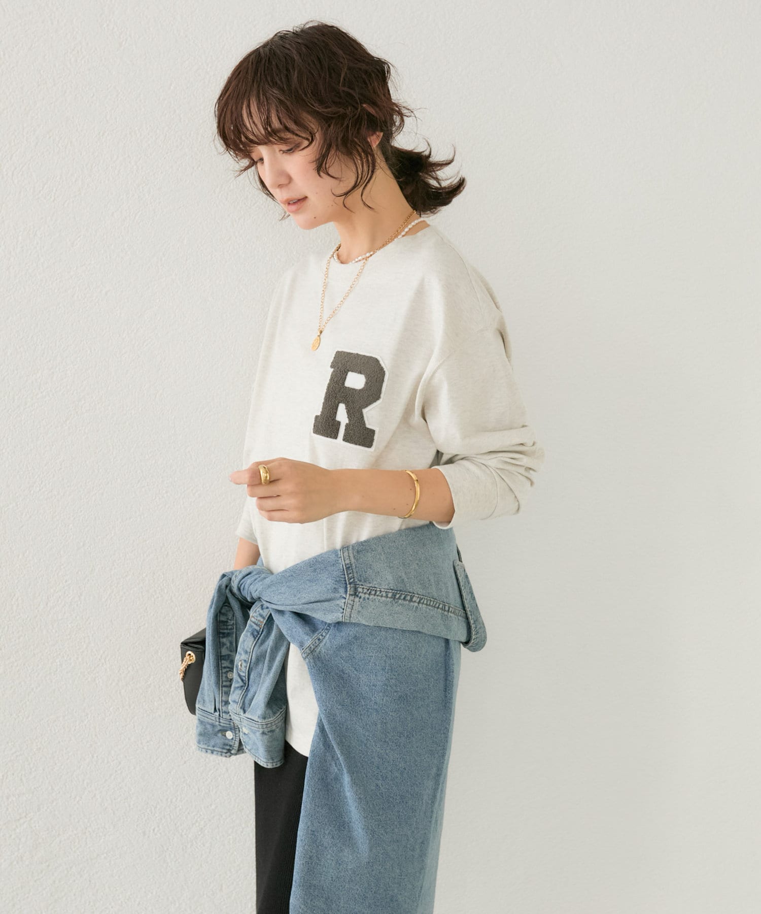 ゆったりとしたサイズ感と胸元の『R』のワッペンロゴがポイントのカットソー。