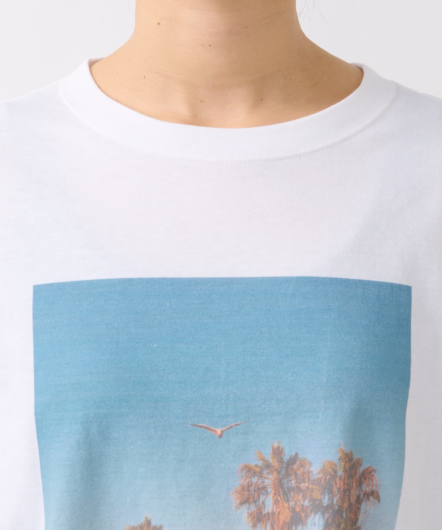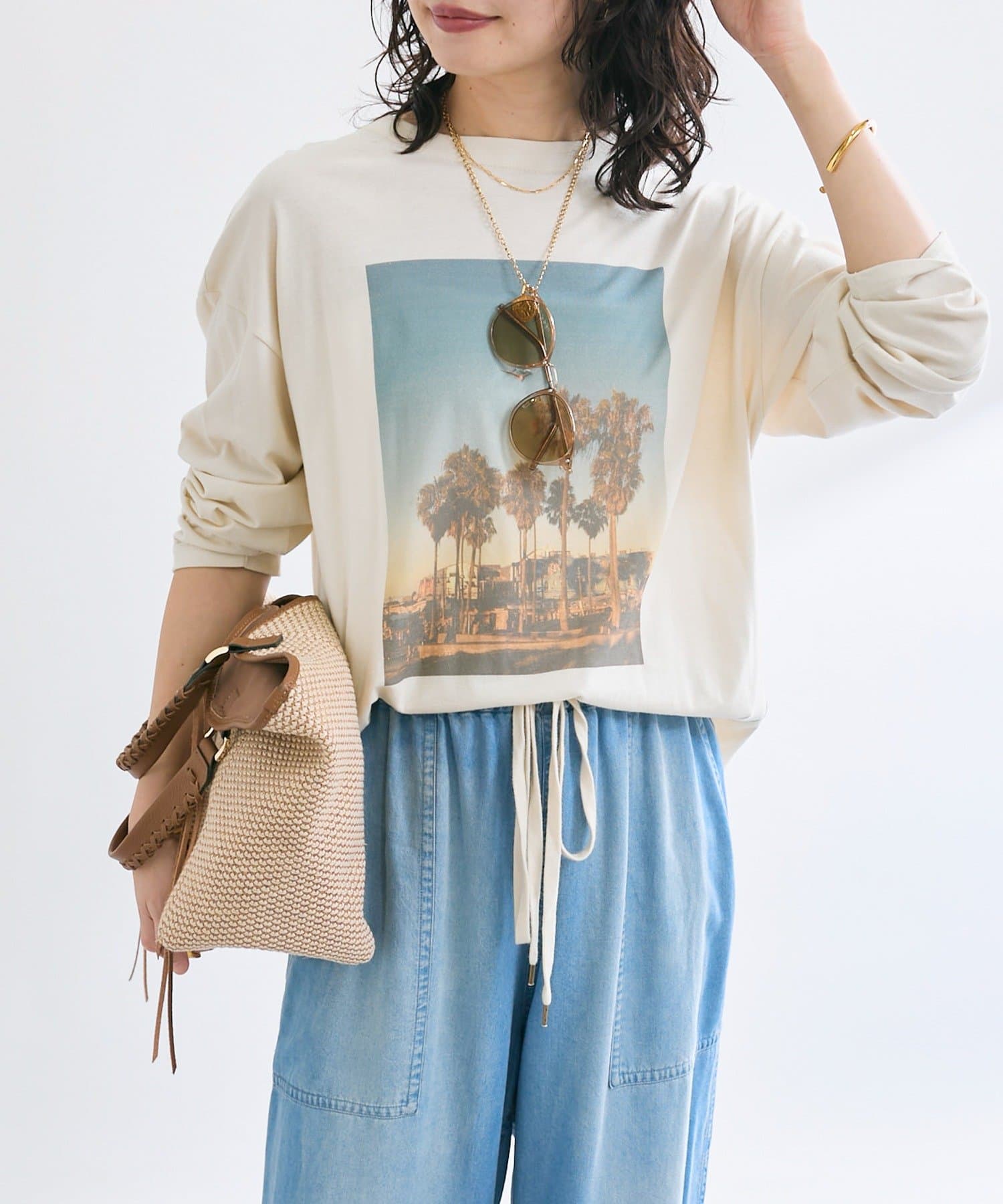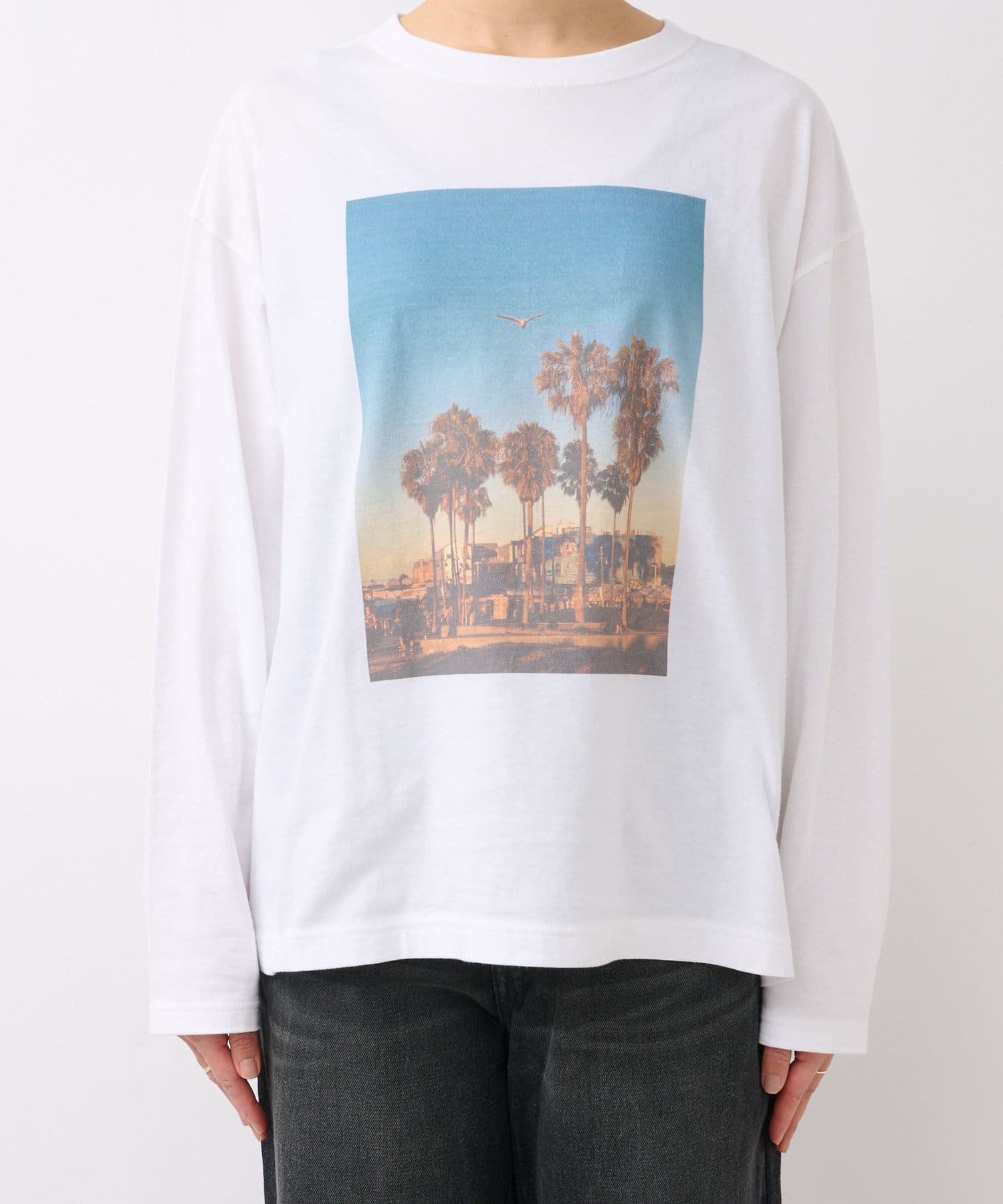 海やサーフのイメージで、夏のビーチのフォトをプリントしたロンT。