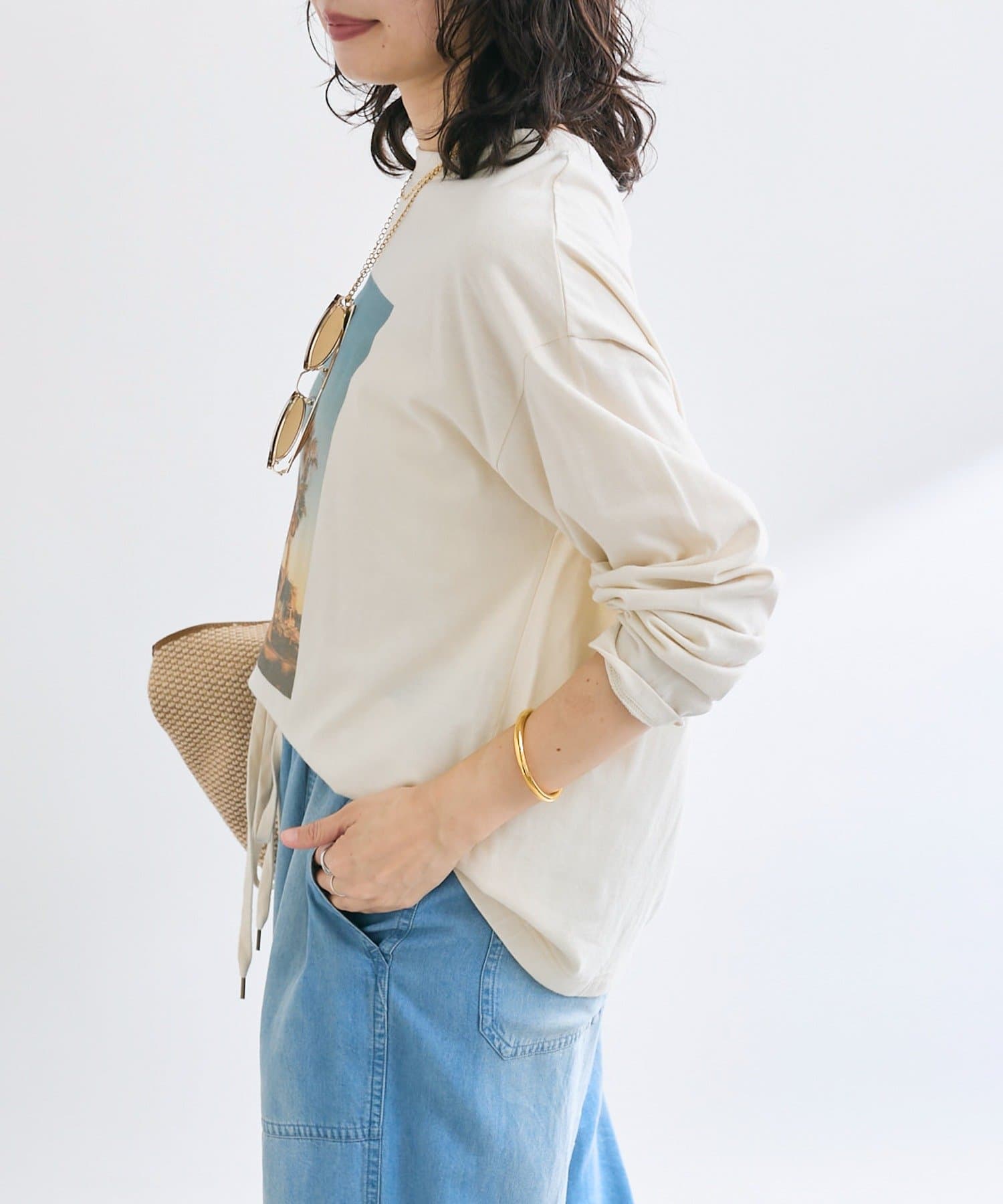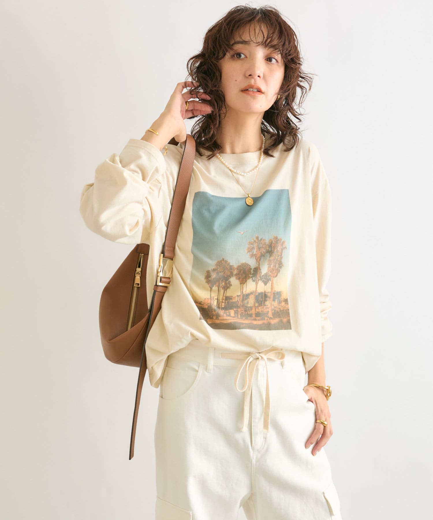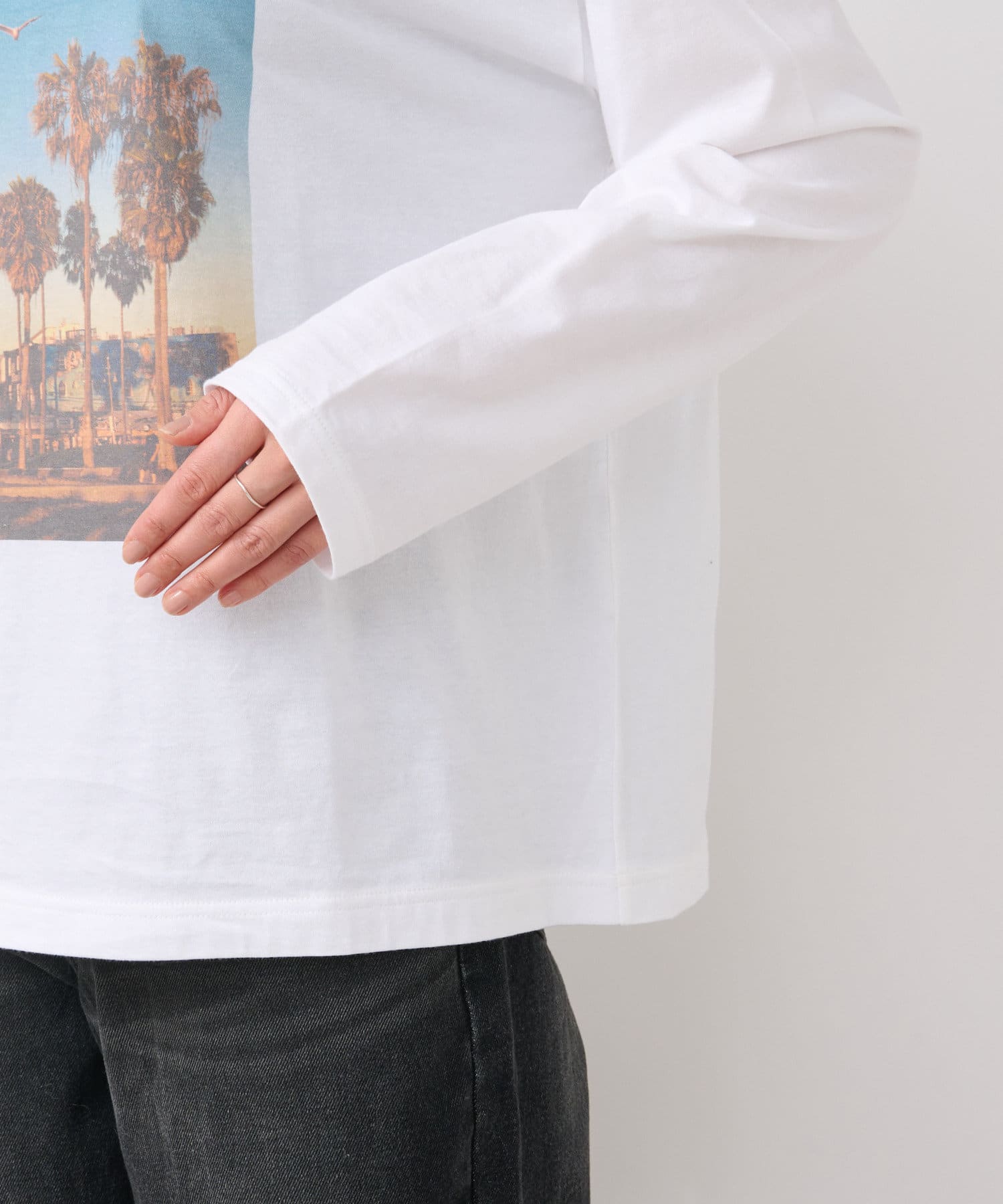 海やサーフのイメージで、夏のビーチのフォトをプリントしたロンT。