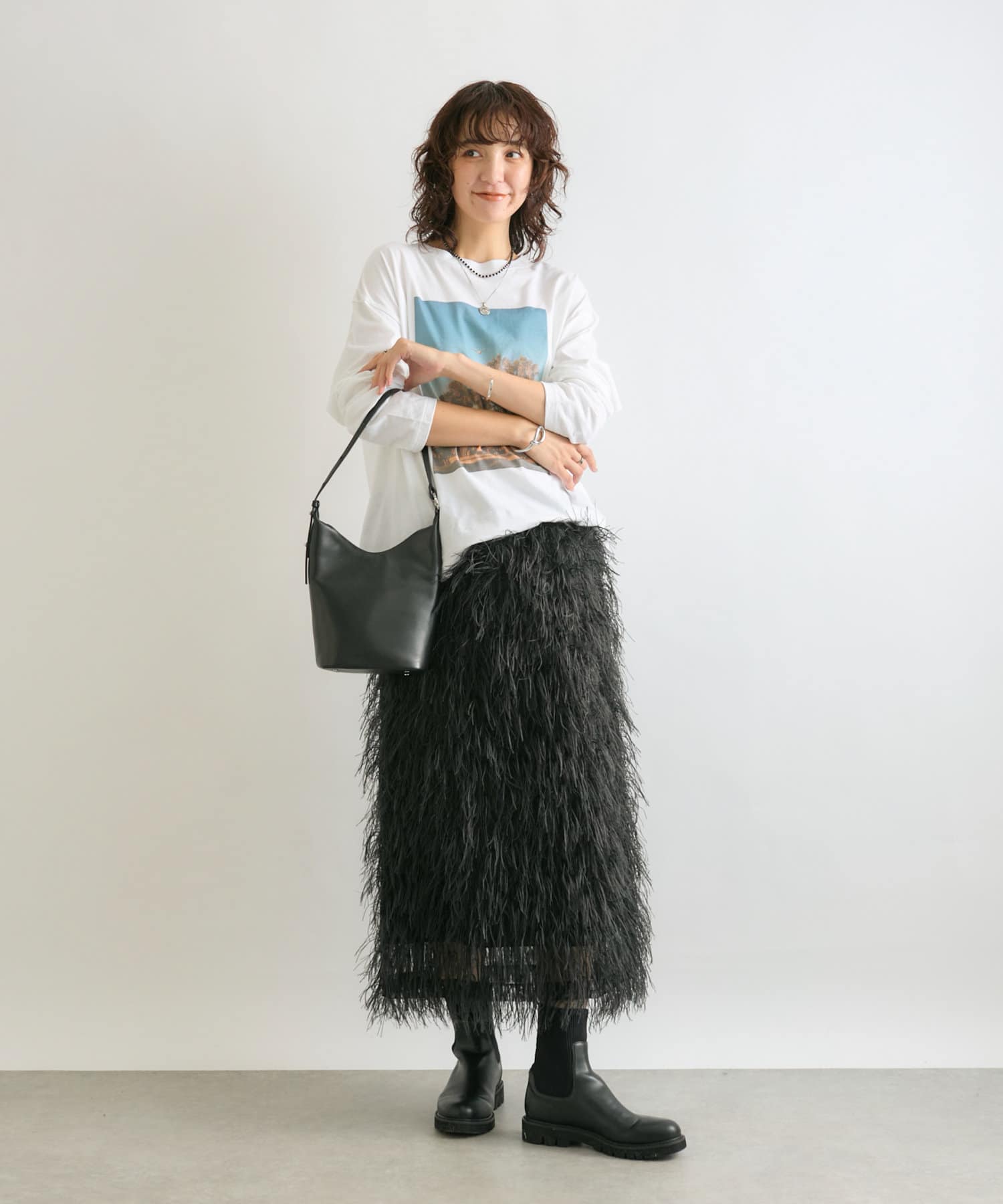 スラックスやデニム、タイトスカートと、ボトムを選ばず履ける使い勝手のいいアイテムです。