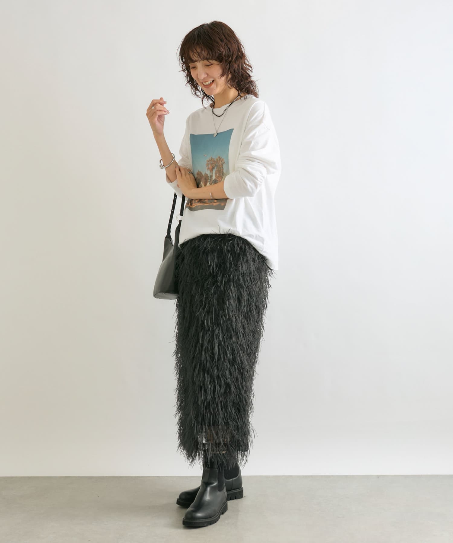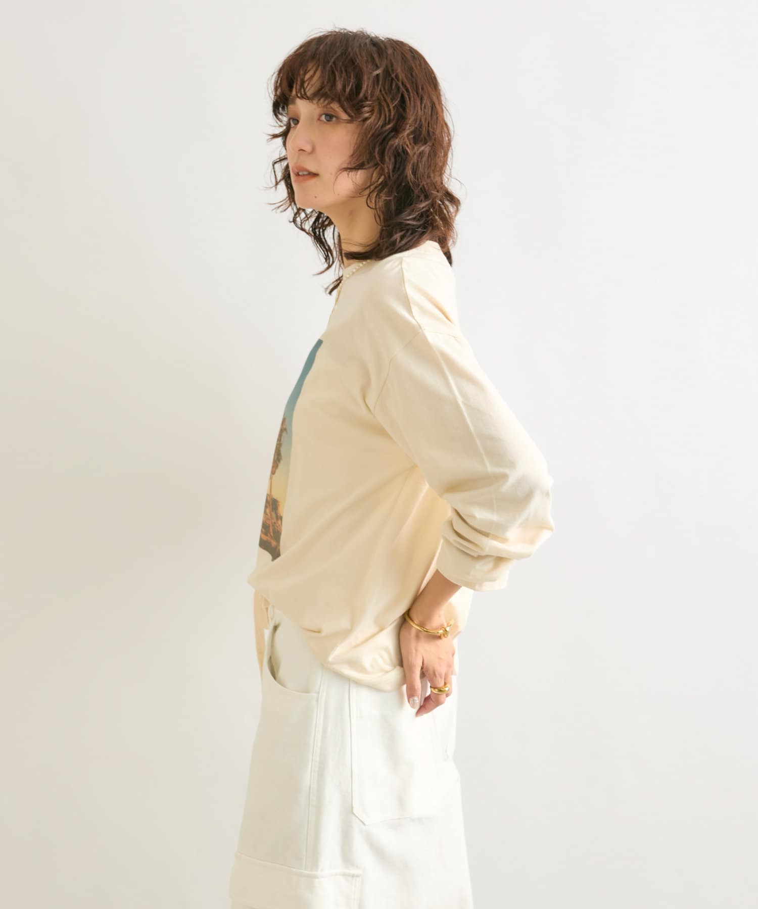 あえて少し褪せたようなヴィンテージ感のある風合いでプリントしているので、カラーのフォトでも合わせやすく、こなれた印象で着用いただけるのも◎