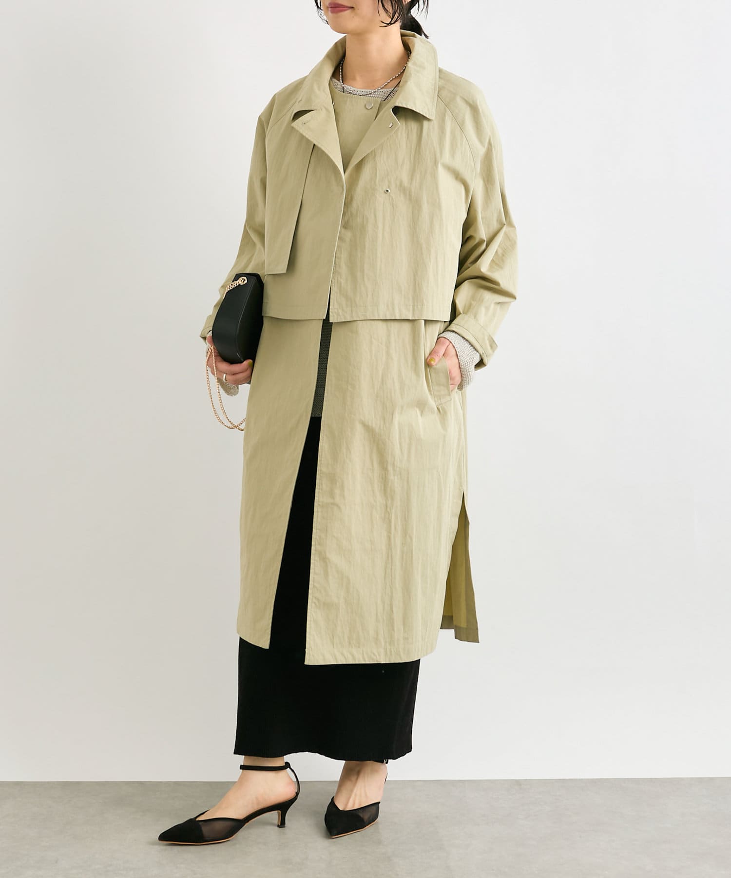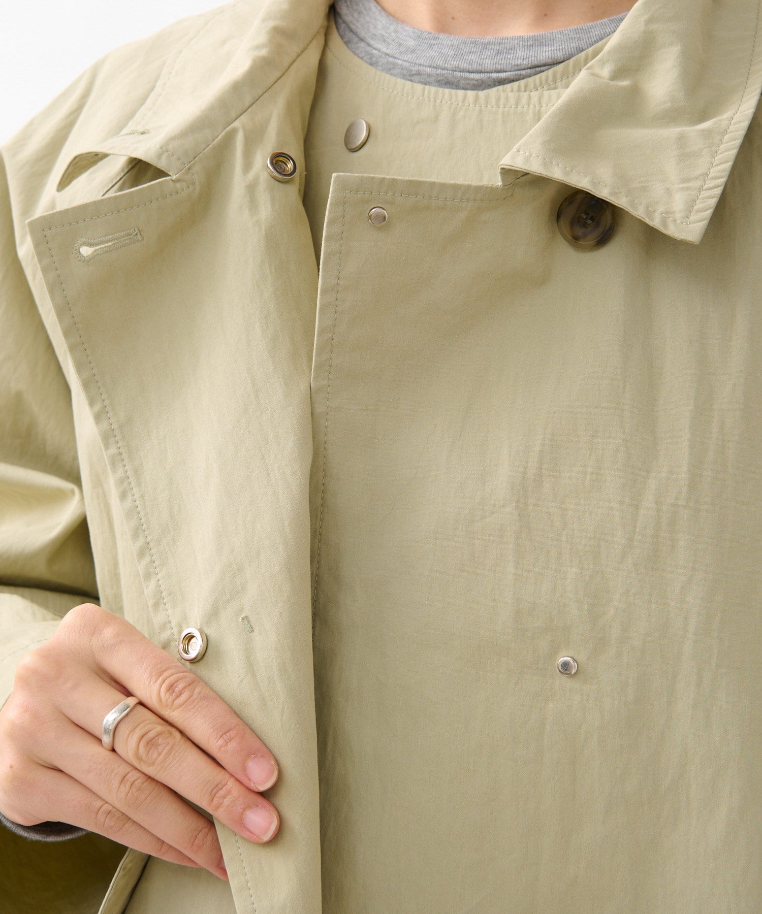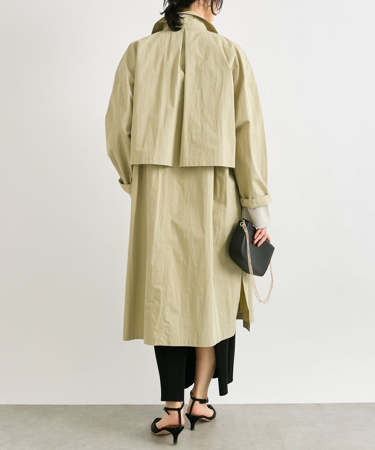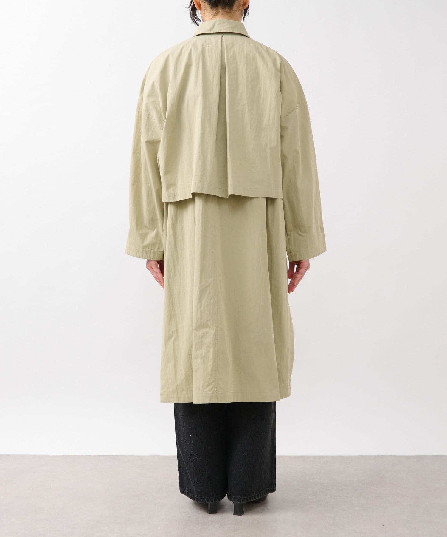 通常のトレンチコートより薄手なので、着こなし次第でロングシーズン活躍するアイテム。