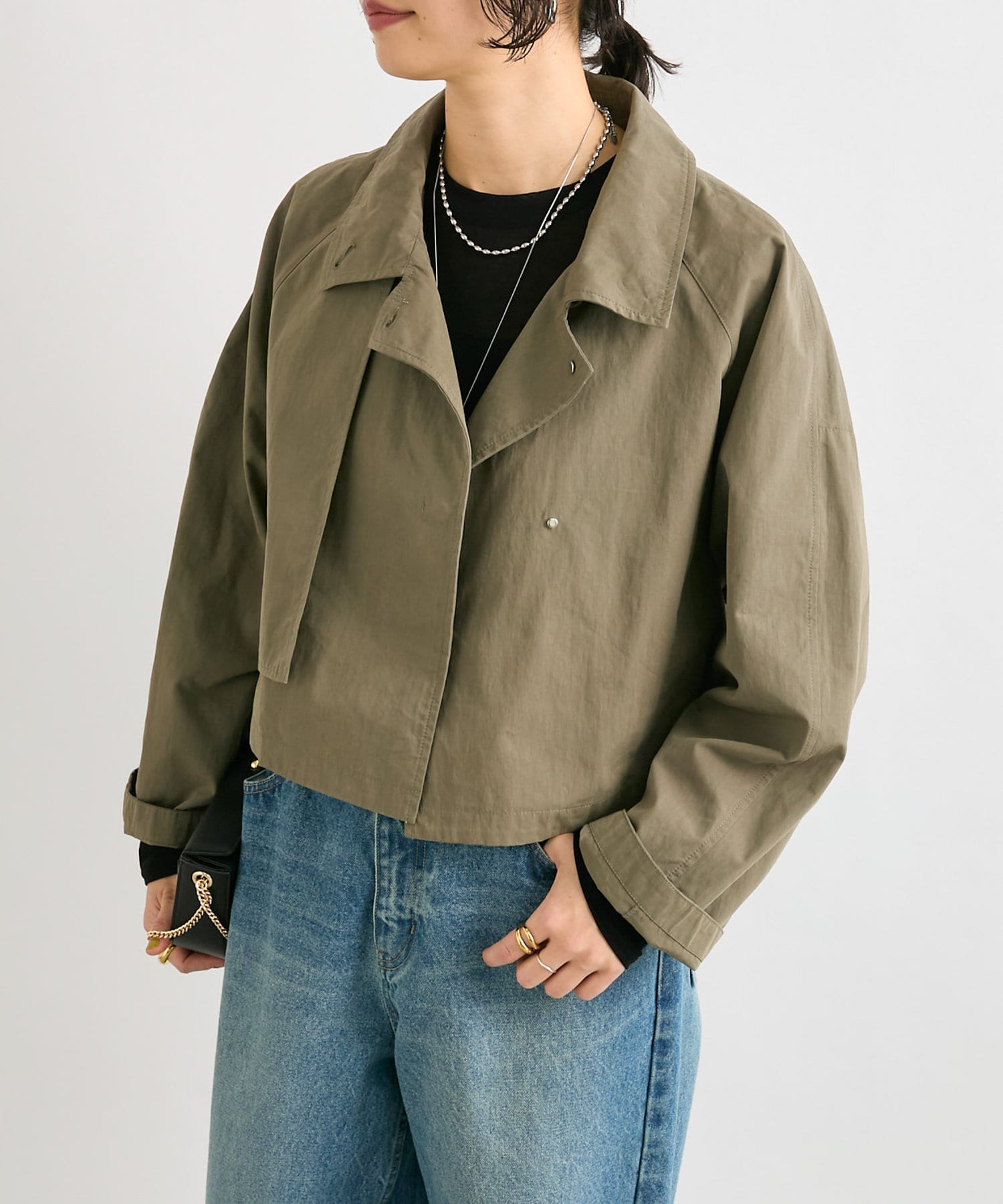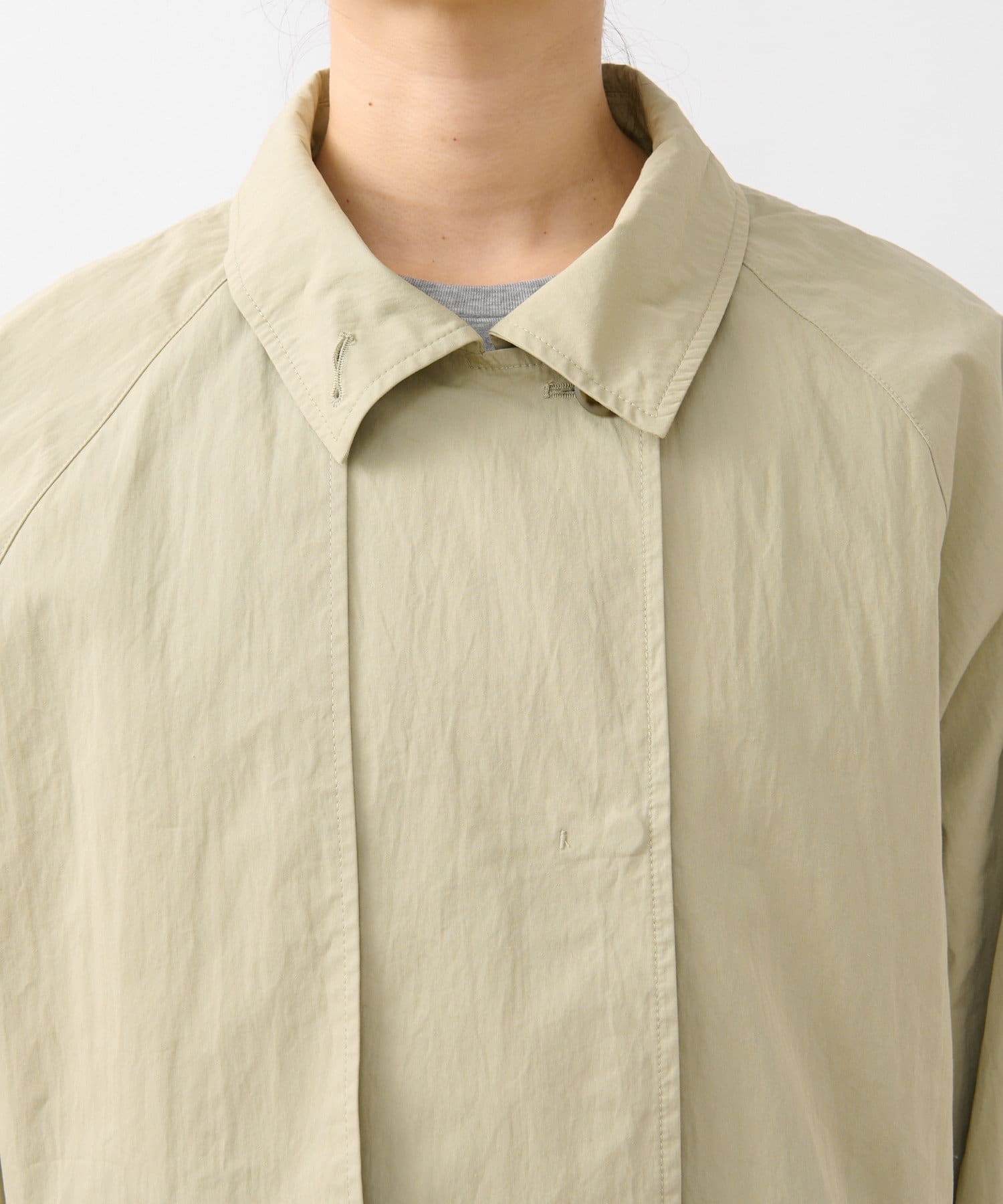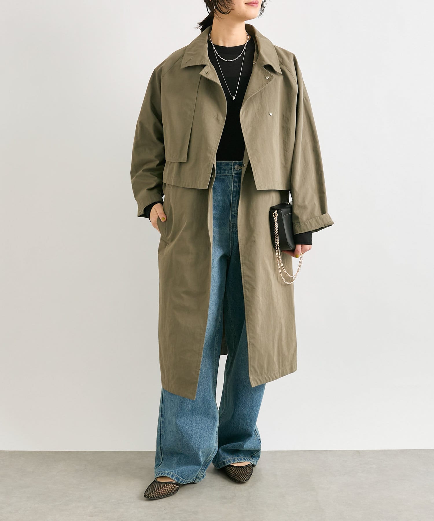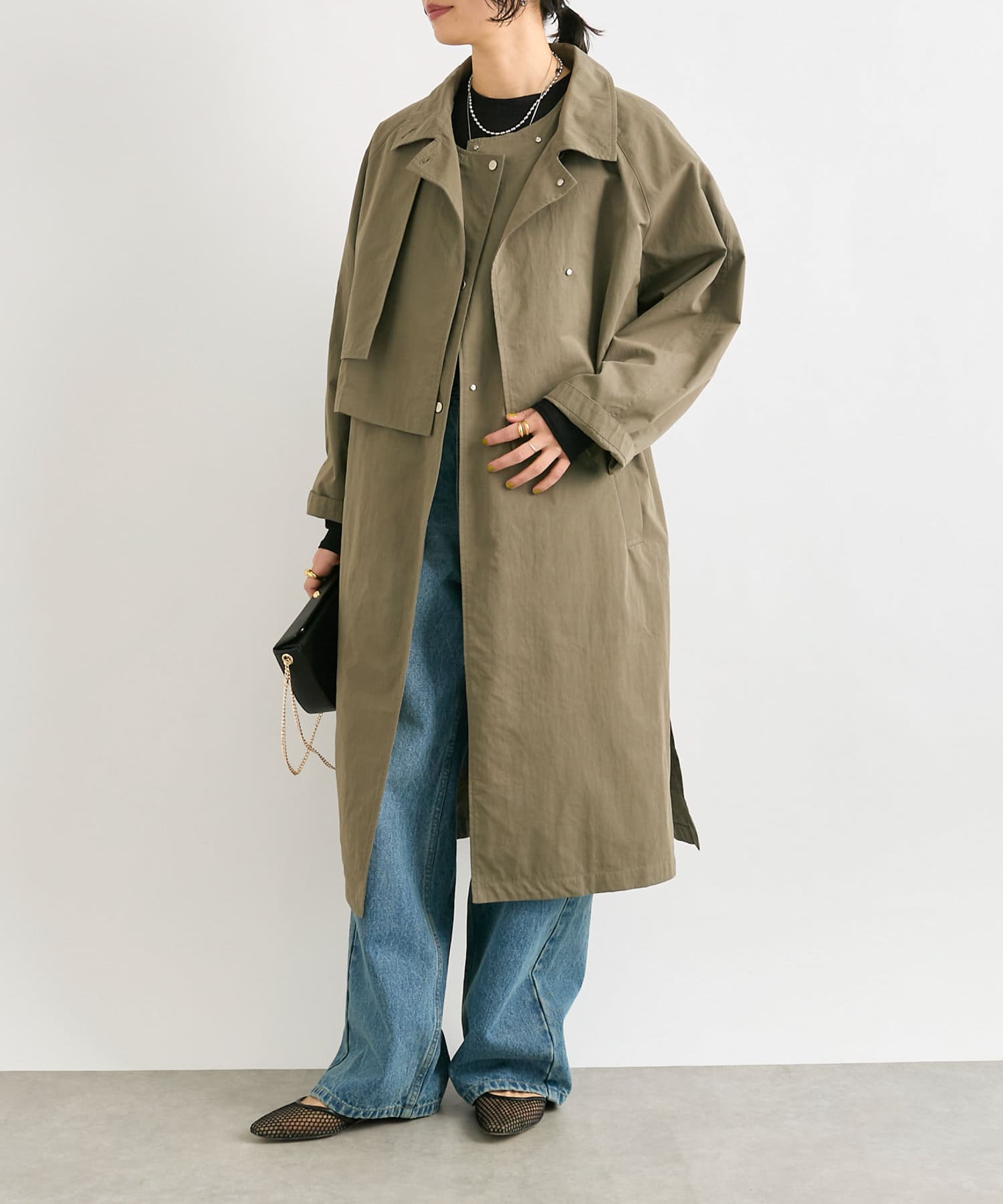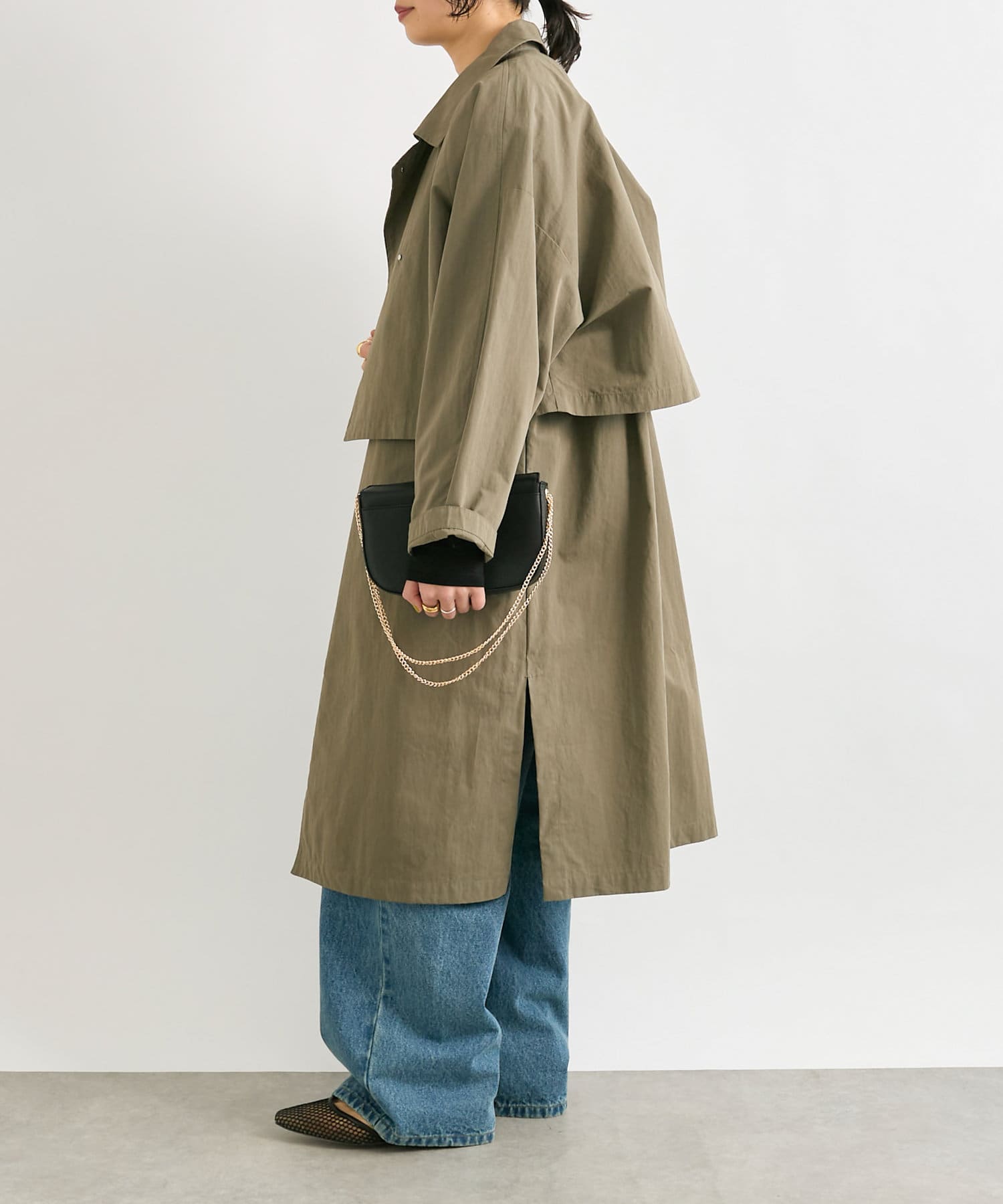 通常のトレンチコートより薄手なので、着こなし次第でロングシーズン活躍するアイテム。