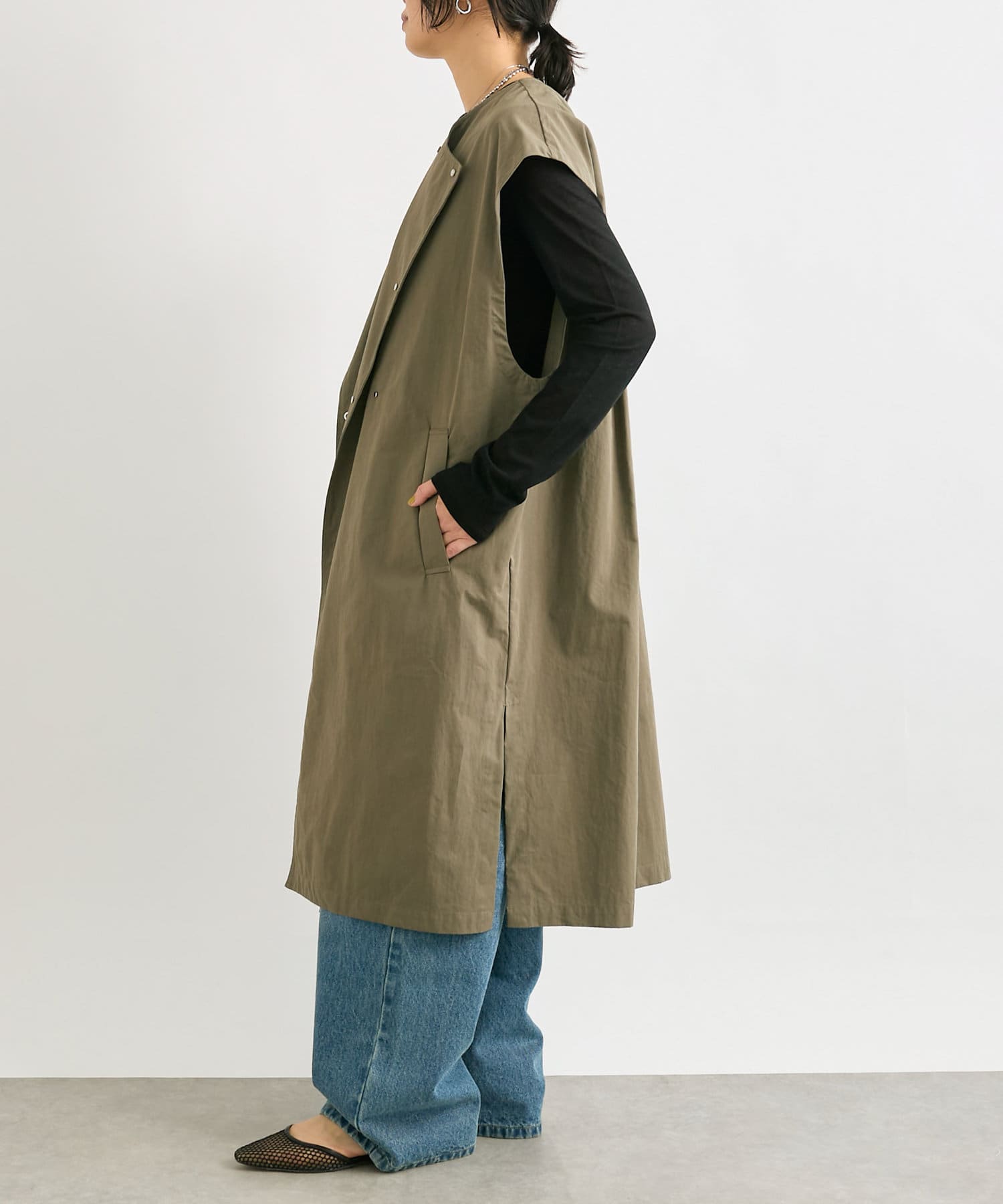 さらっと軽い着心地で、パッと羽織って出かけられるのもうれしいポイント。