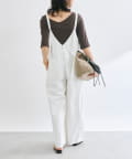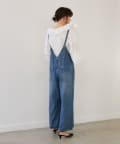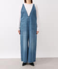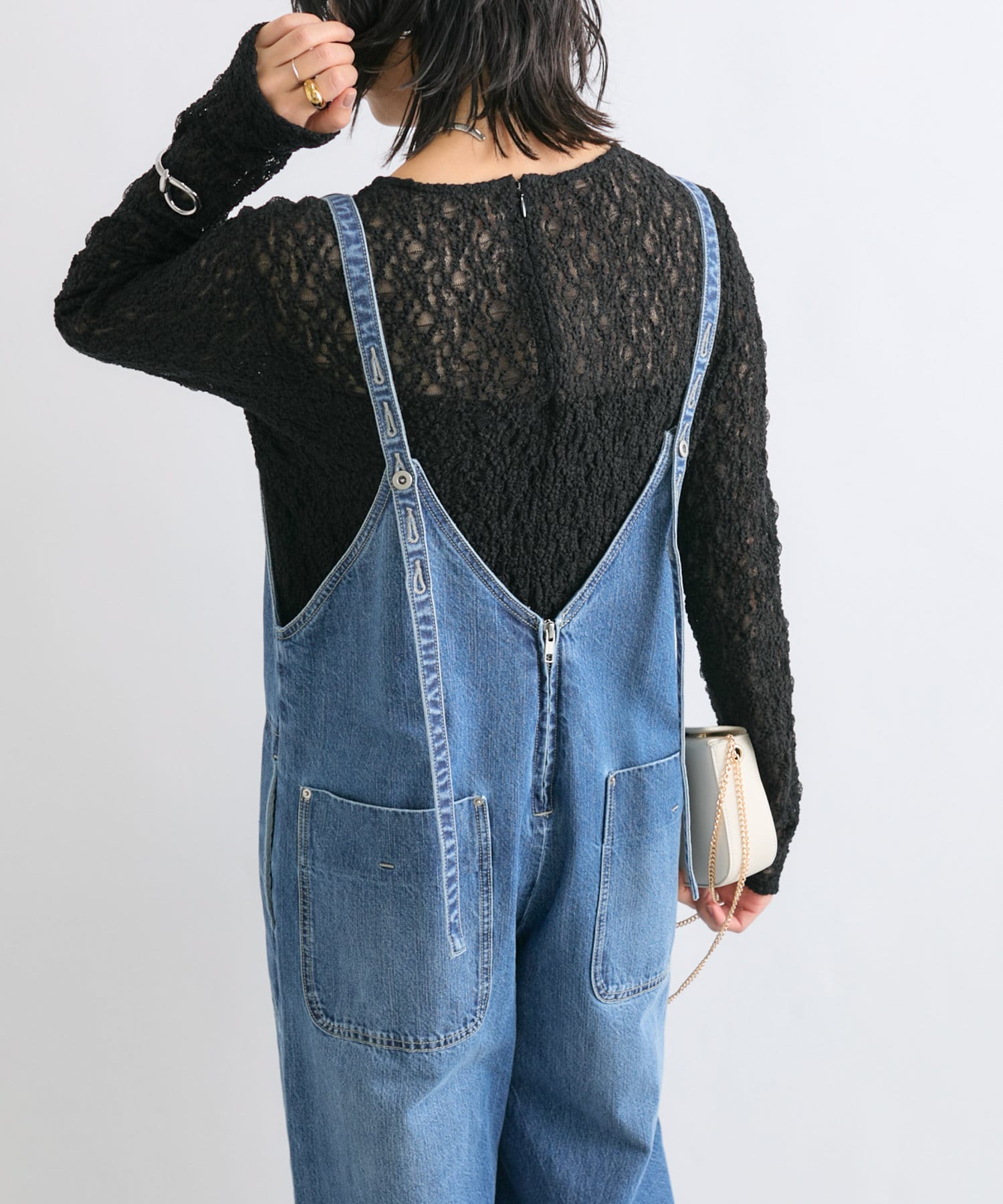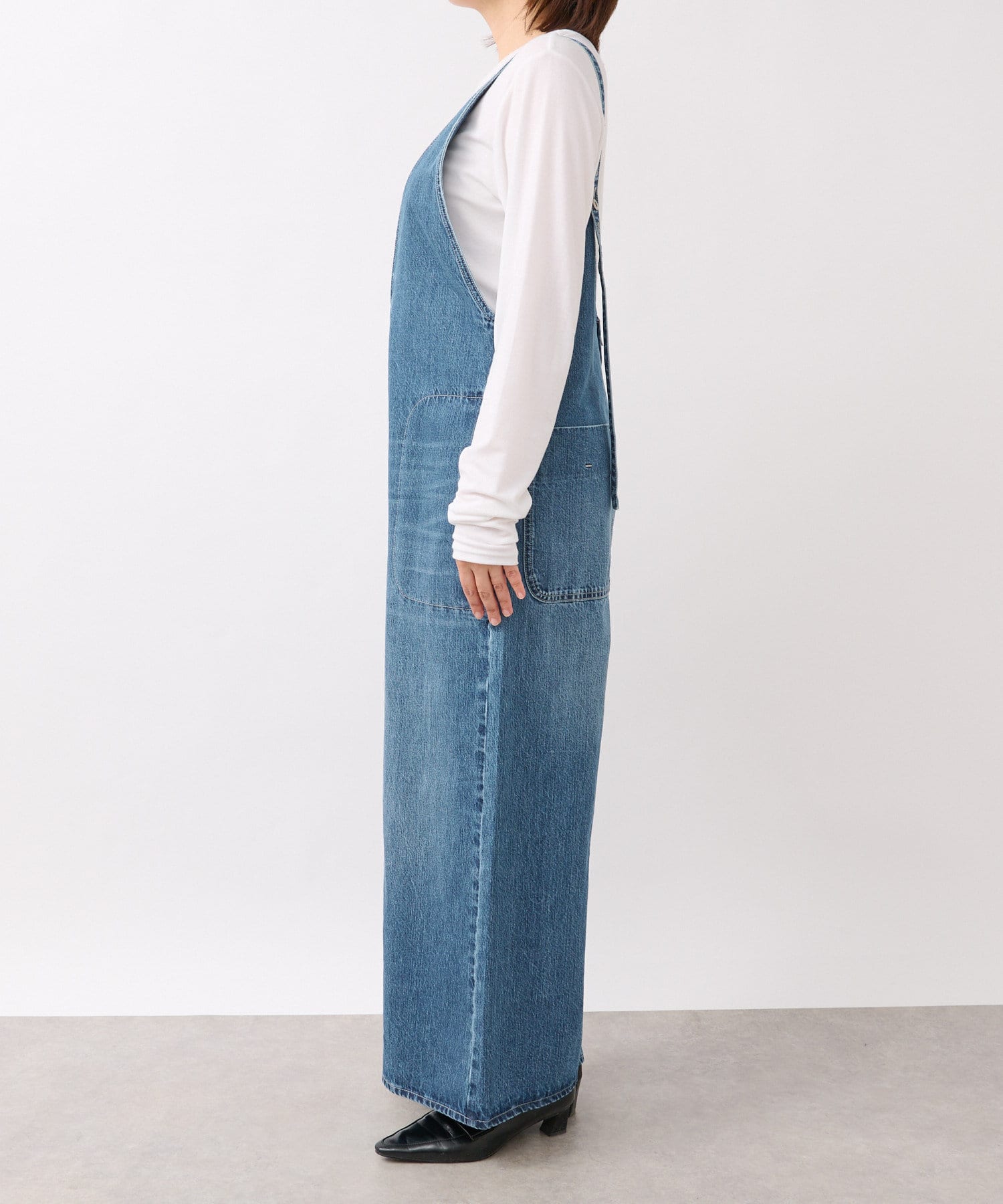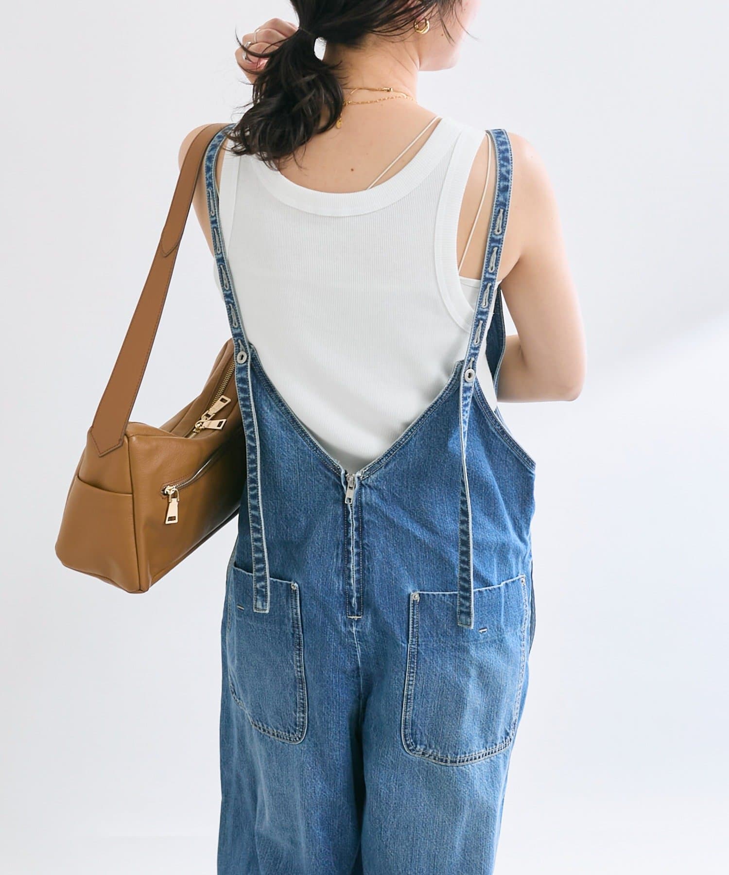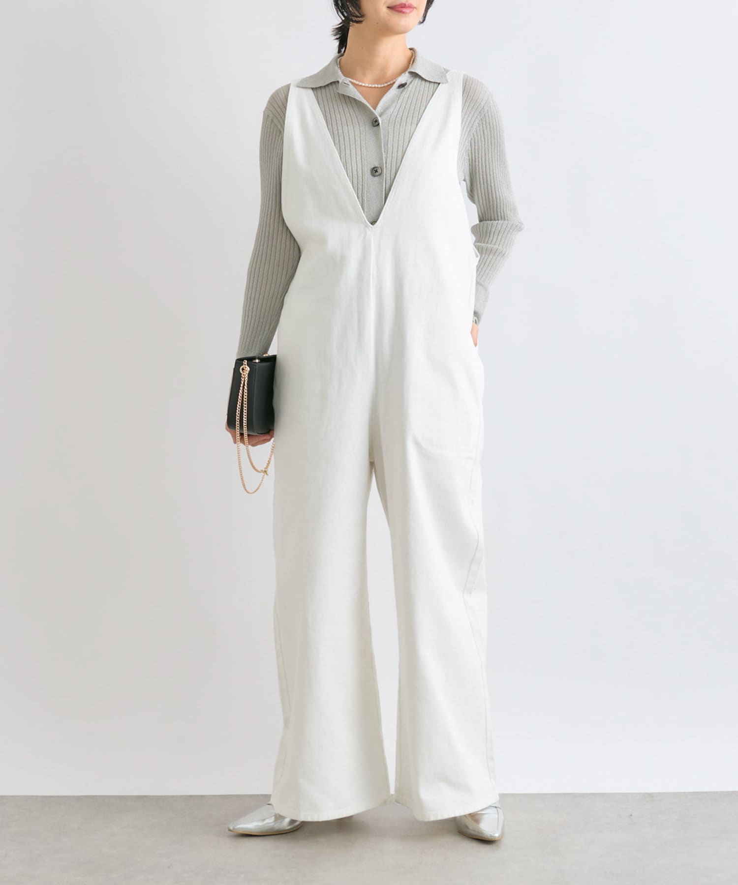 深く切れ込んだプランジネックがポイントのデニムサロペット。