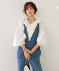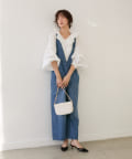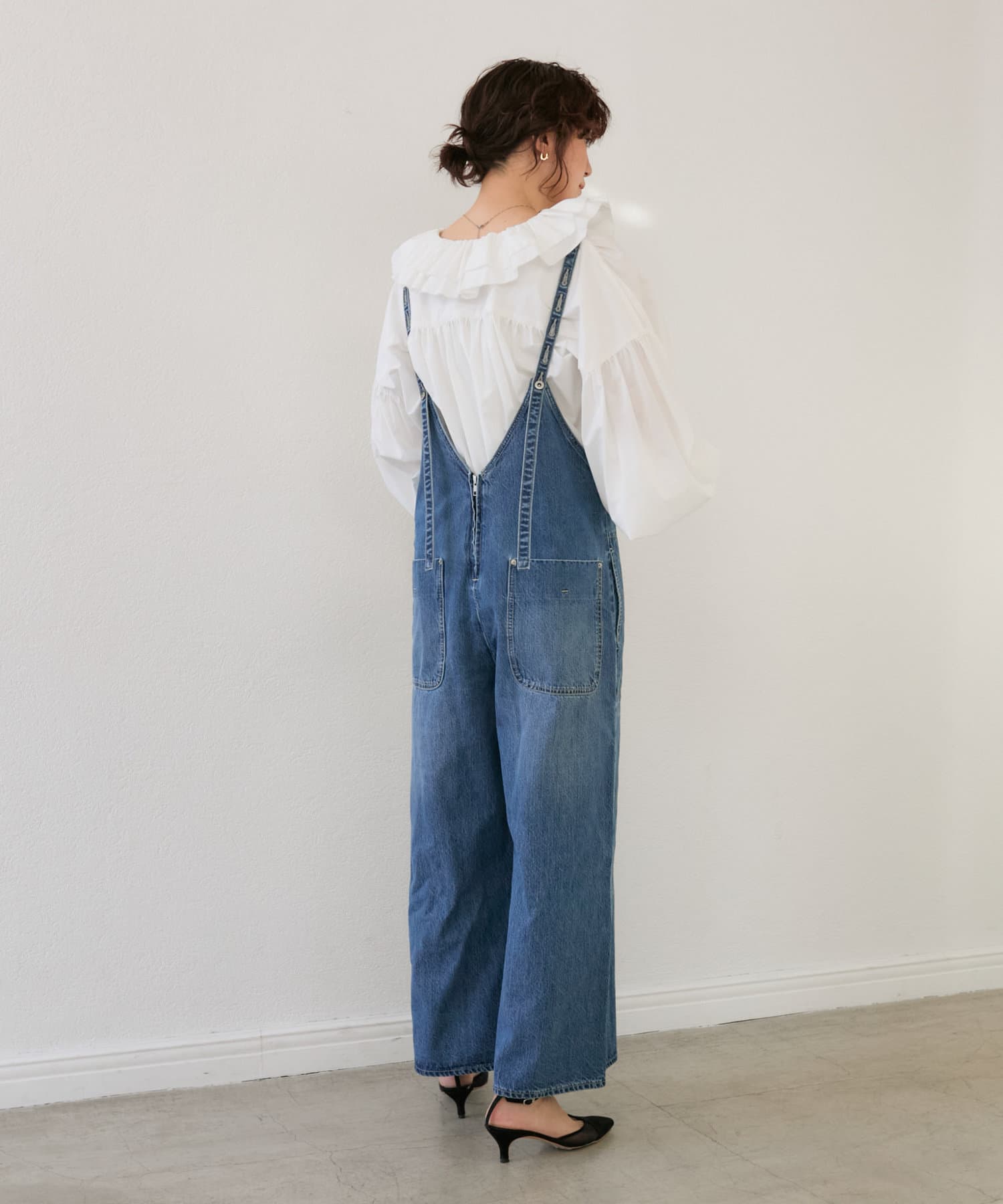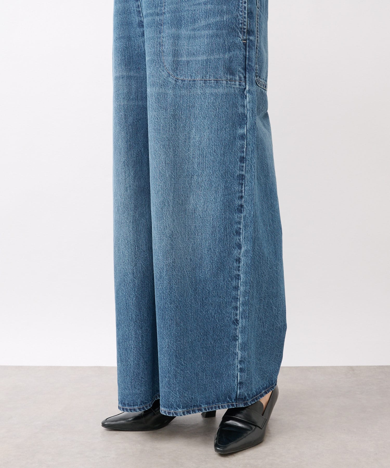 ウエストは切り替えず、ボトムのワイドシルエットを強調。女性らしさを感じさせるデニムアイテムです。