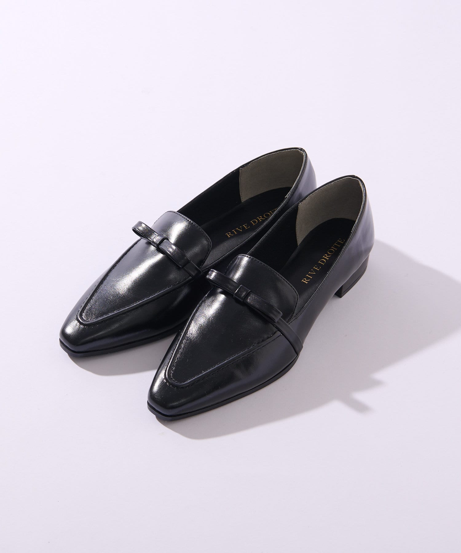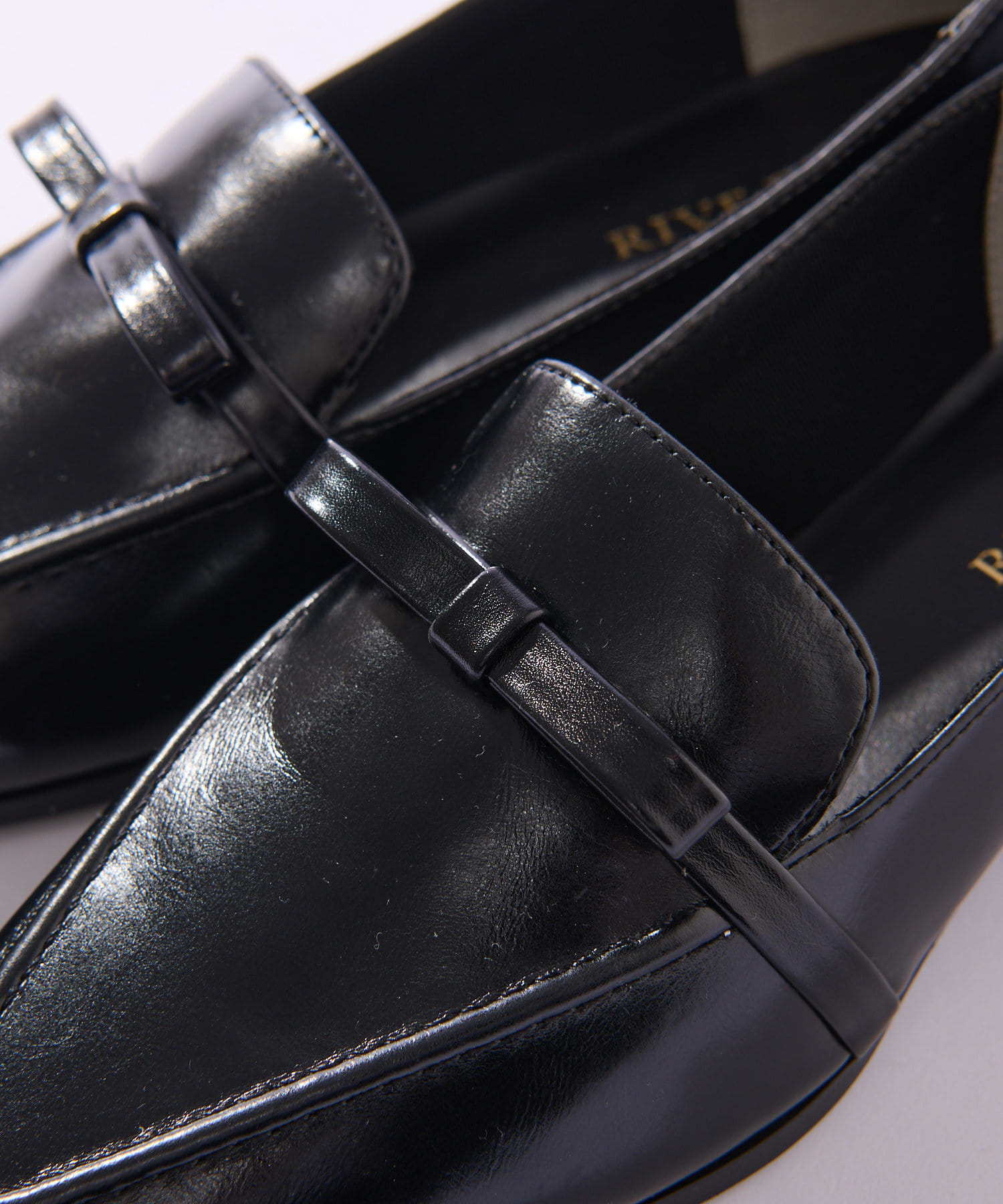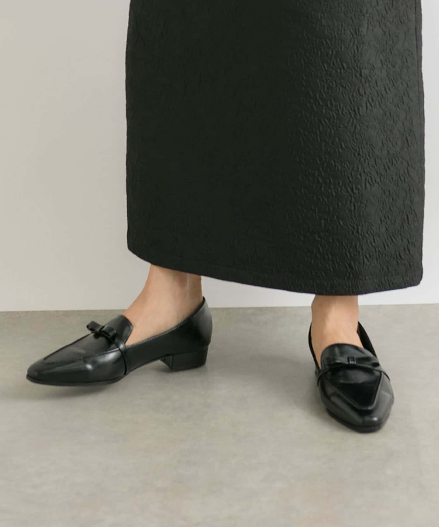 シンプルなポインテッドトゥにリボンをあしらったローファー。