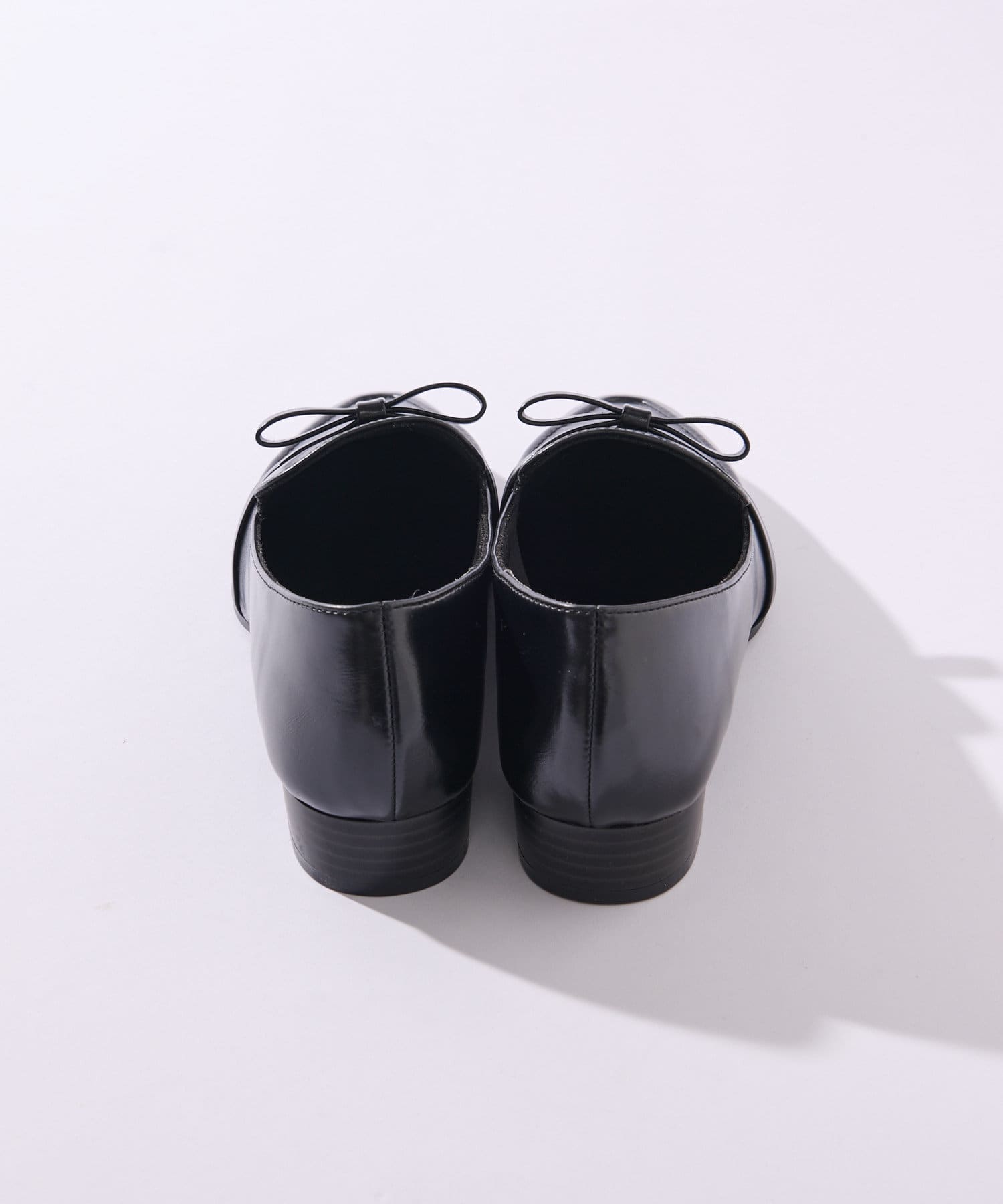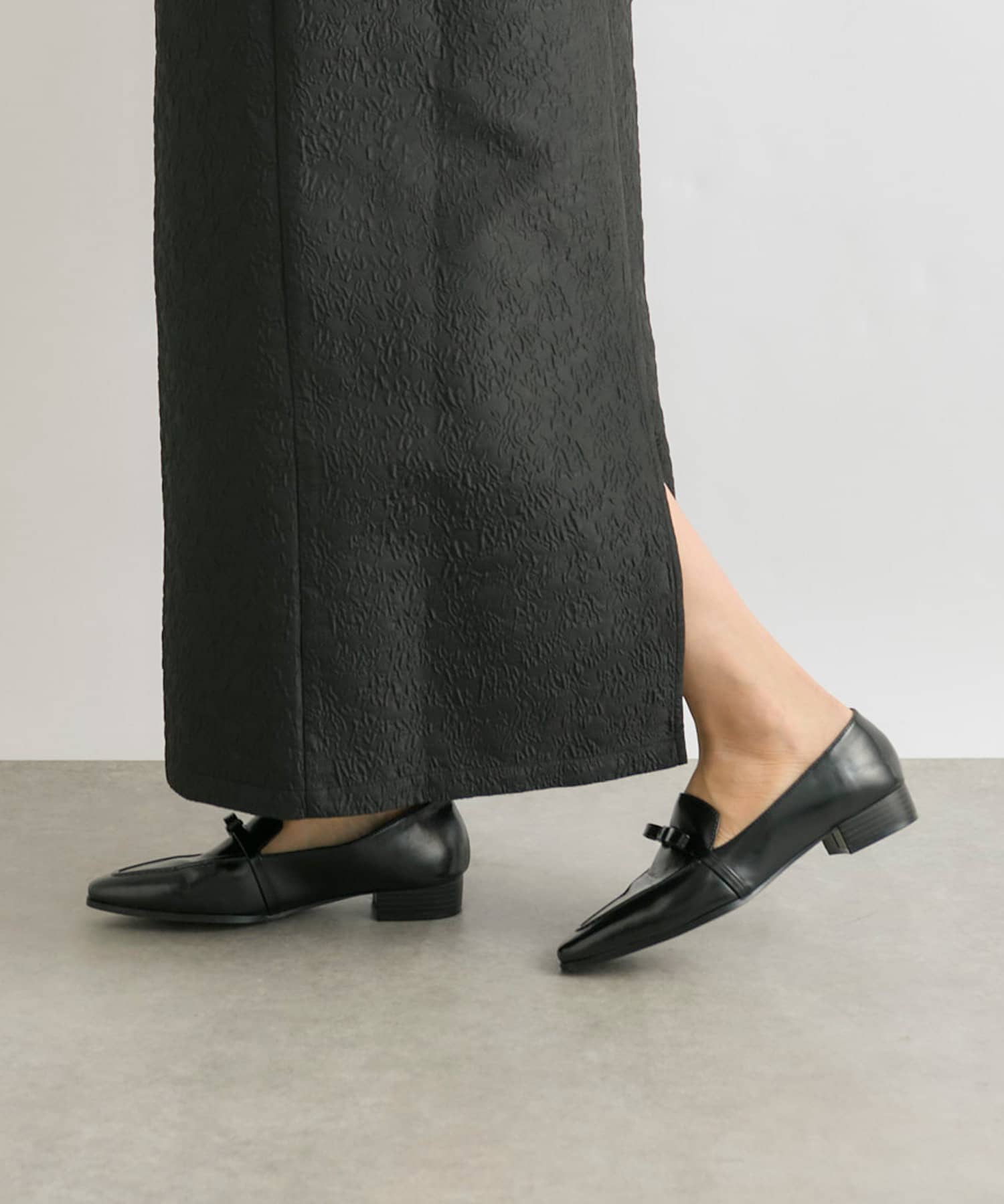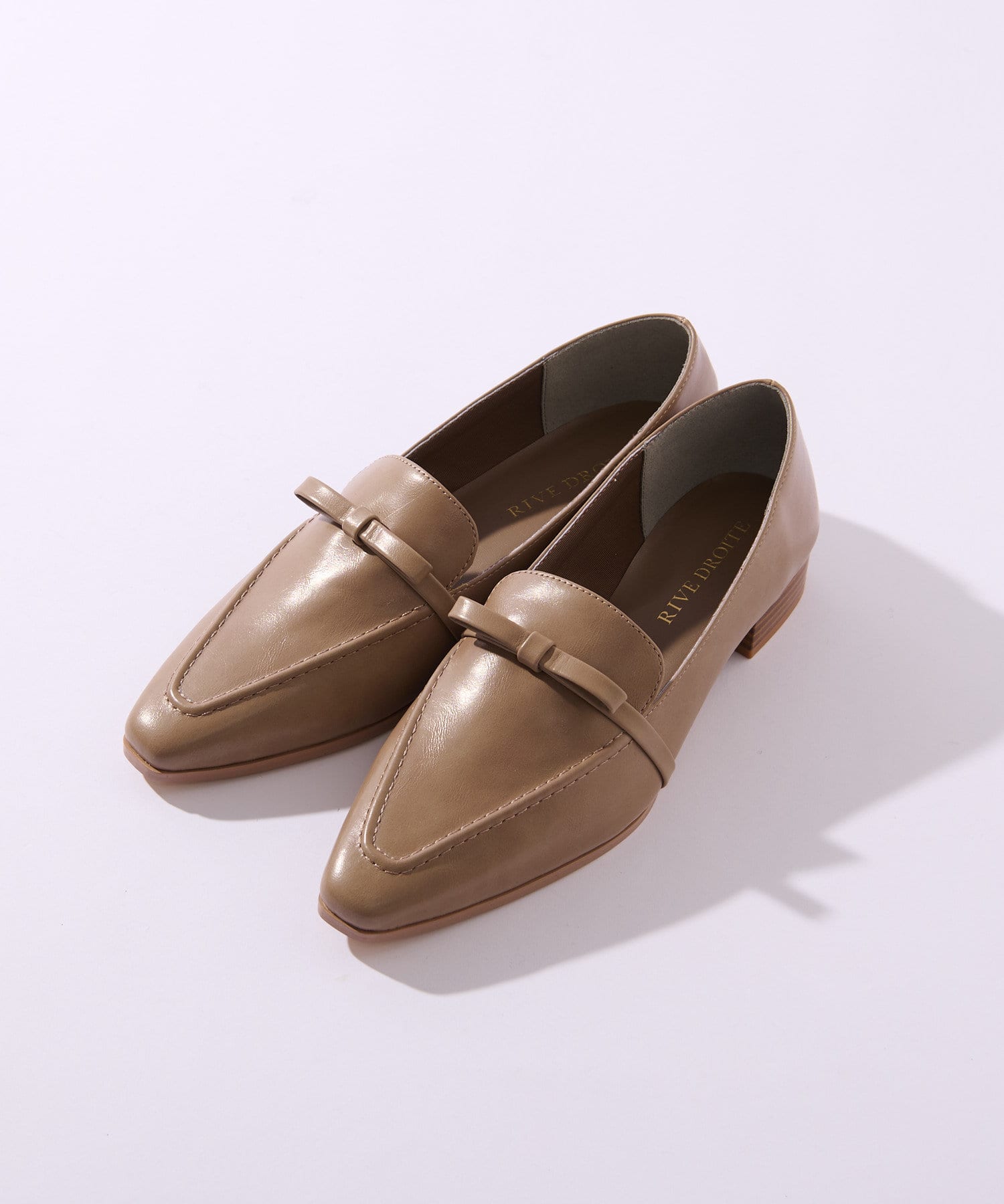 シンプルなポインテッドトゥにリボンをあしらったローファー。