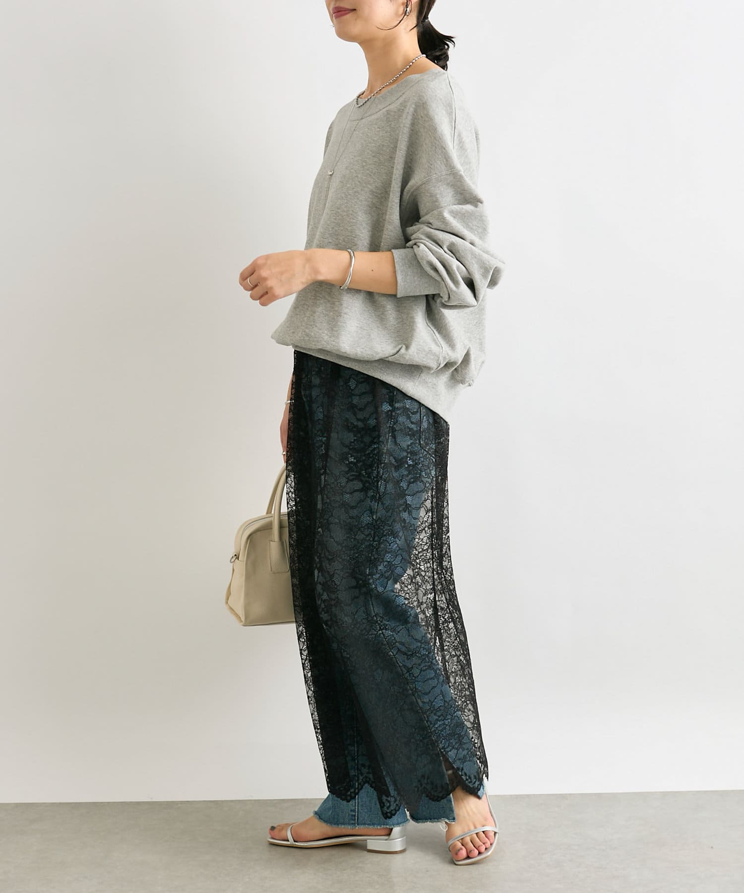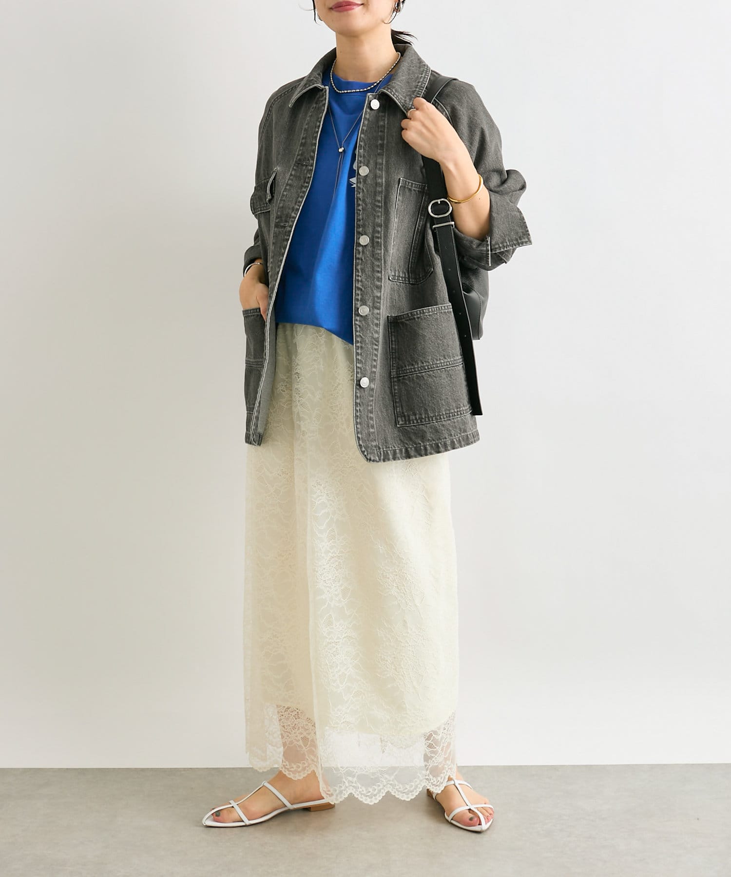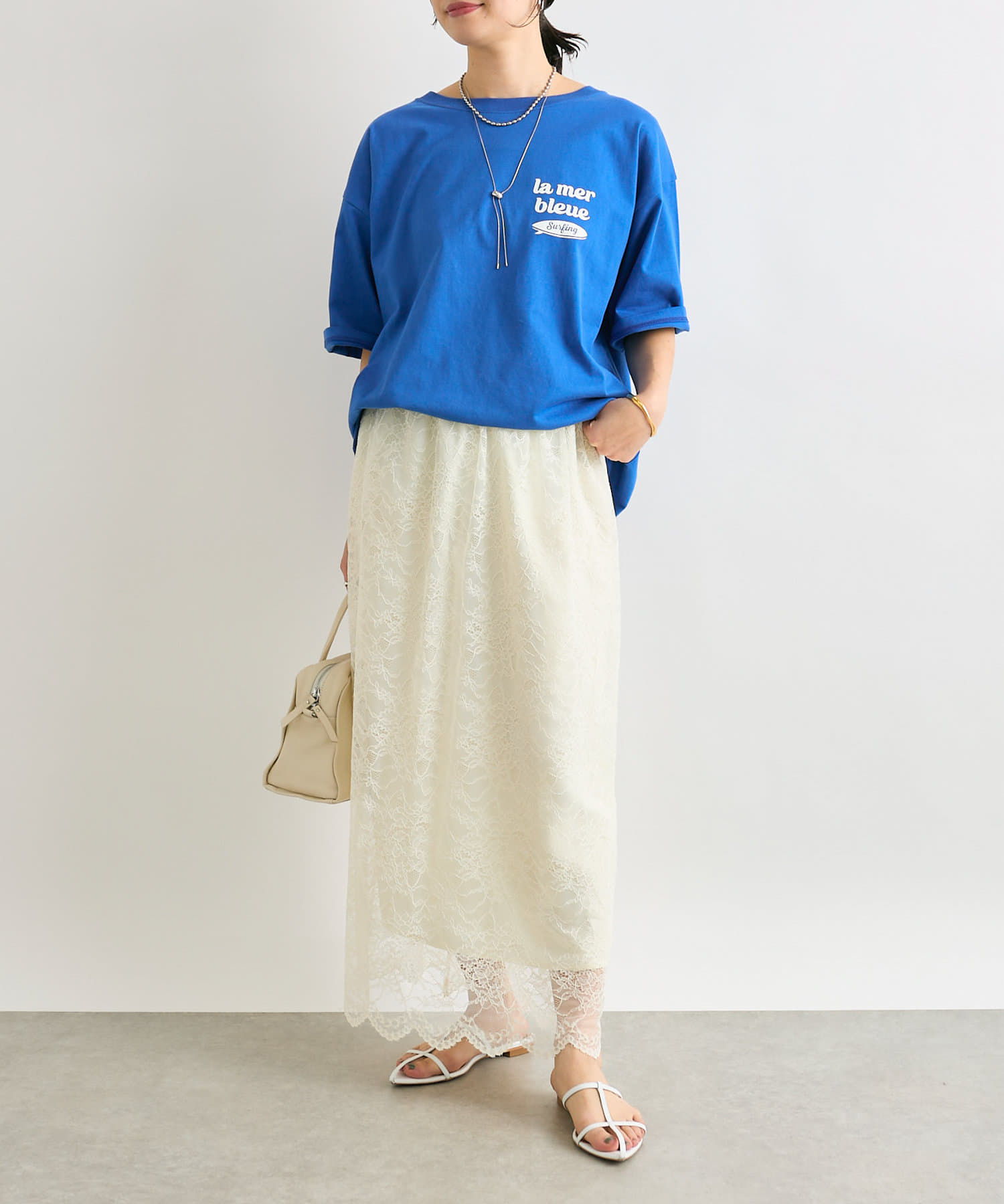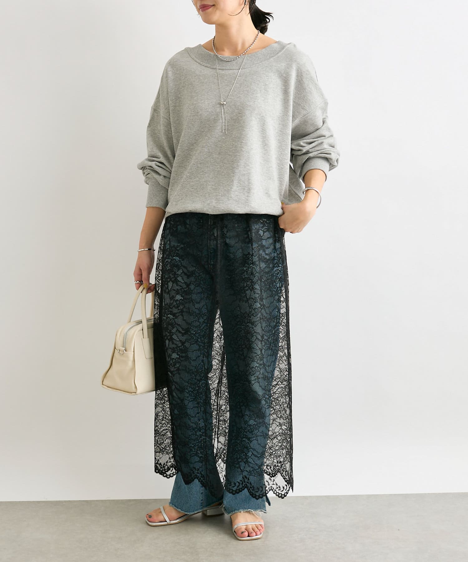 大人なレースで甘くなりすぎないので、リネンシャツやロゴT、スウェットなどのカジュアルなアイテムと合わせていただくと鮮度が出ておすすめです。