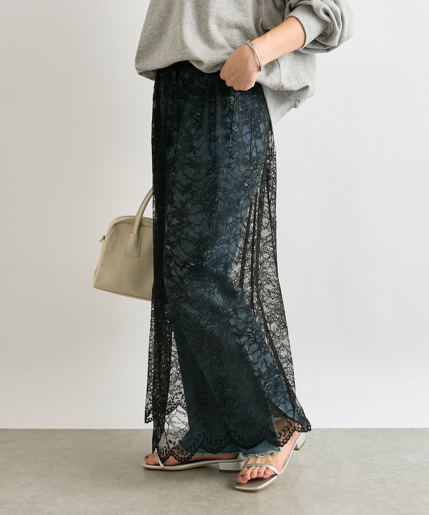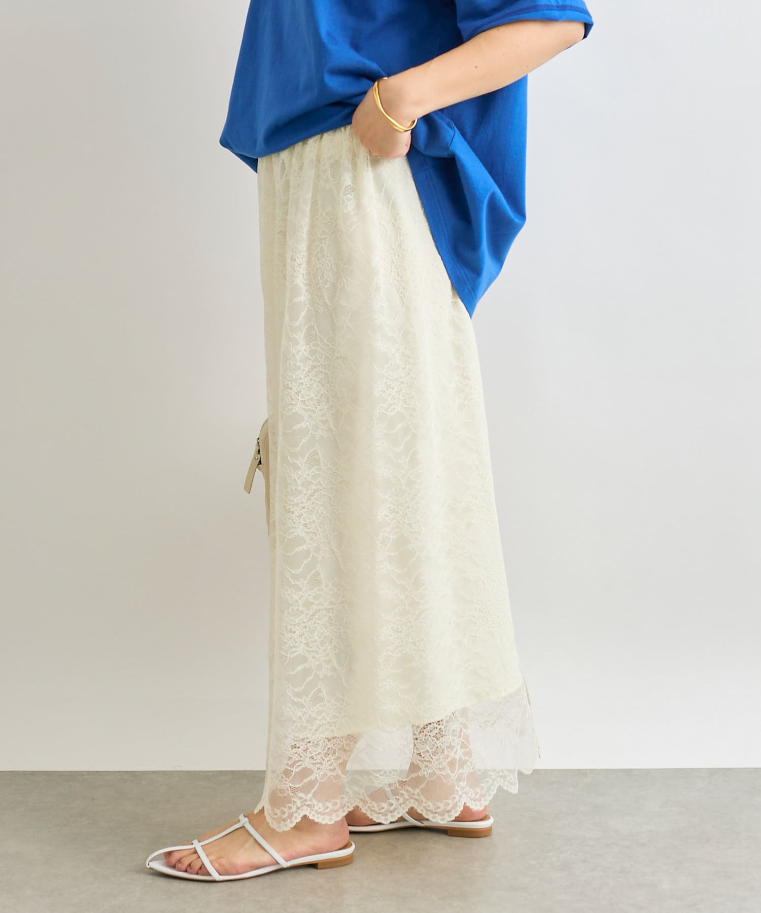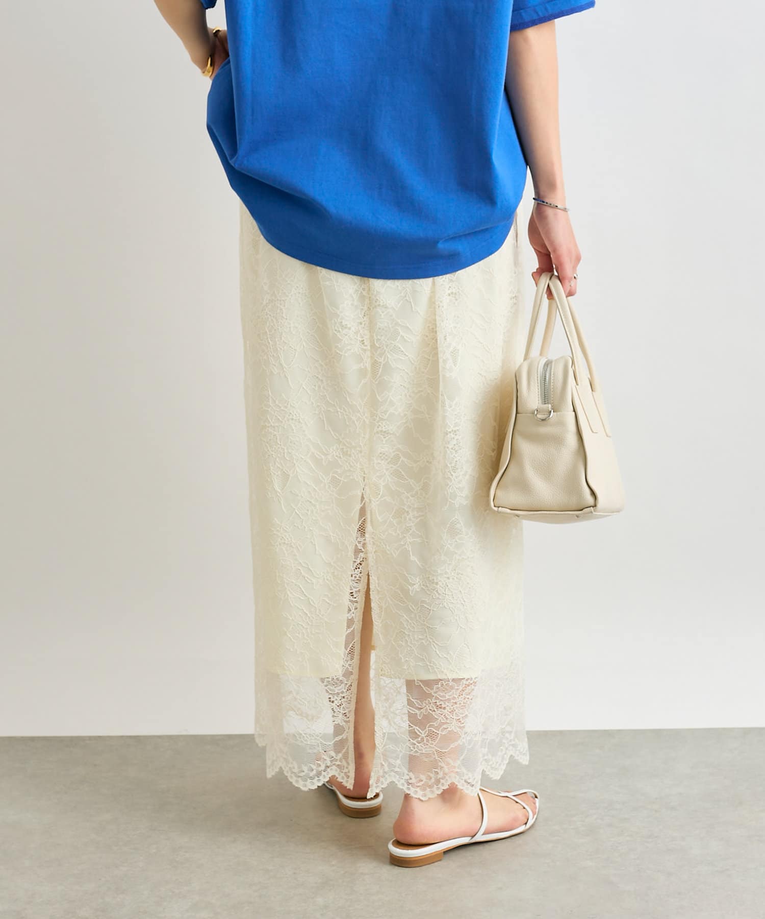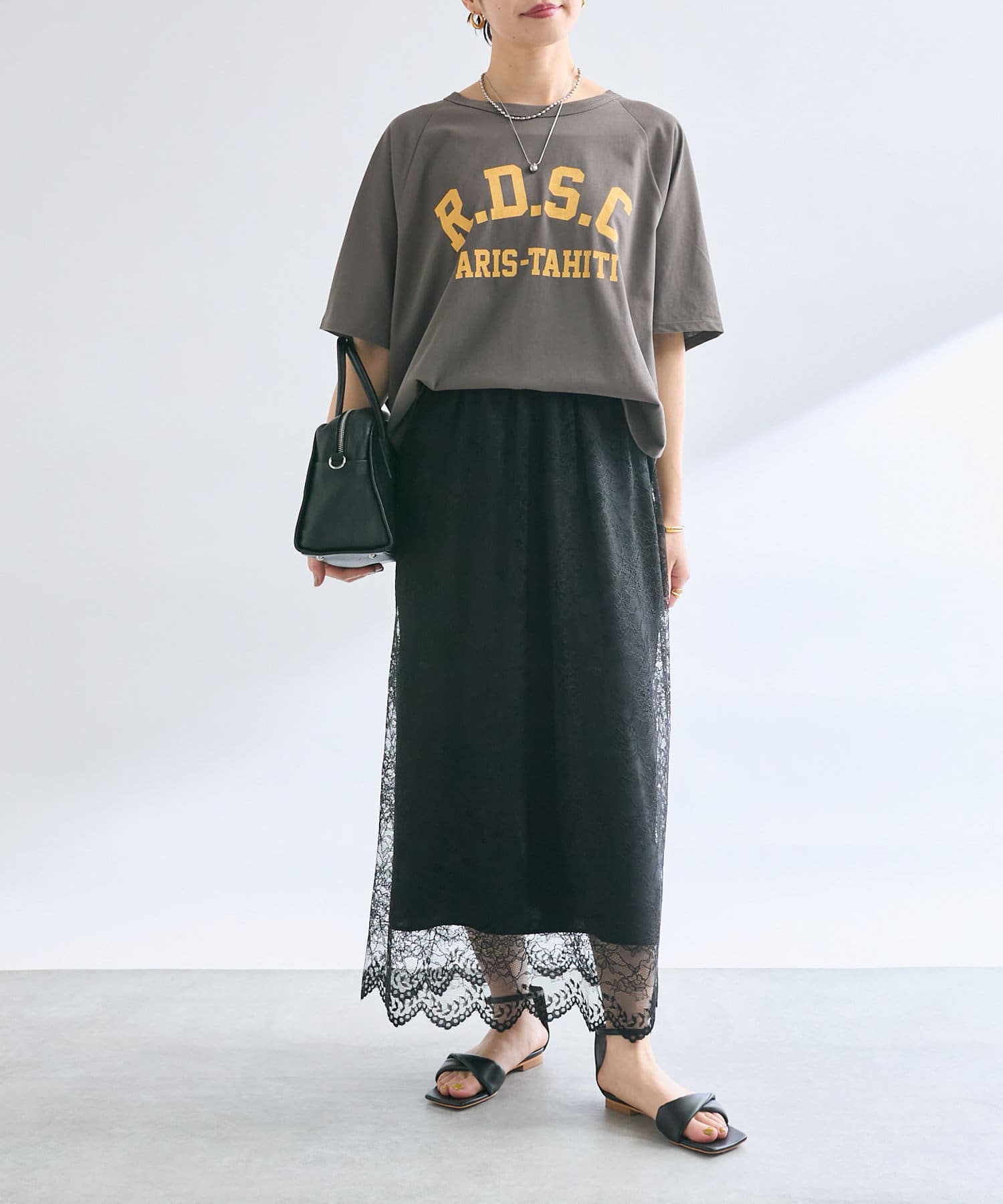 大人なレースで甘くなりすぎないので、リネンシャツやロゴT、スウェットなどのカジュアルなアイテムと合わせていただくと鮮度が出ておすすめです。