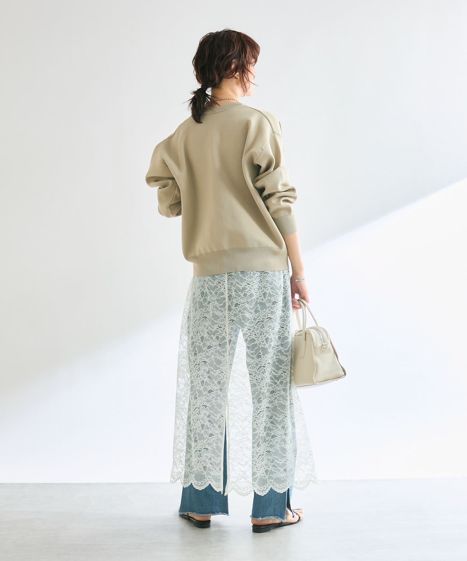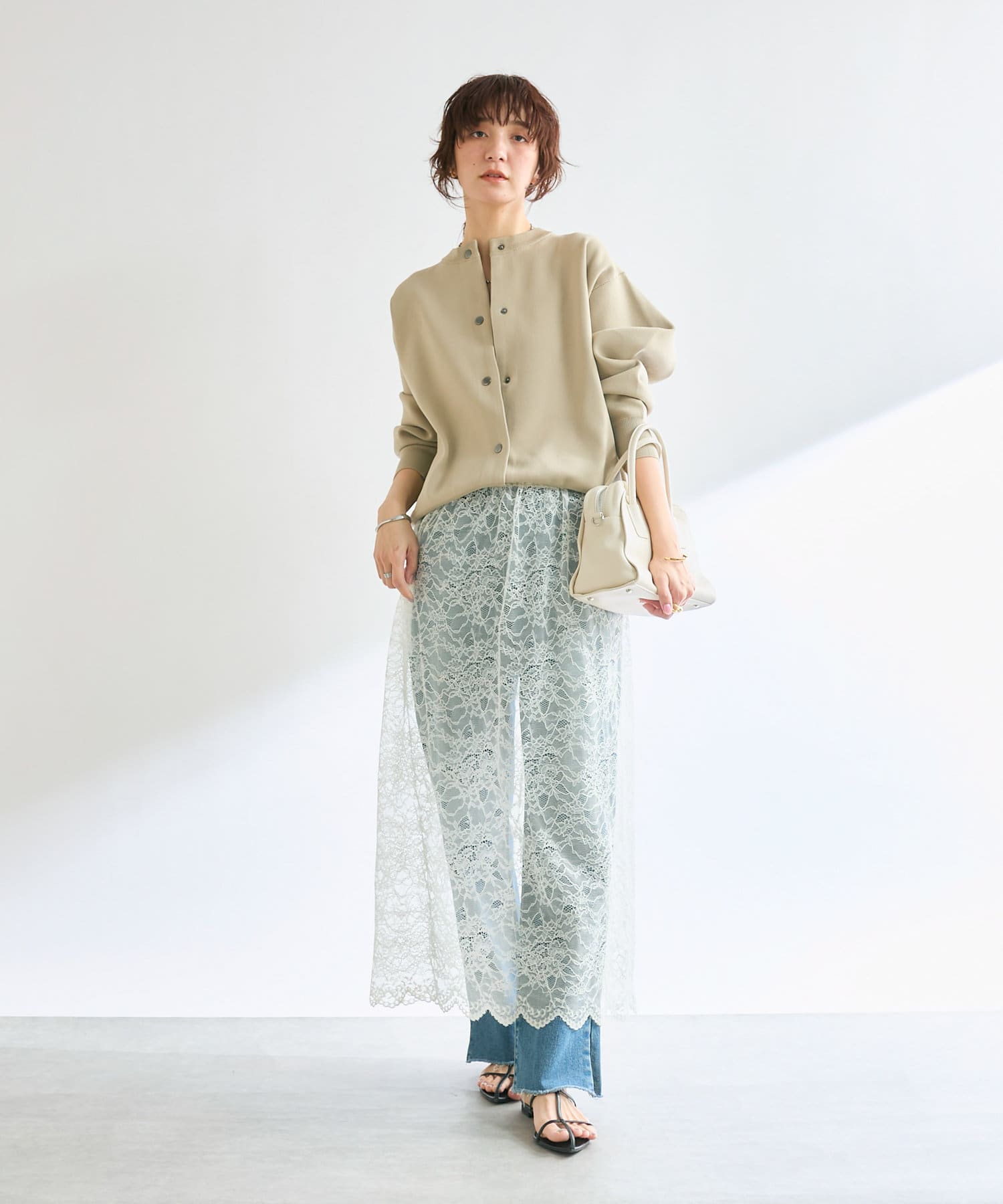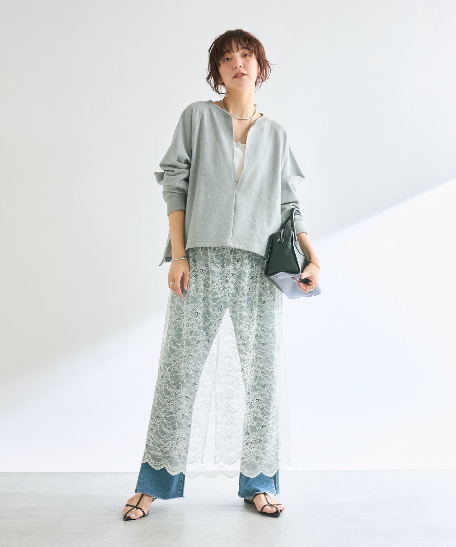 レースだけでもレイヤードに使えるので、デニムなどにレイヤードした時も、もたつかずにすっきりと合わせていただけるアイテムとなっています。