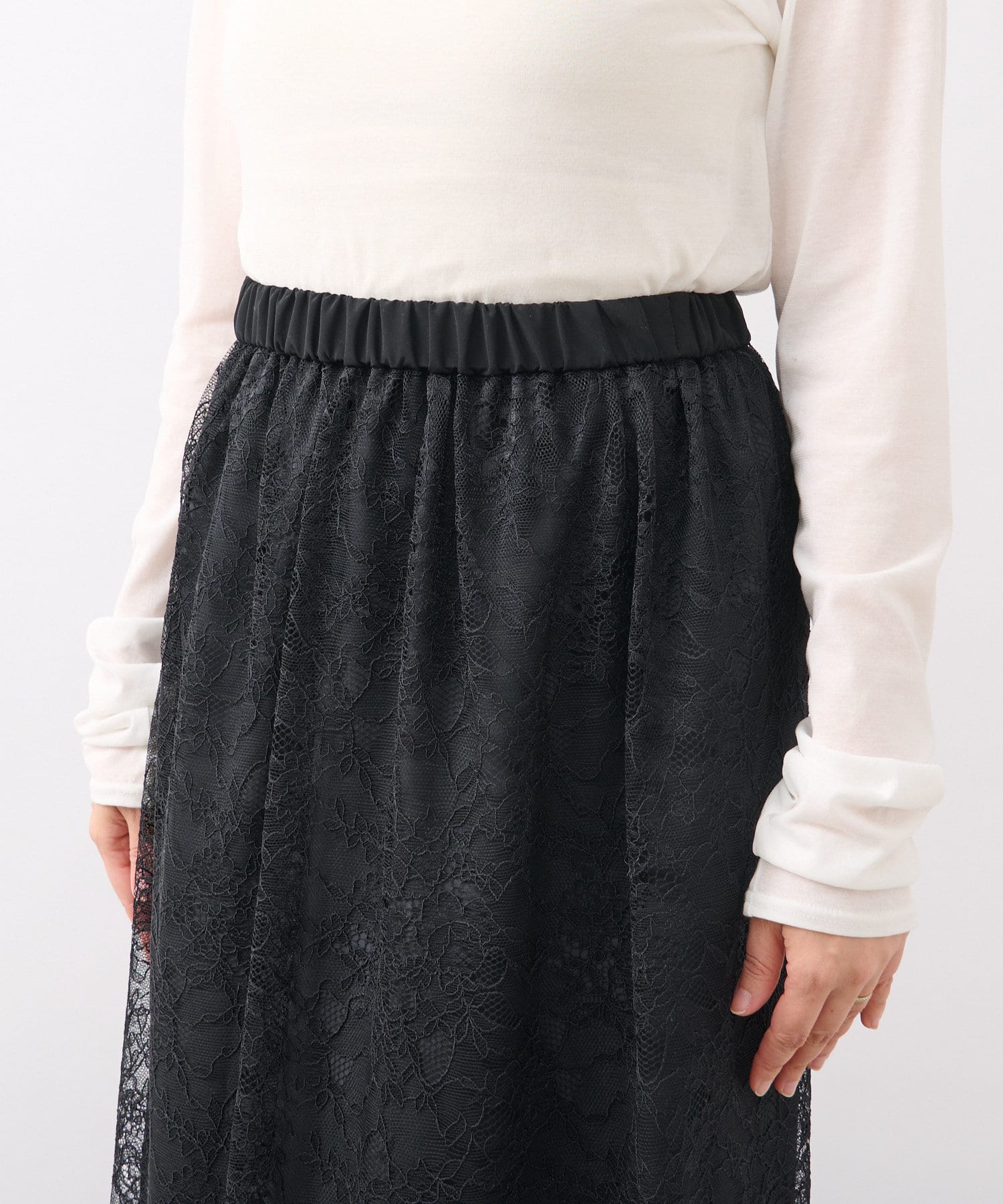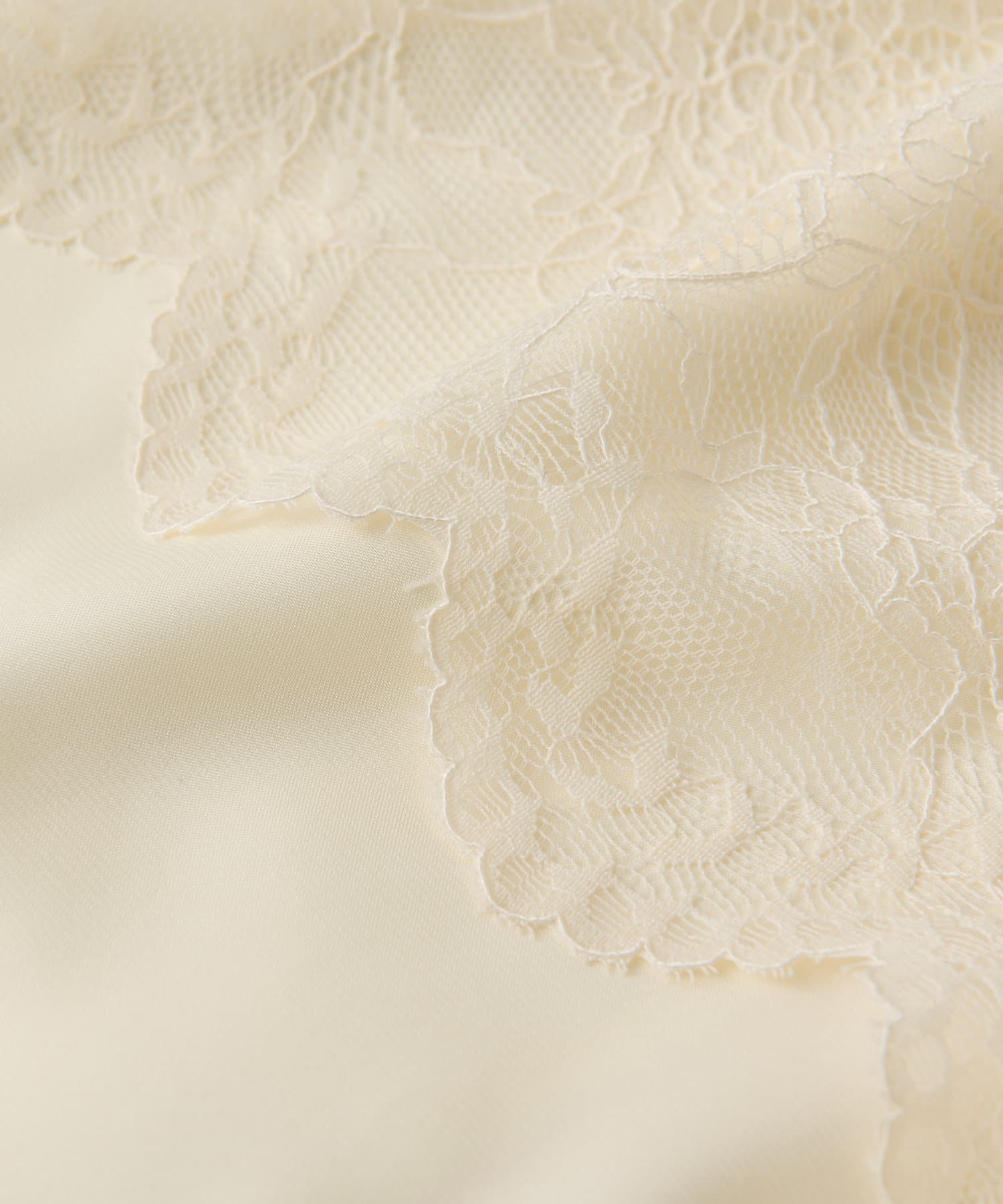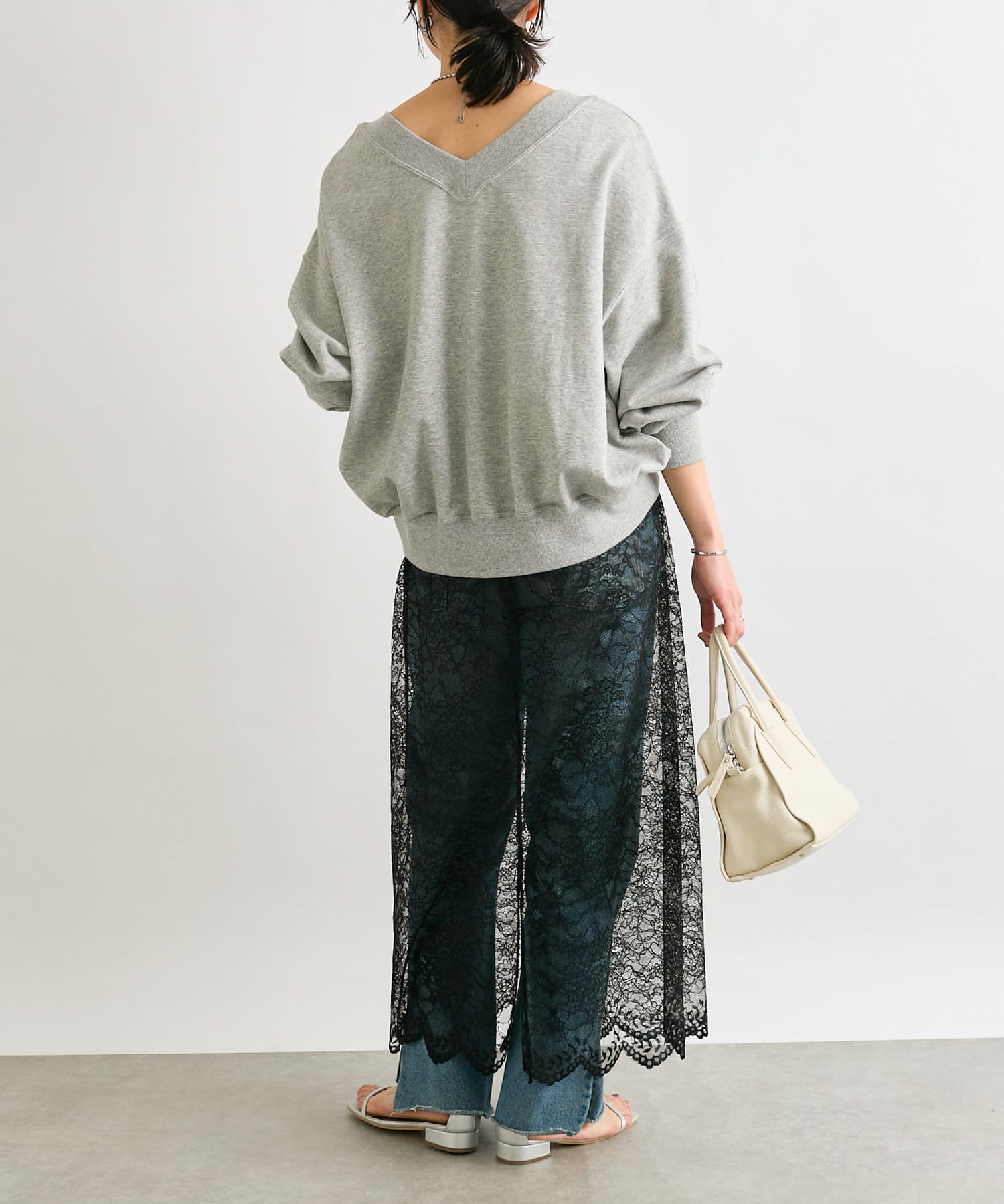 レースだけでもレイヤードに使えるので、デニムなどにレイヤードした時も、もたつかずにすっきりと合わせていただけるアイテムとなっています。