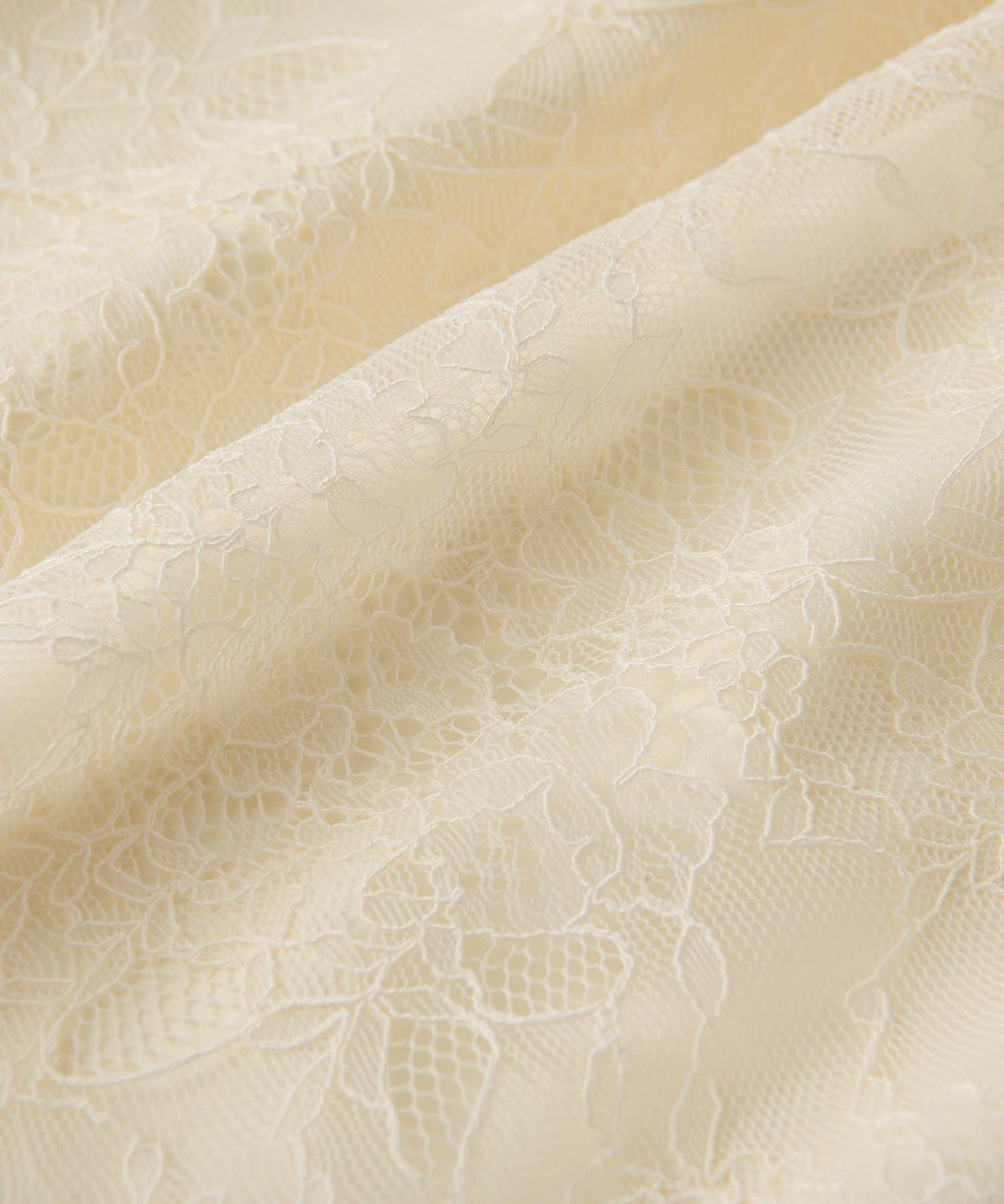 通常薄手のレースには使用しない太めのコード糸を部分的に使用し、凹凸のある表情と繊細さを併せ持つ、柔らかな風合いのレースを使用。