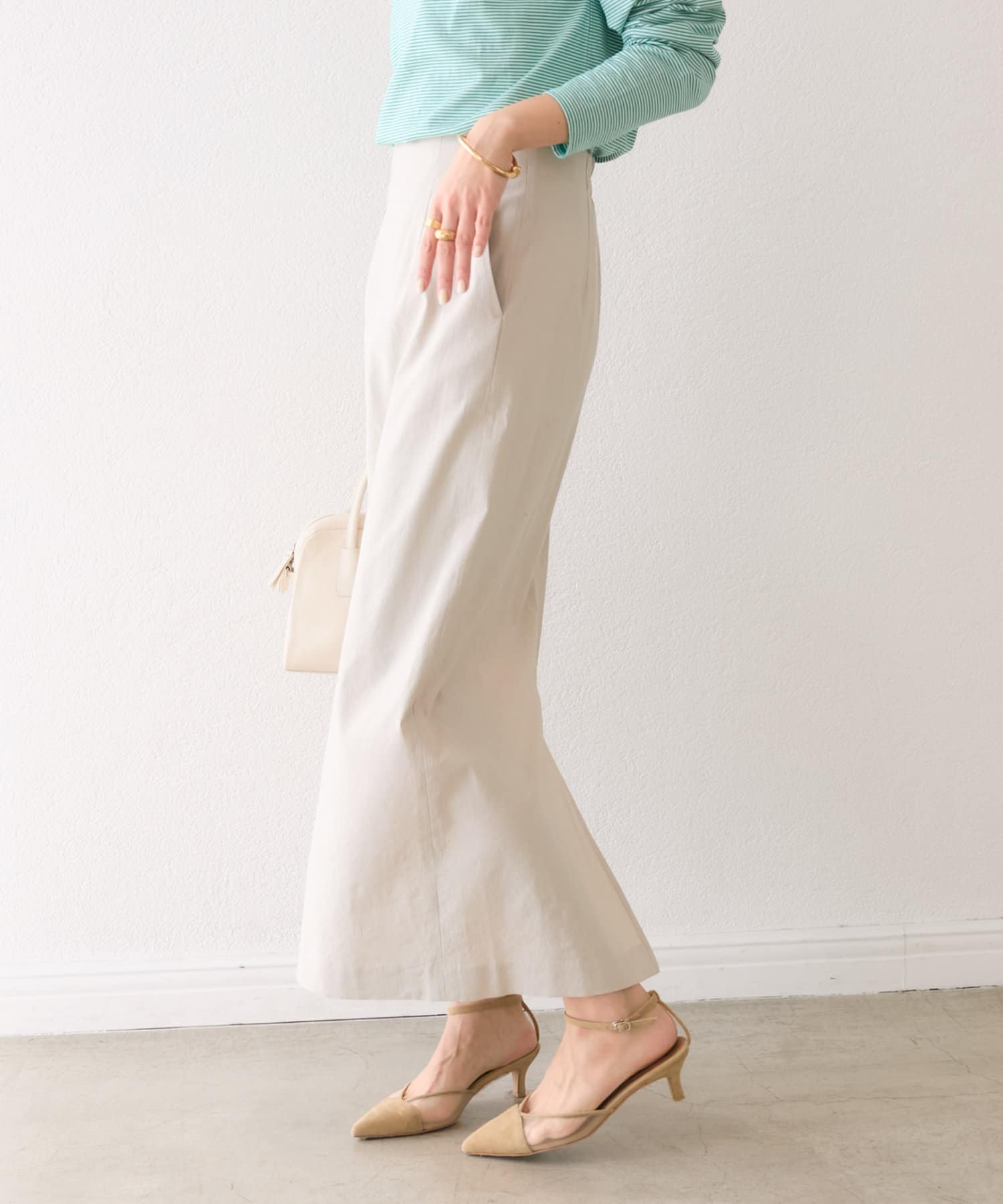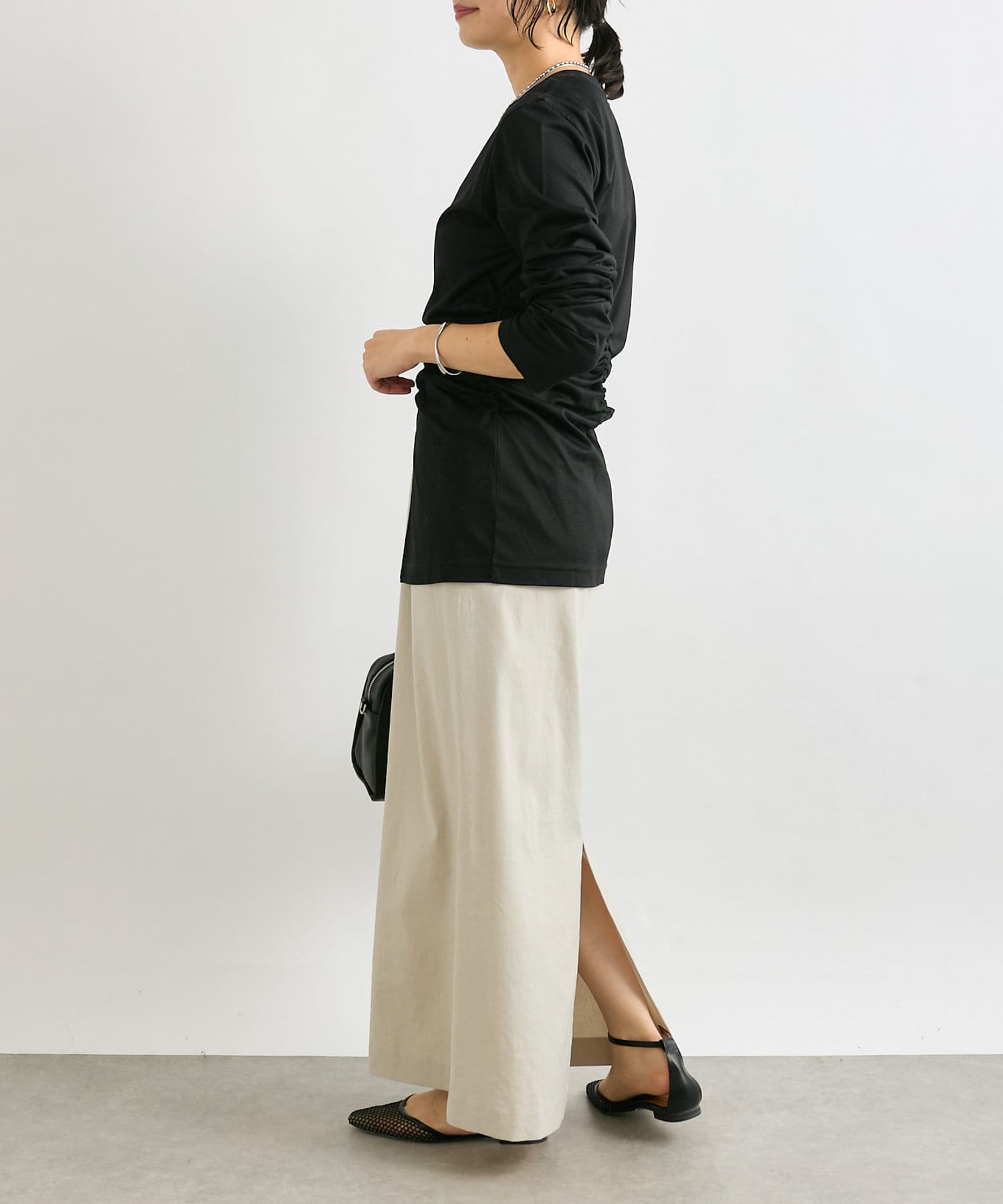 綿麻とレーヨンが交織されているので、ごわつかず落ち感を併せ持った素材感が魅力的です。