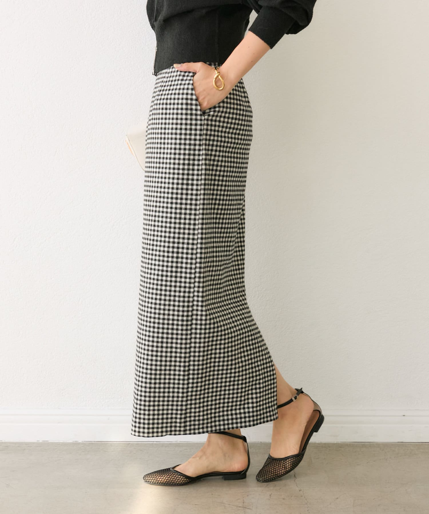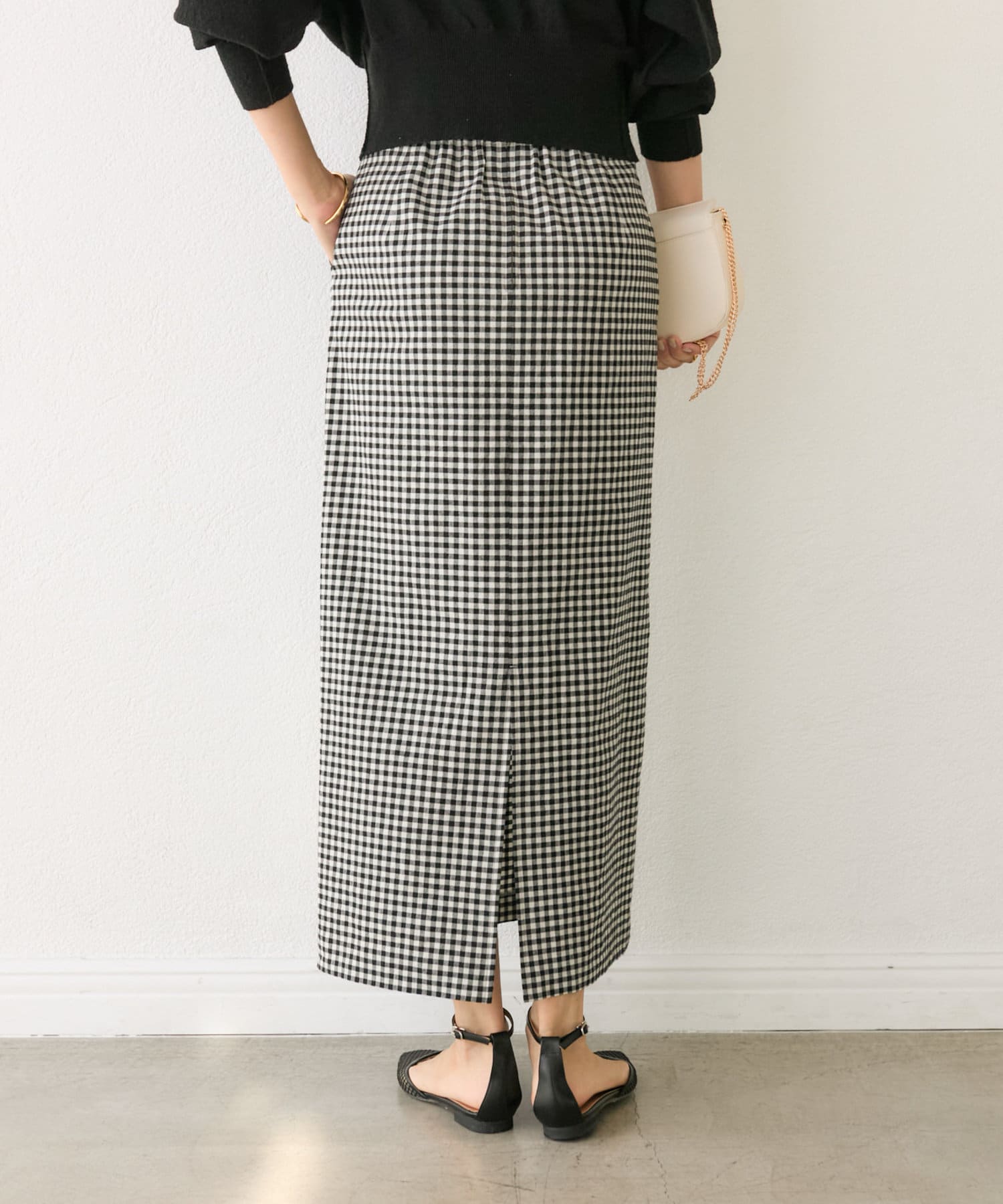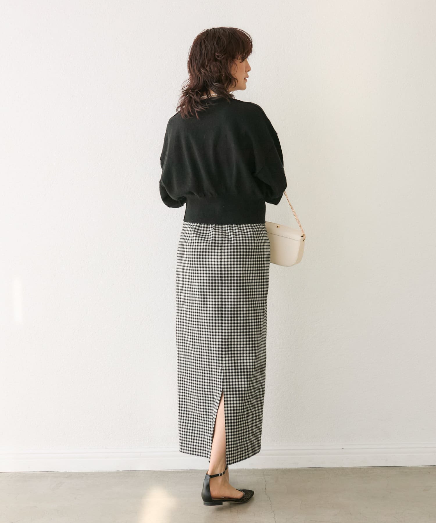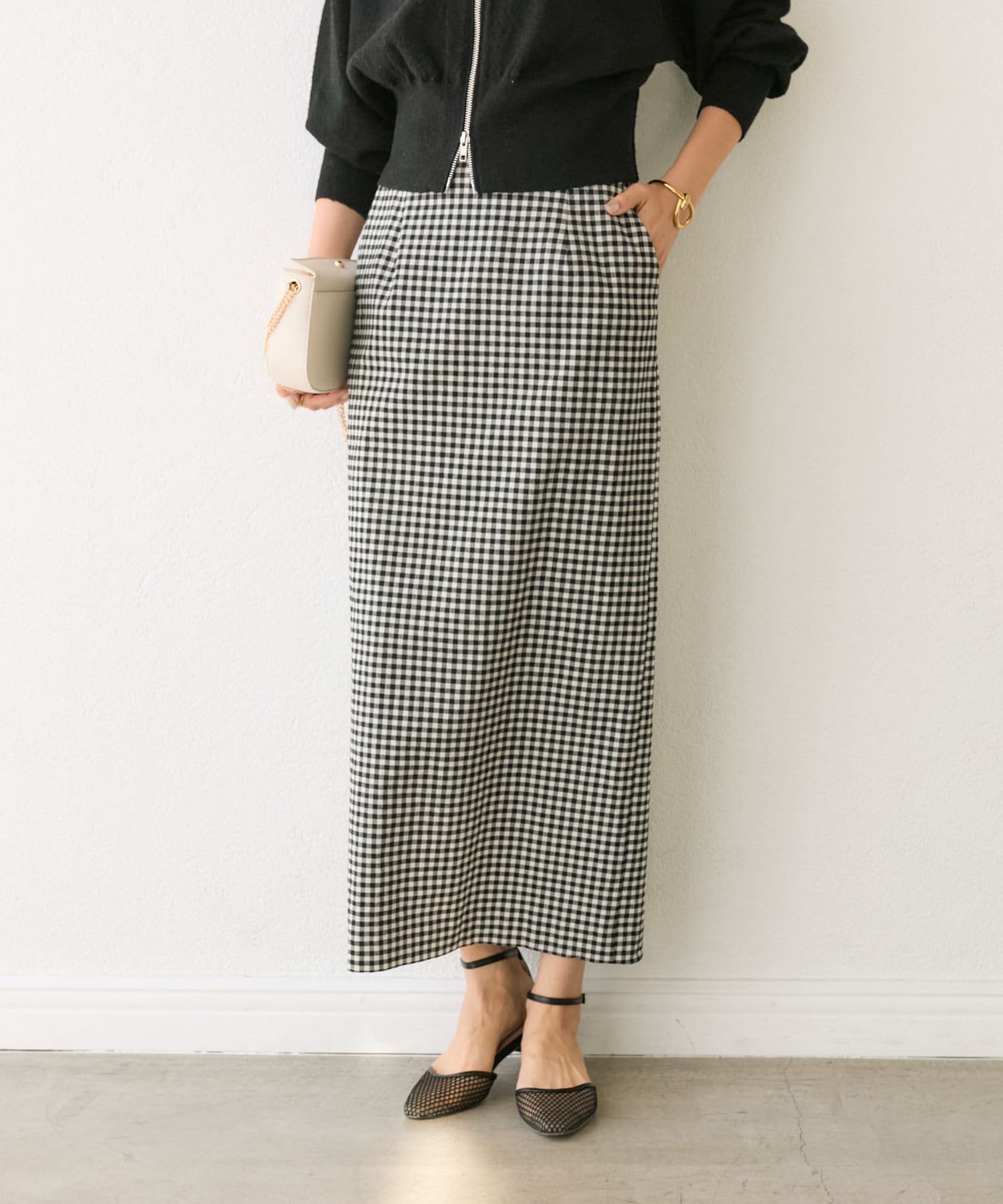 スッキリしたロング丈なので、ギンガムも甘くなく大人っぽく着こなしていただけます。