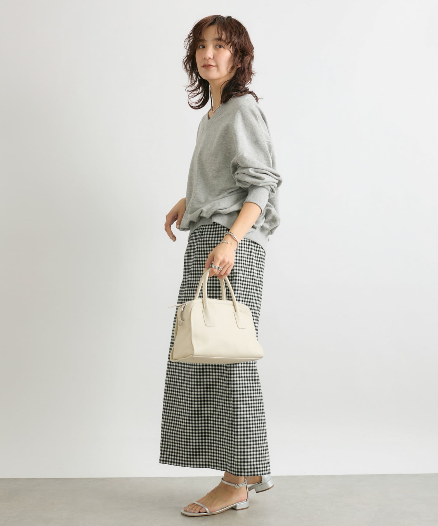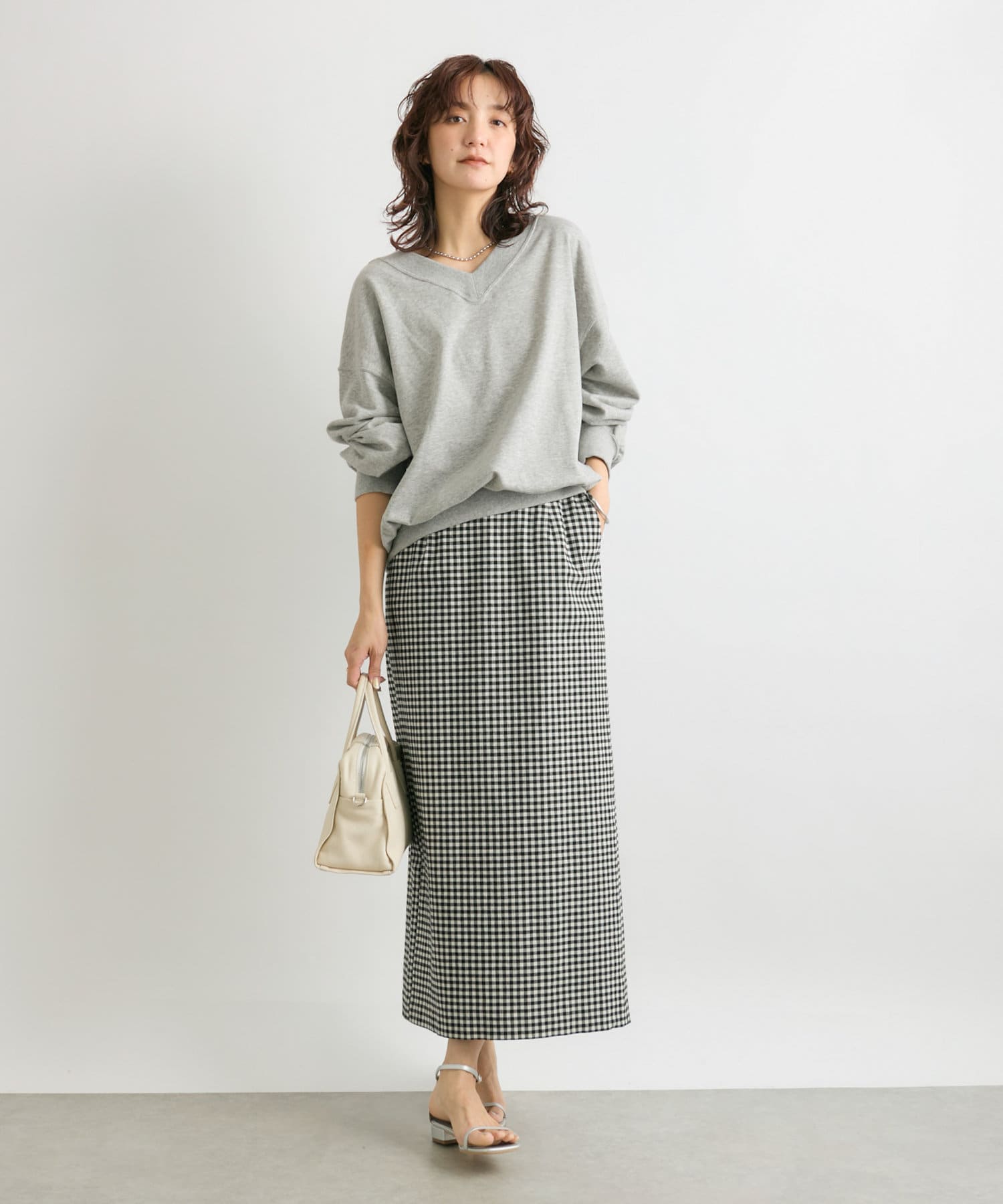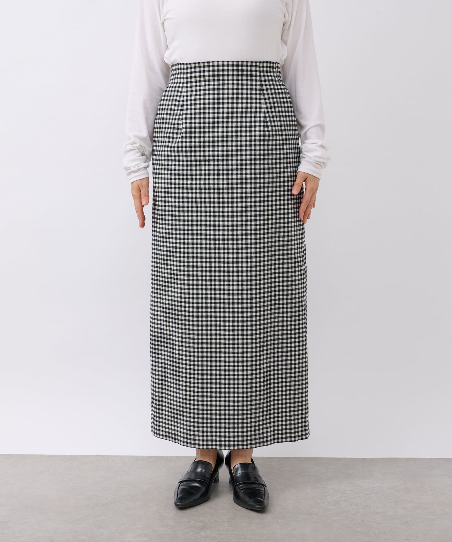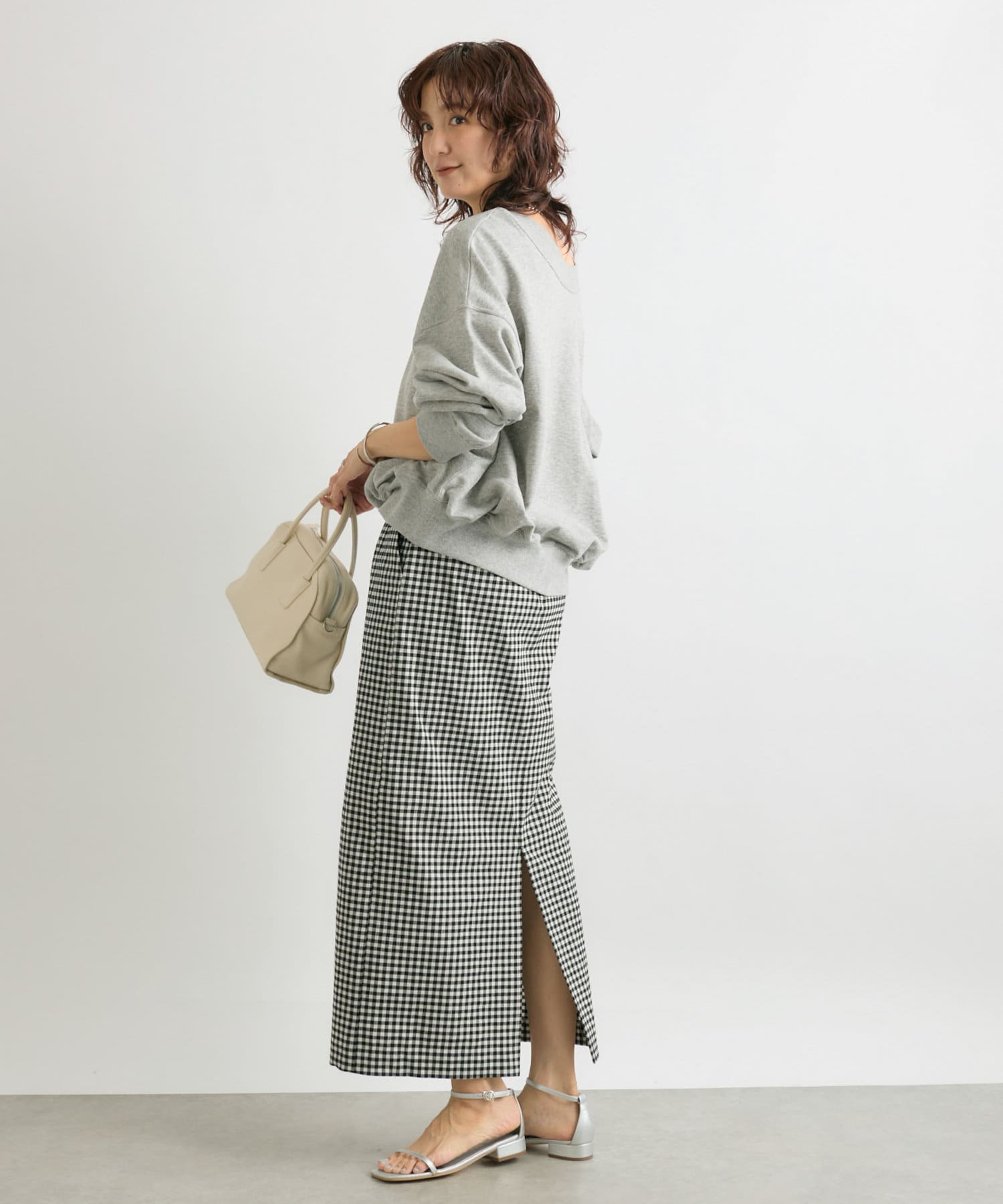 スッキリしたロング丈なので、ギンガムも甘くなく大人っぽく着こなしていただけます。