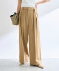 ウエストにポイントを付けた1枚でサマになるワイドチノパン。