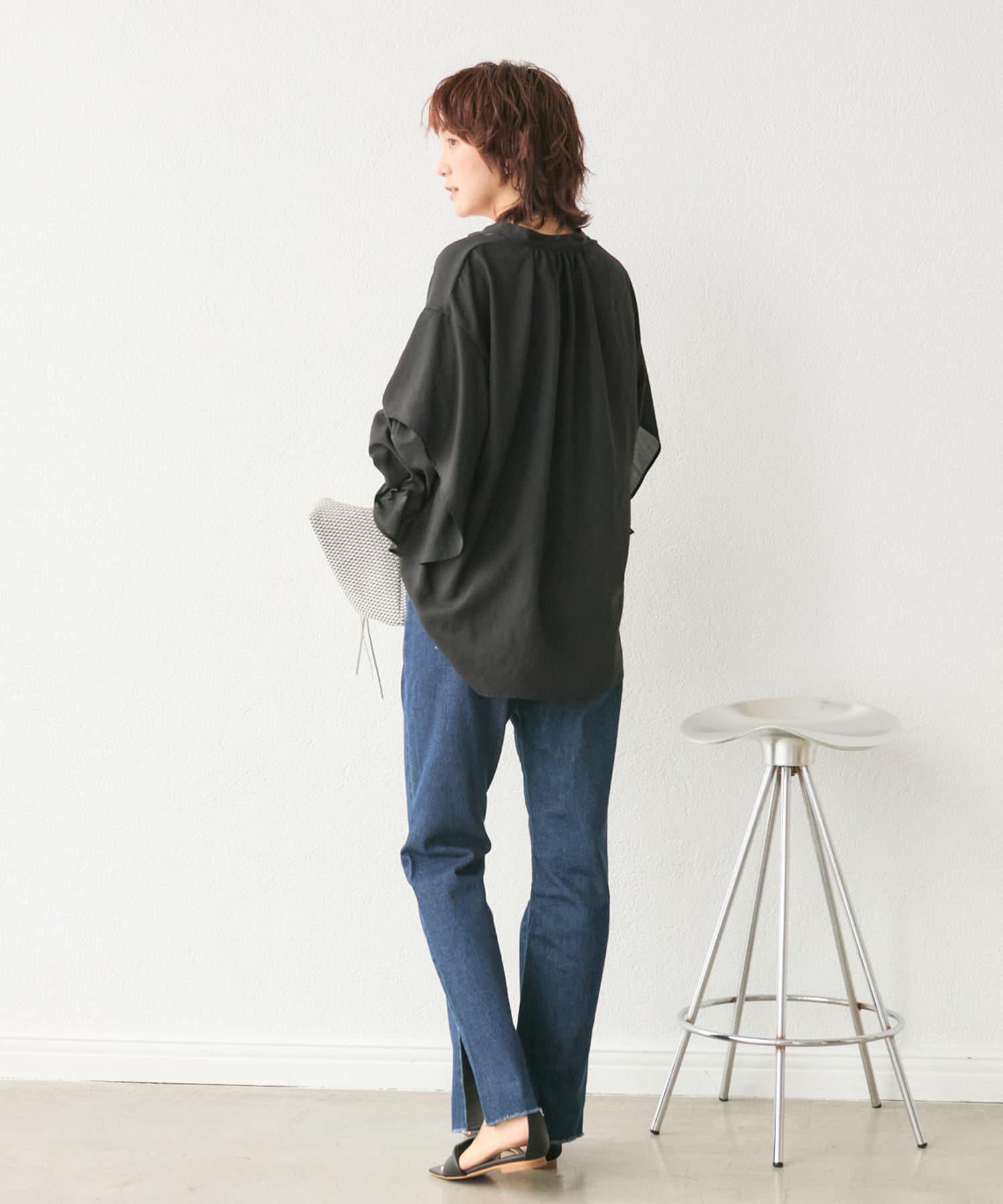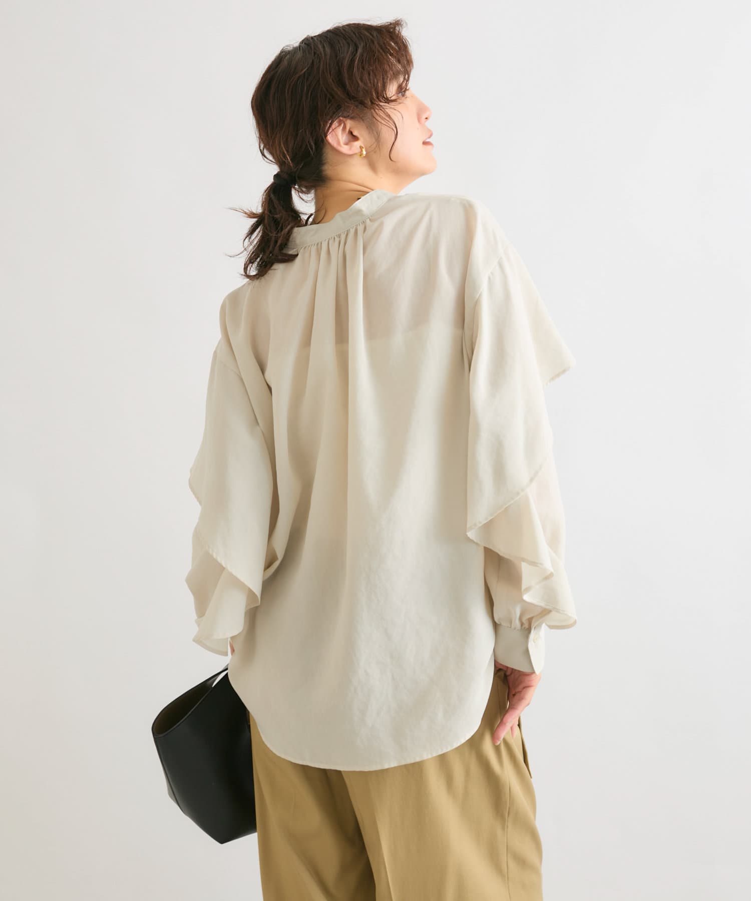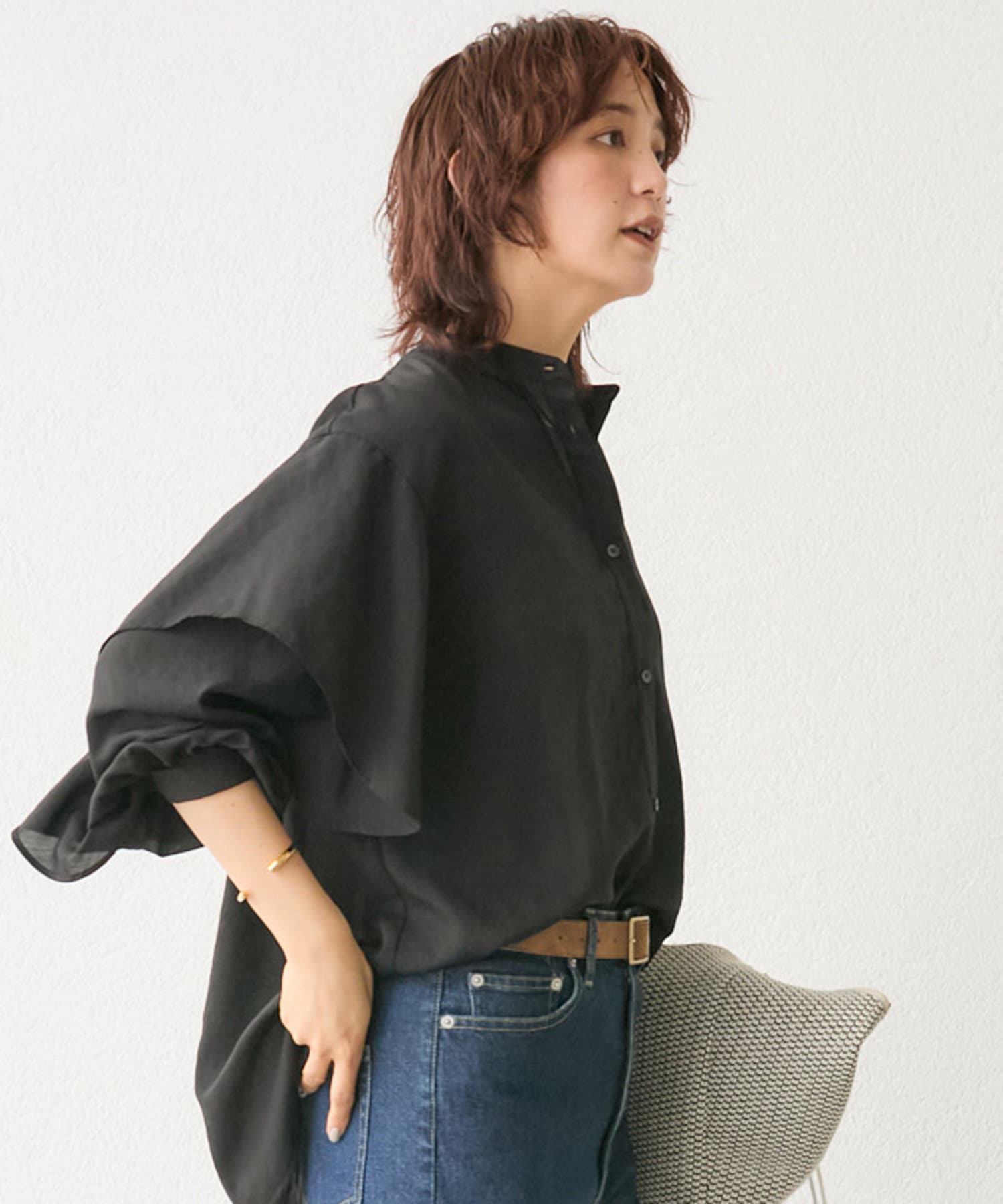袖についたフリルが印象的で、袖を捲ったときにでるボリューム感も華やかなアイテム。