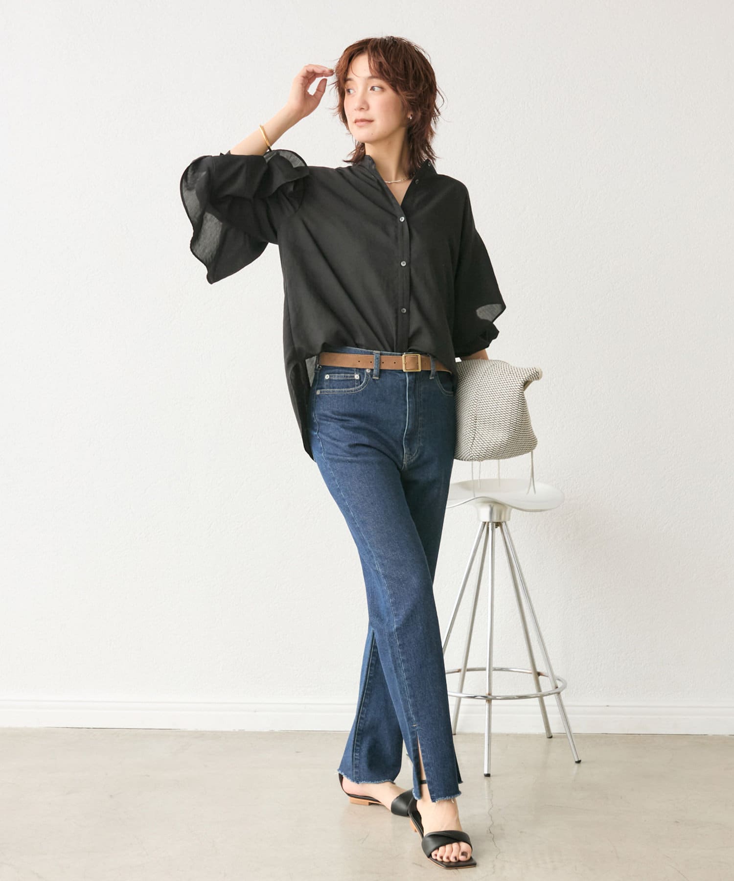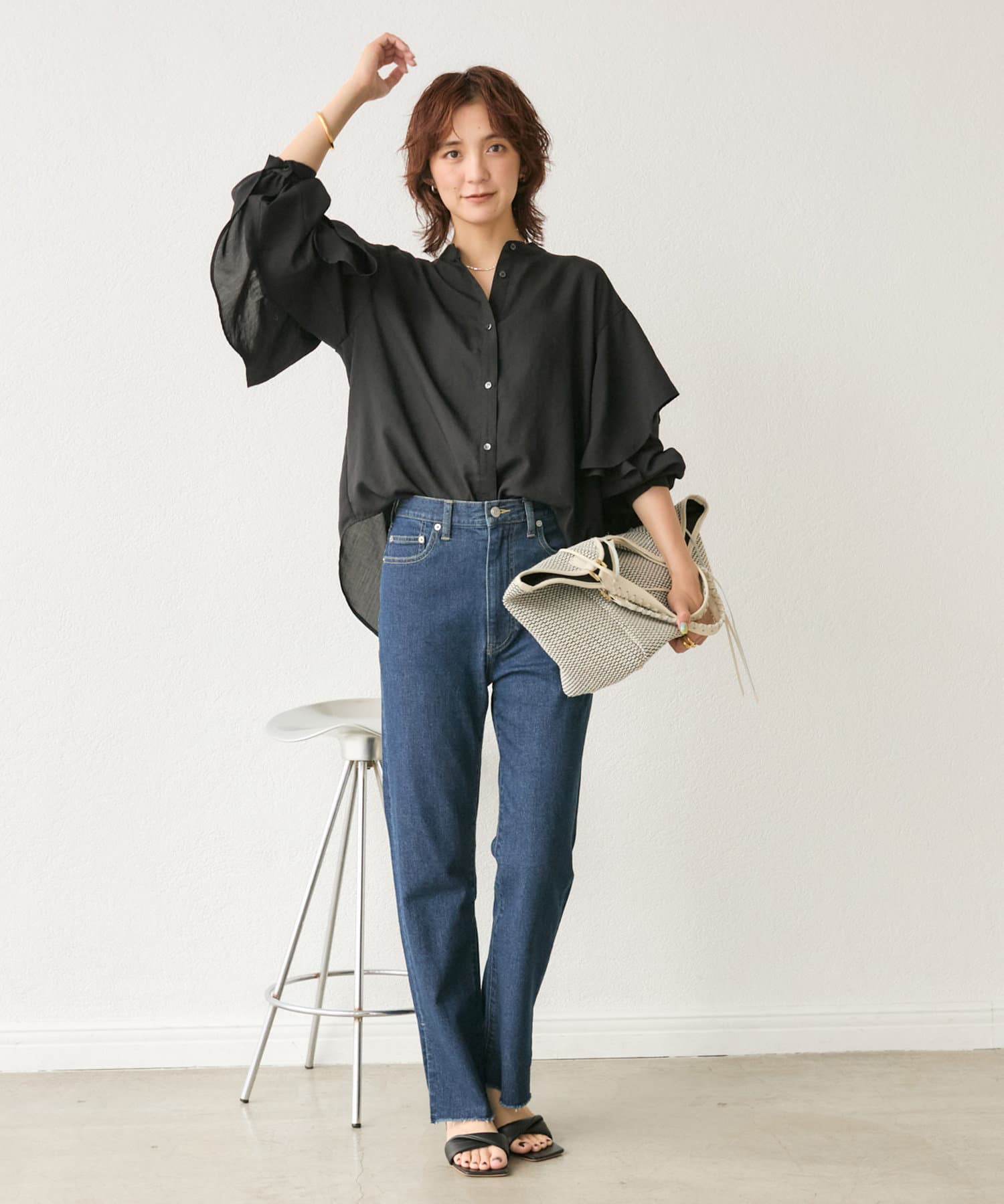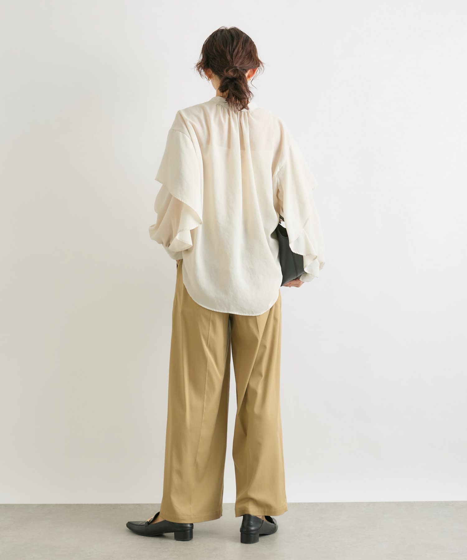 袖についたフリルが印象的で、袖を捲ったときにでるボリューム感も華やかなアイテム。