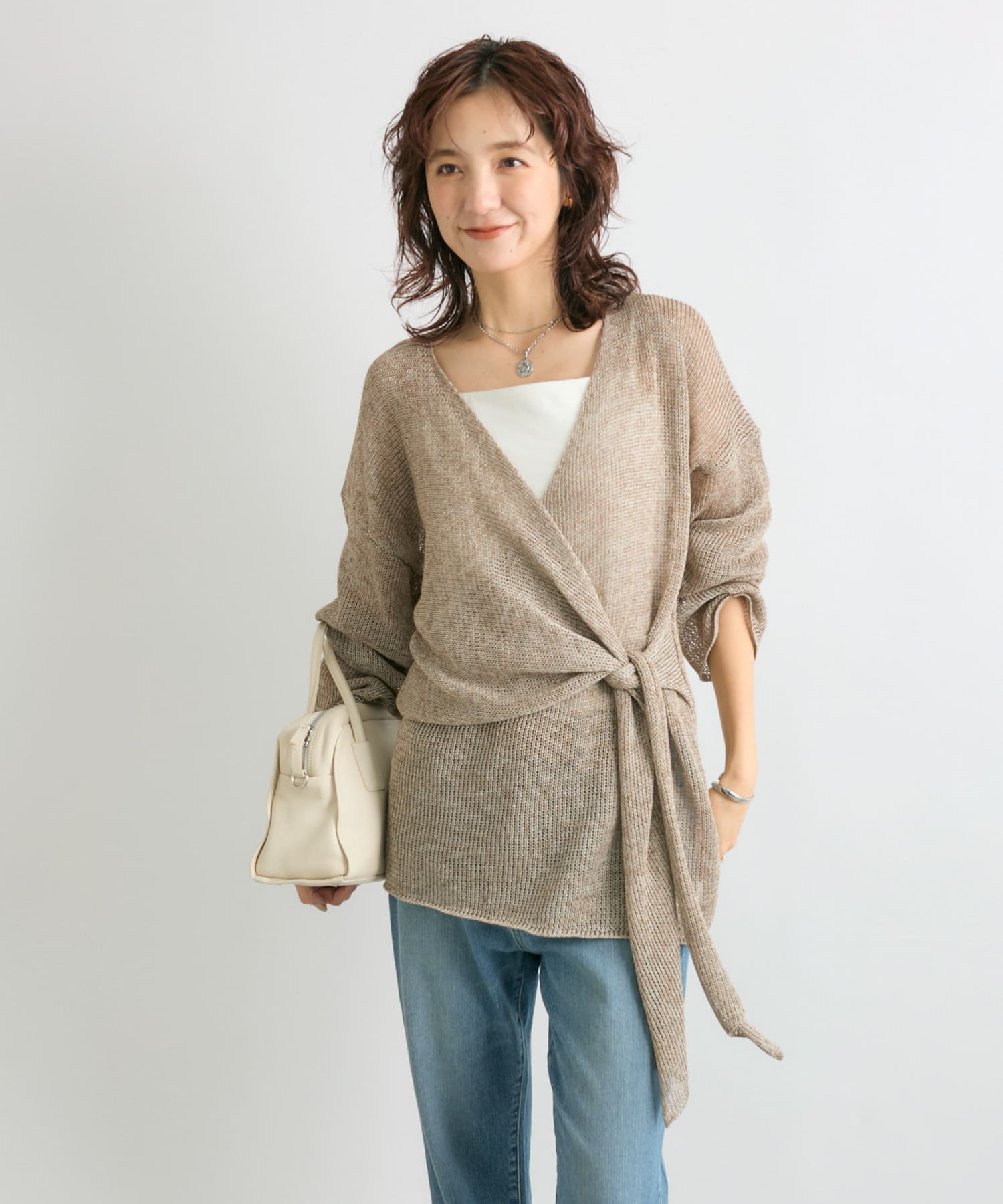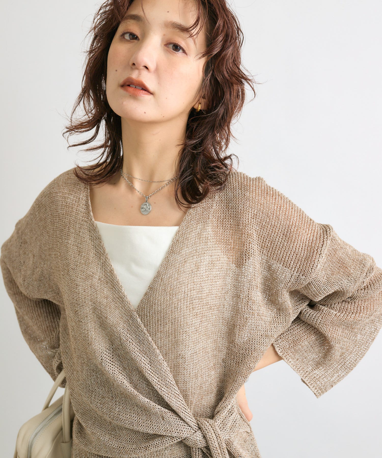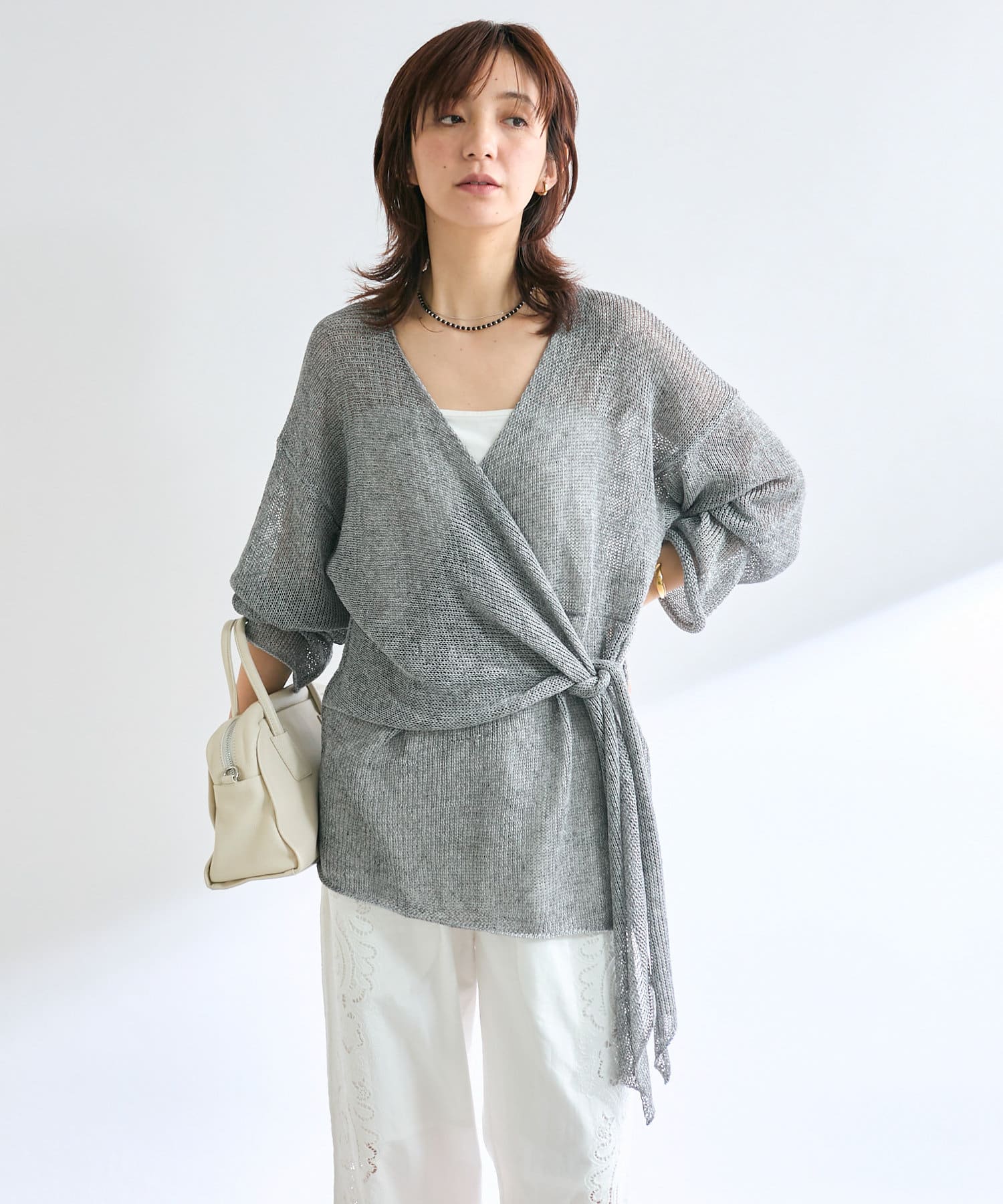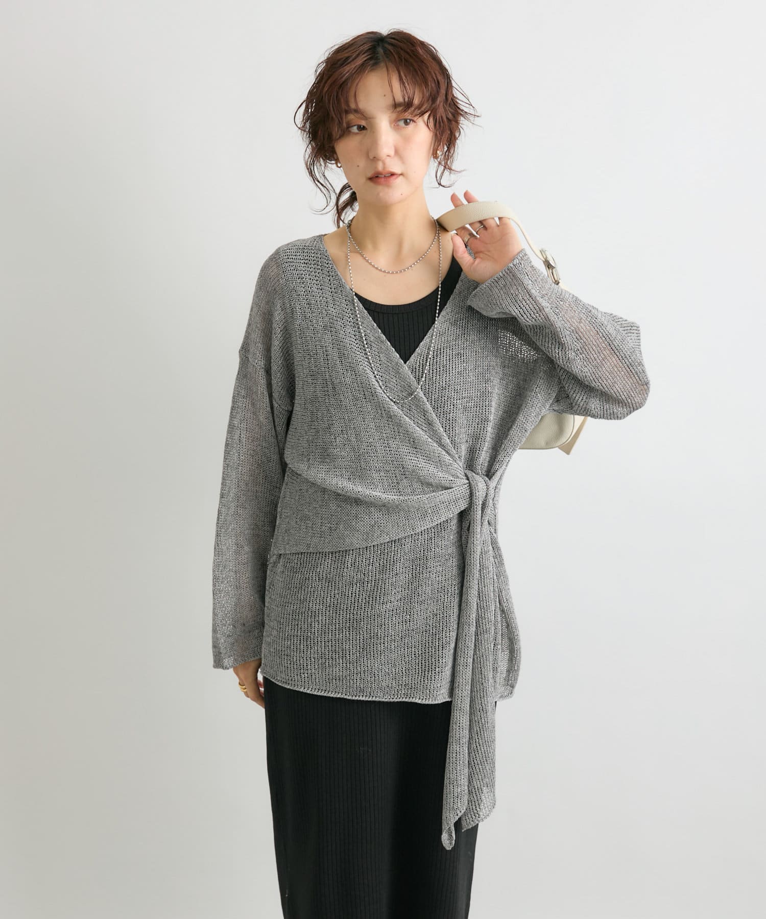 リネン混を使用したヌケ感のあるカシュクールニットです。