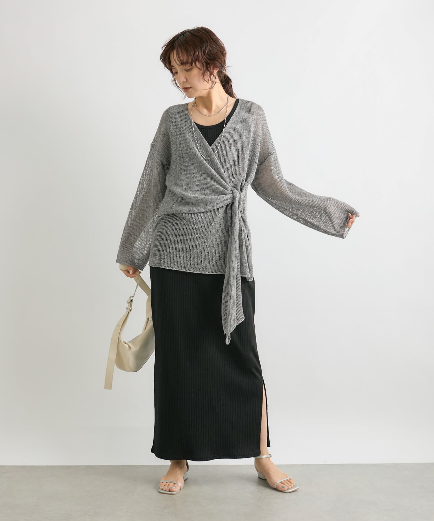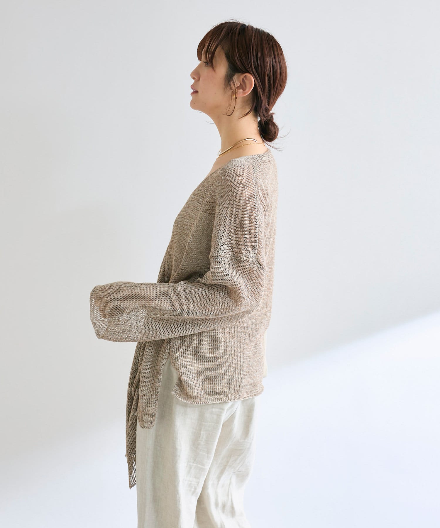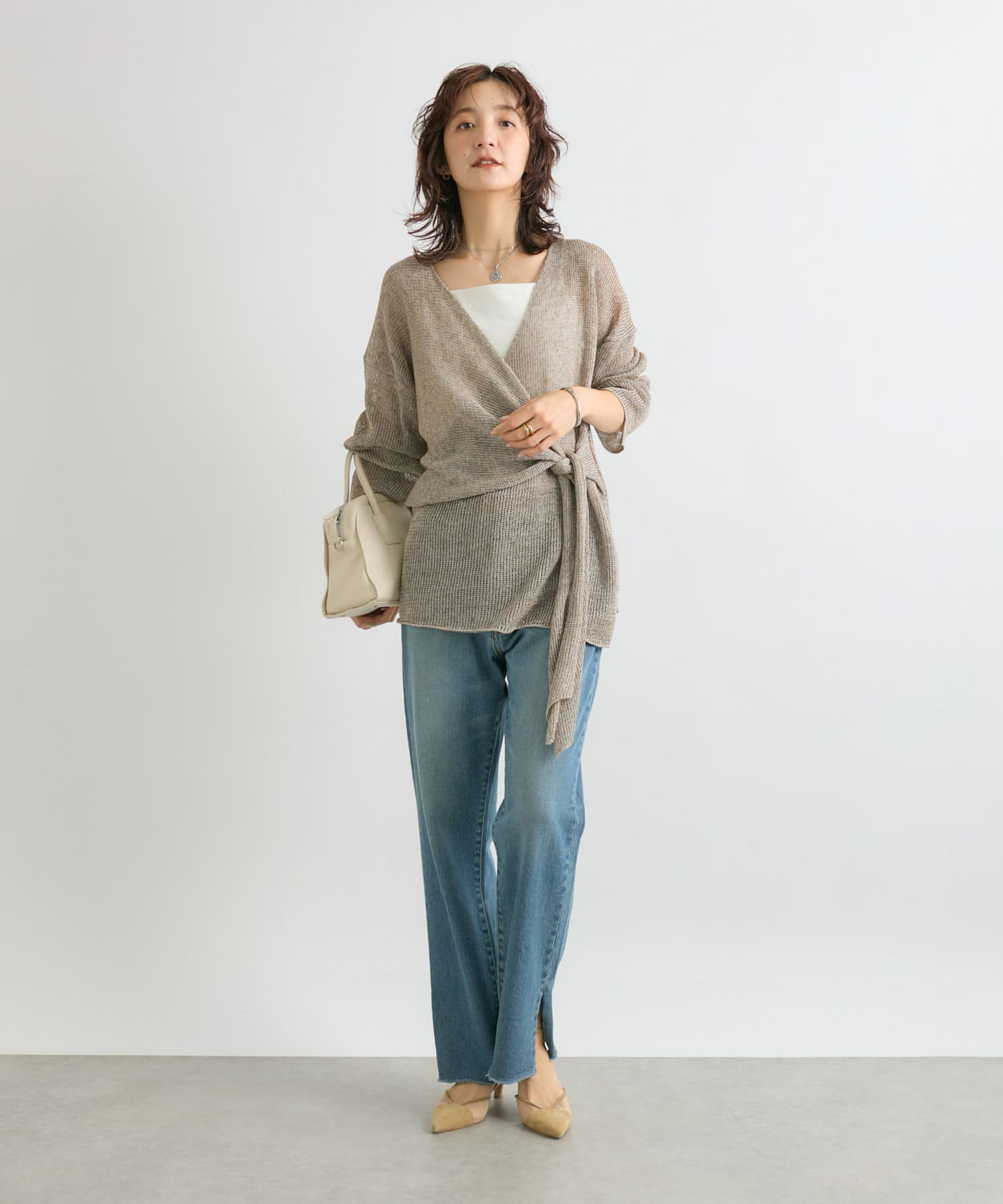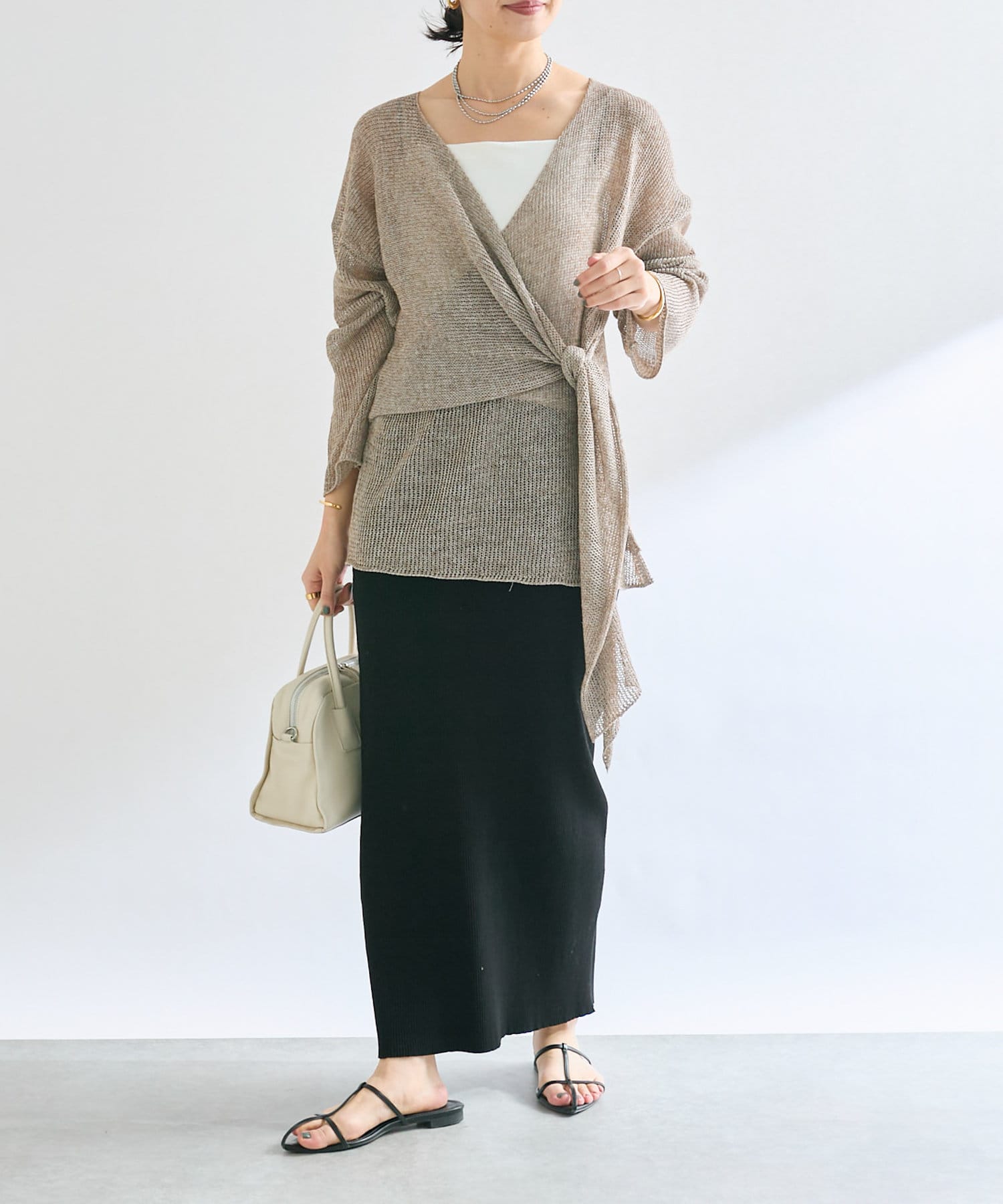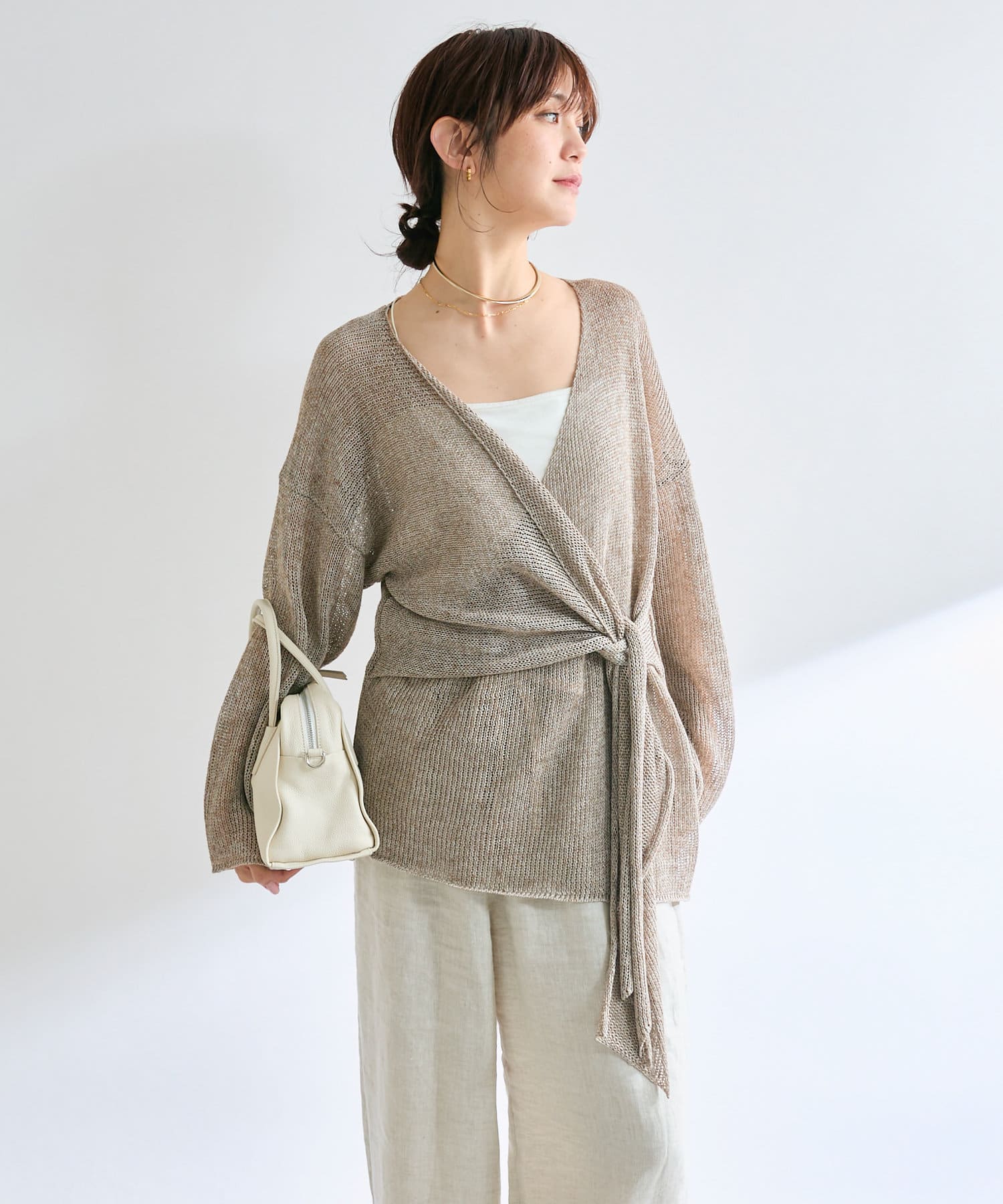 リネン混を使用したヌケ感のあるカシュクールニットです。