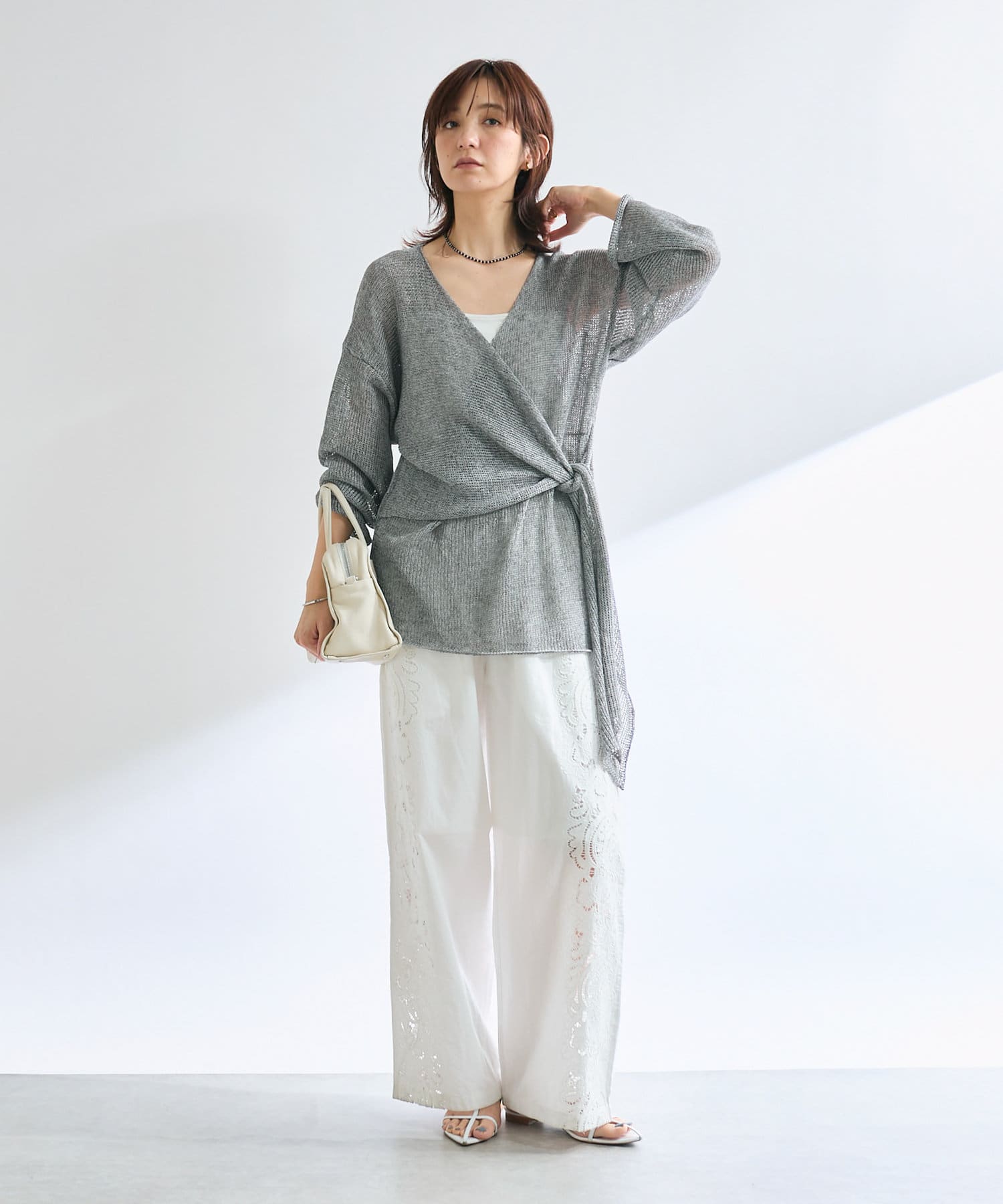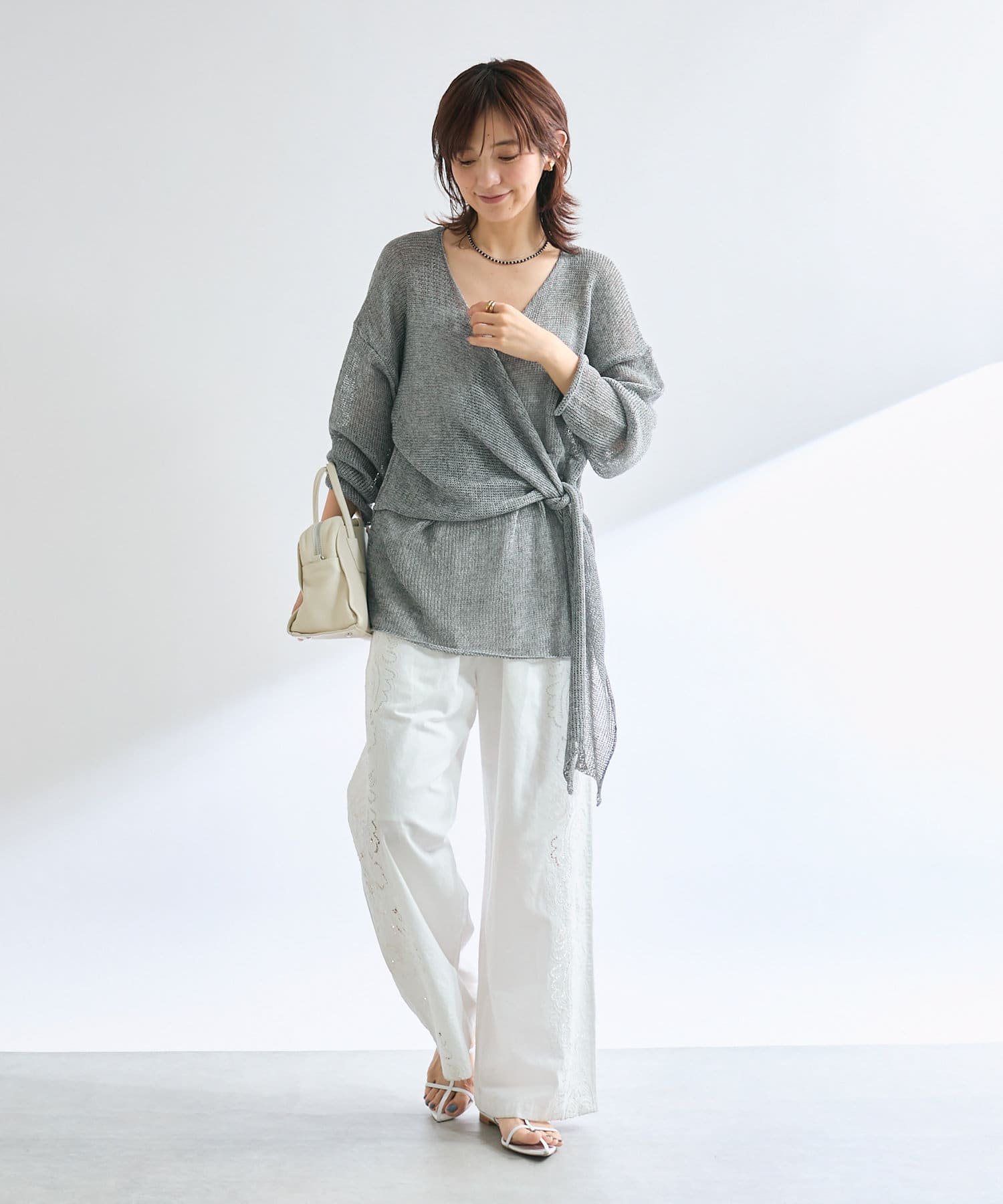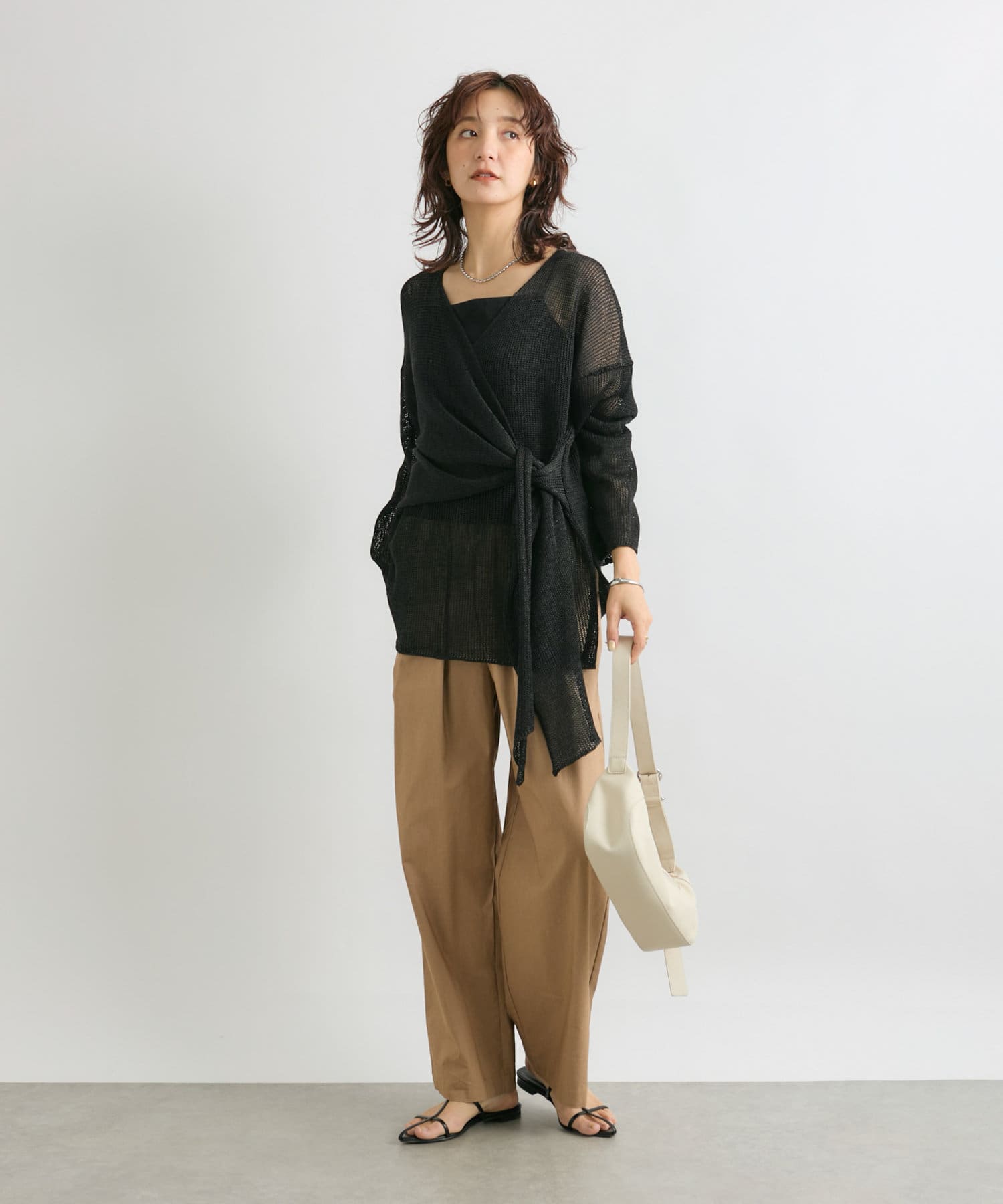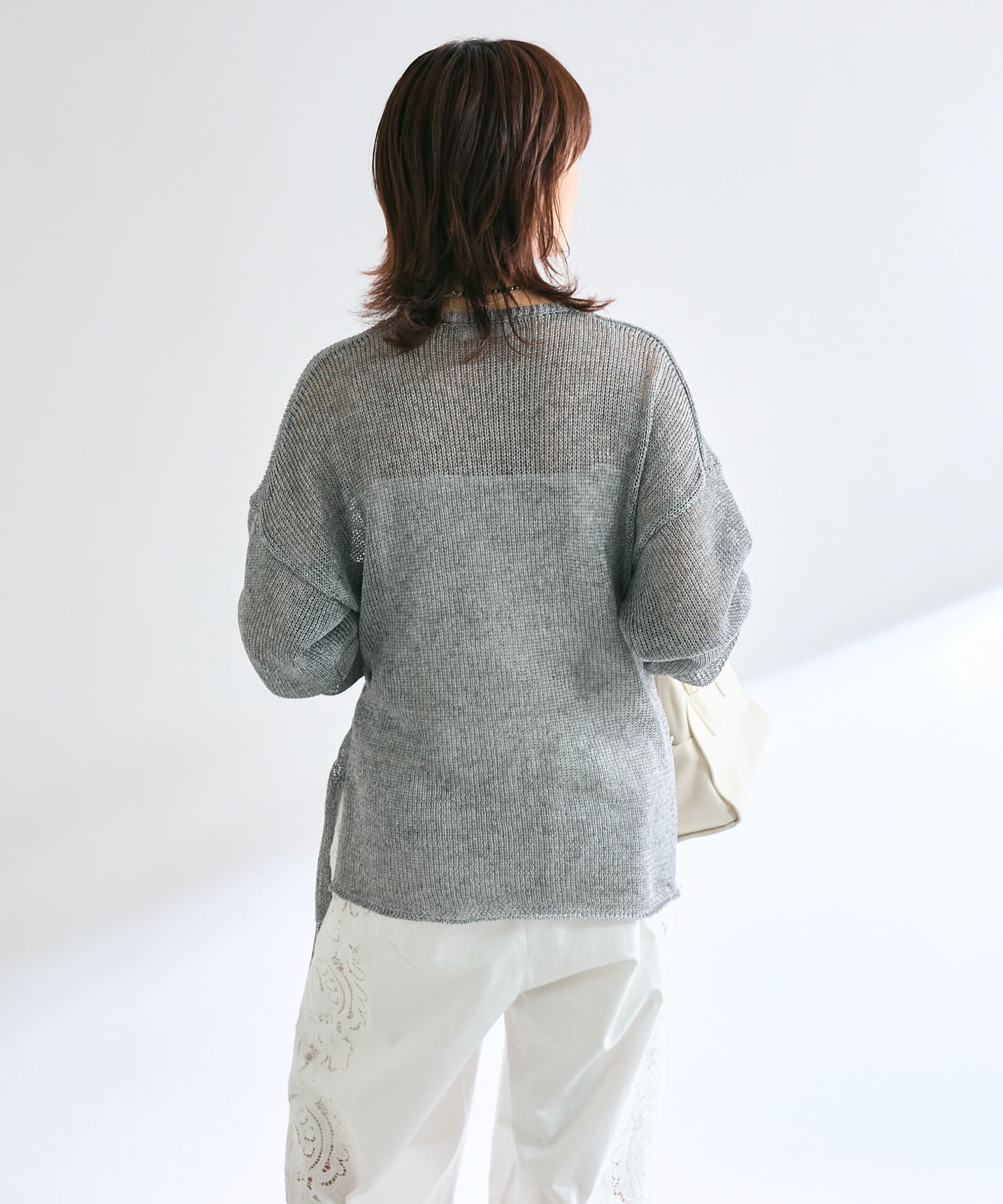 リネン混を使用したヌケ感のあるカシュクールニットです。
