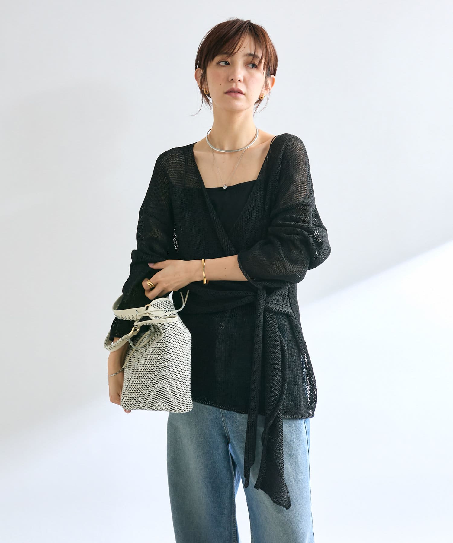 【女性らしいシルエット】ストローヤーンカシュクールニット