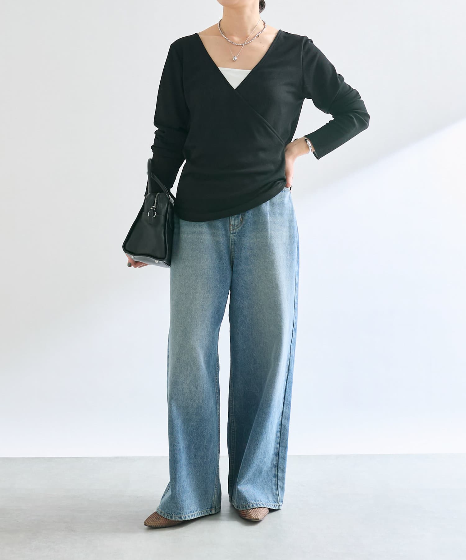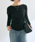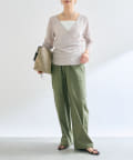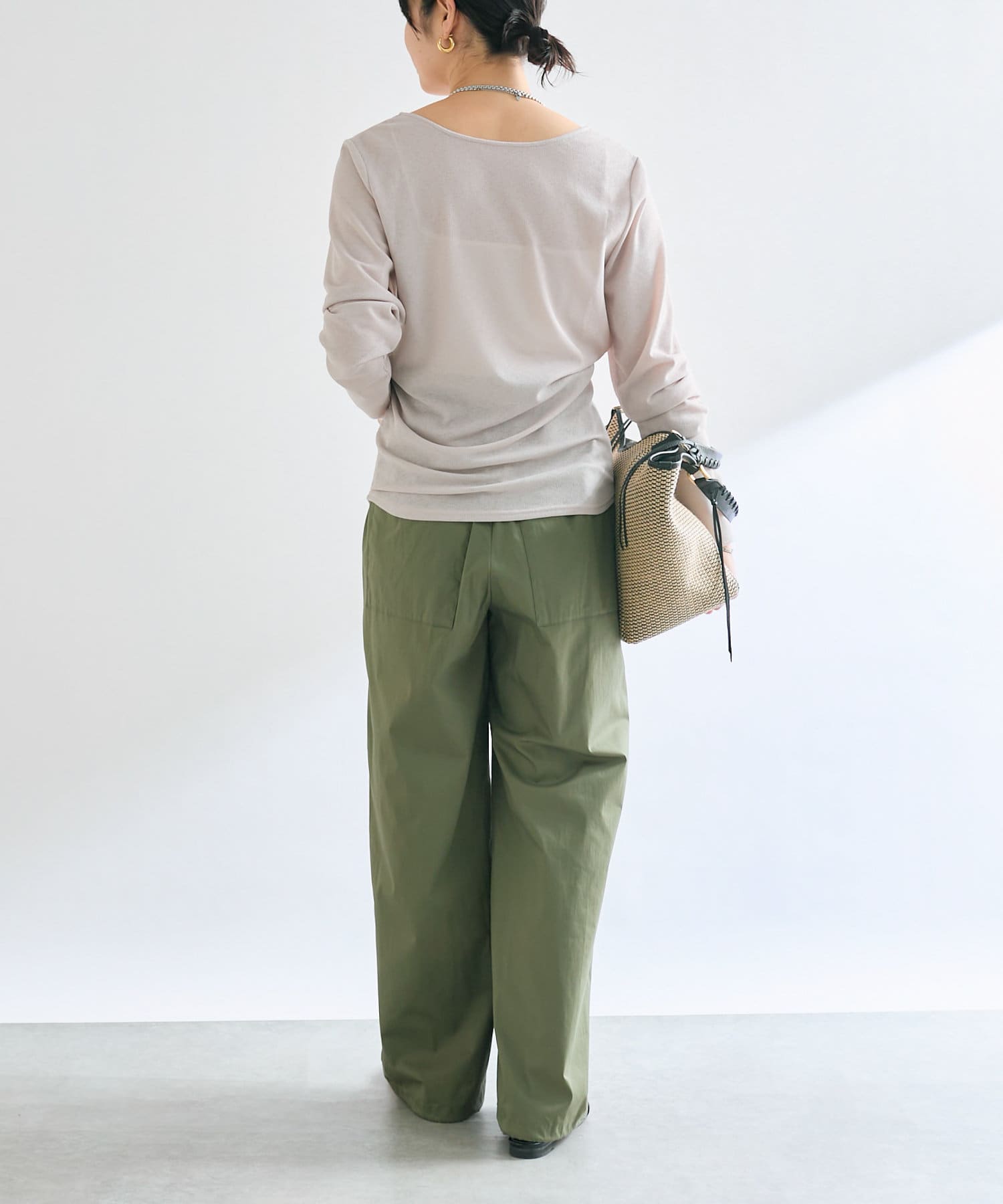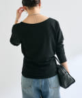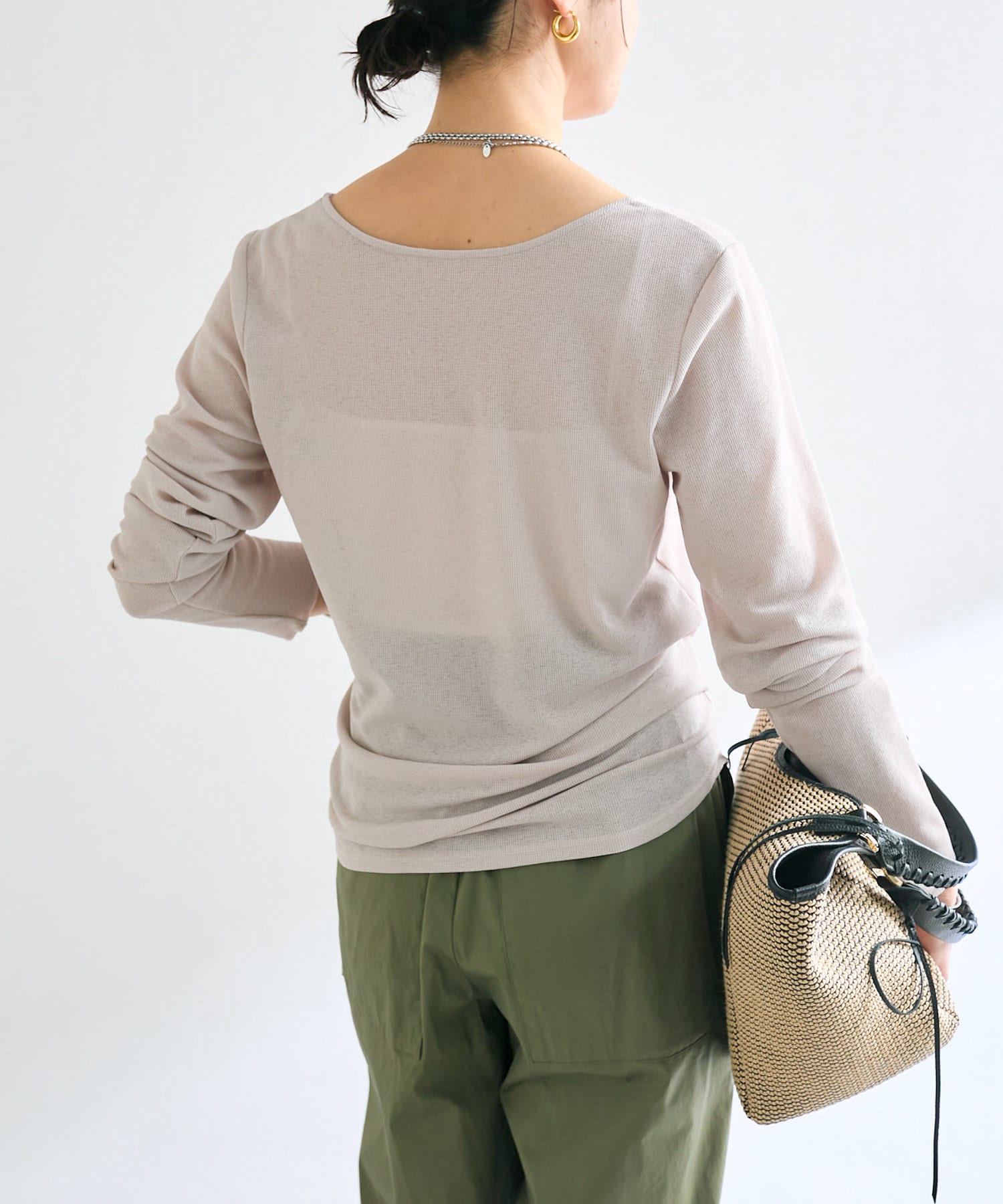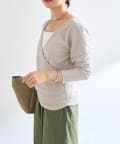 インナーにはスクエアタイプのキャミソールなどを合わせて、すっきりと着ていただいたり、クルーネックで少しカジュアルな着こなしもおすすめです。