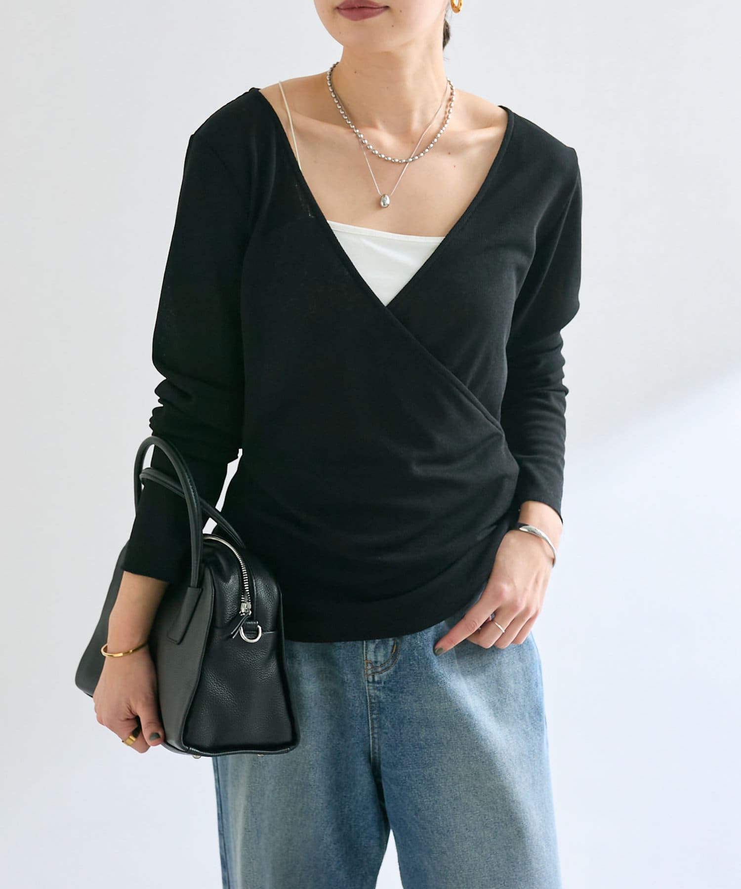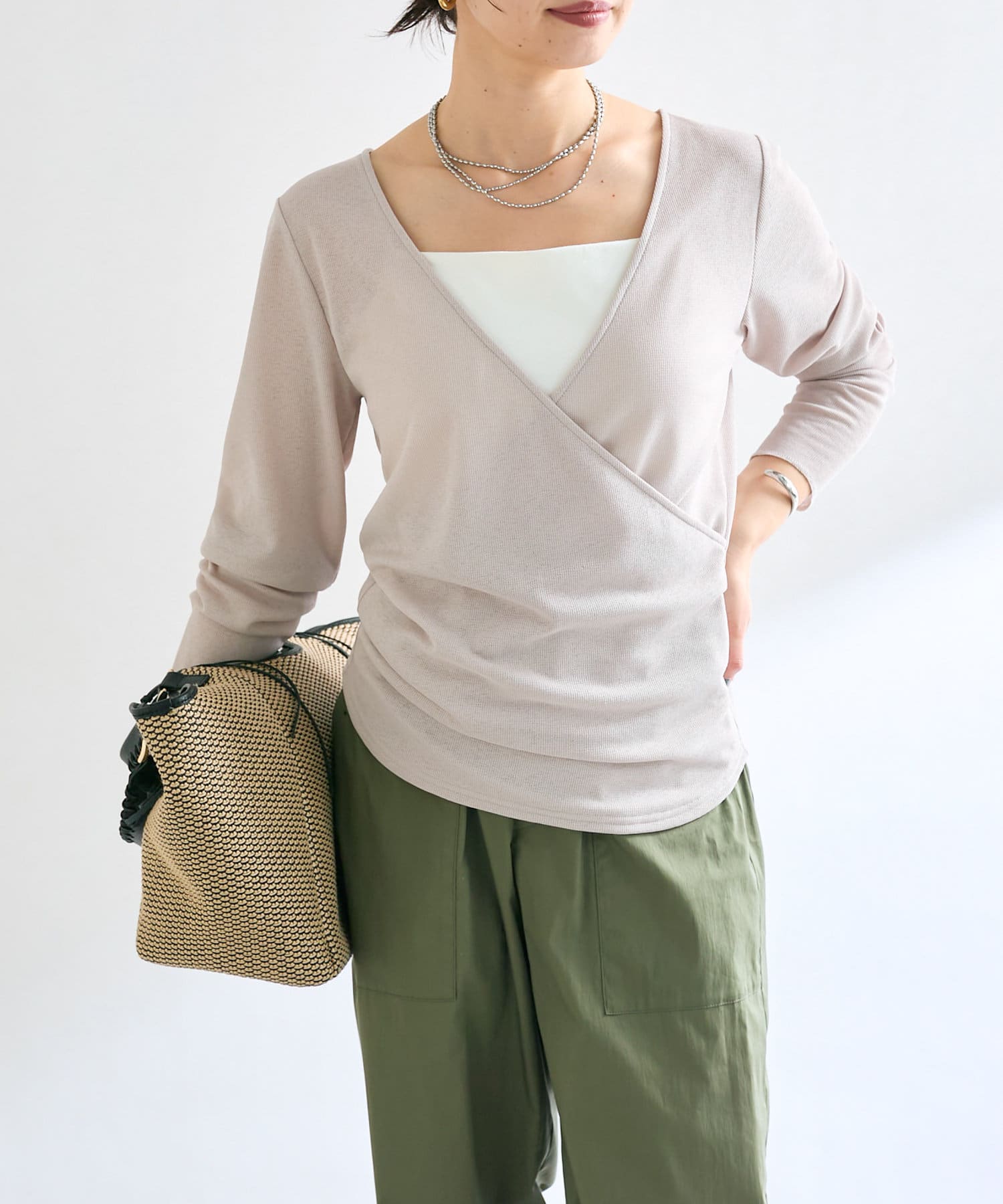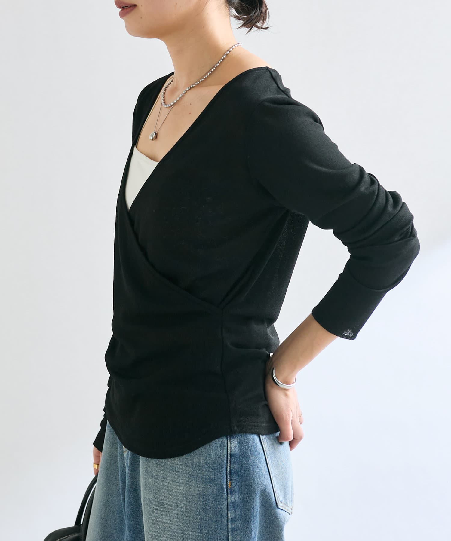 前後2wayで着まわせるカシュクールデザインがポイントのカットソー。