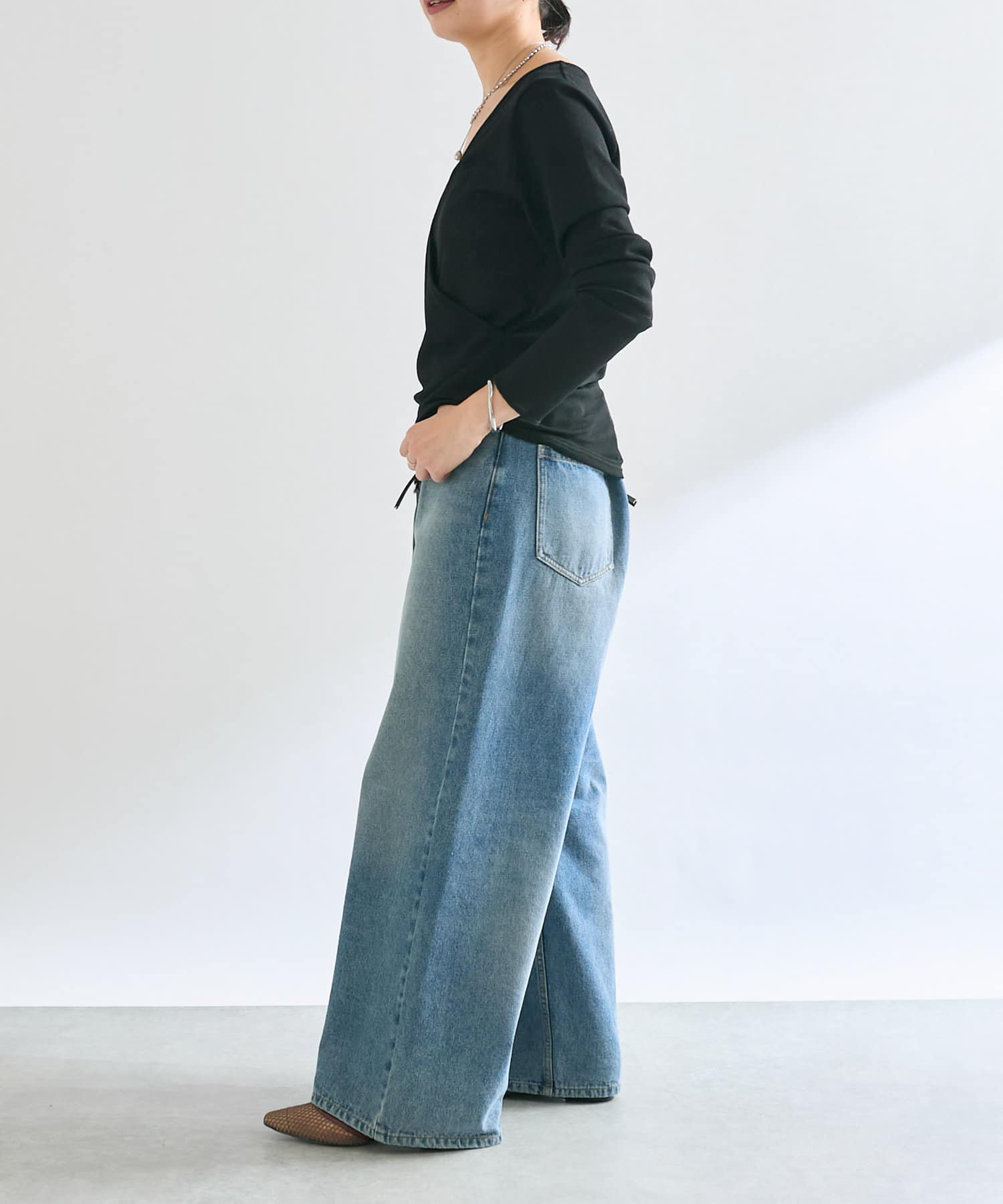 少しシアー感のある繊細な印象のワッフル素材を使用しているので、着用すると柔らかく、女性らしいニュアンスを演出してくれます。