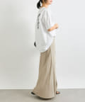 タポタポした身巾と肘がすっぽり隠れる袖、ちょうどヒップをカバーできる着丈のボディとヌケのある衿明きのバランスが◎