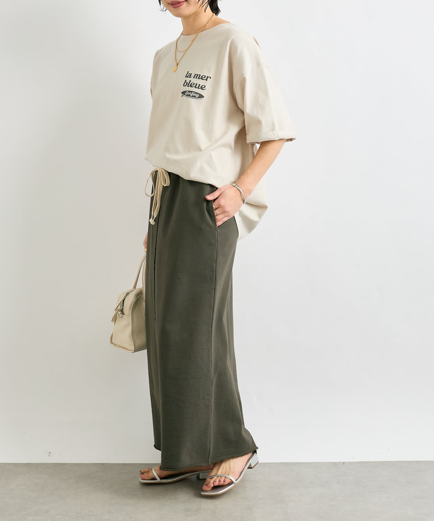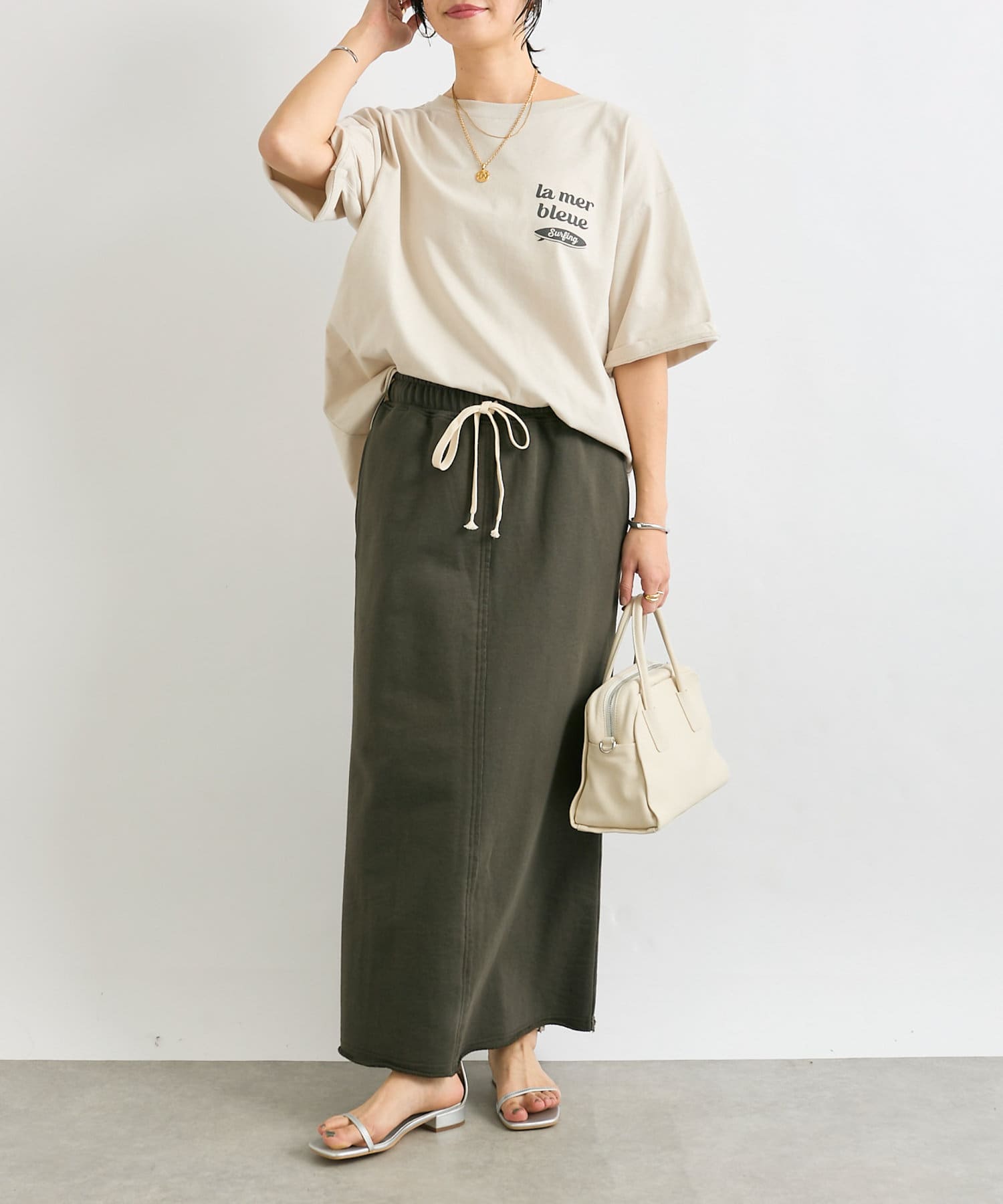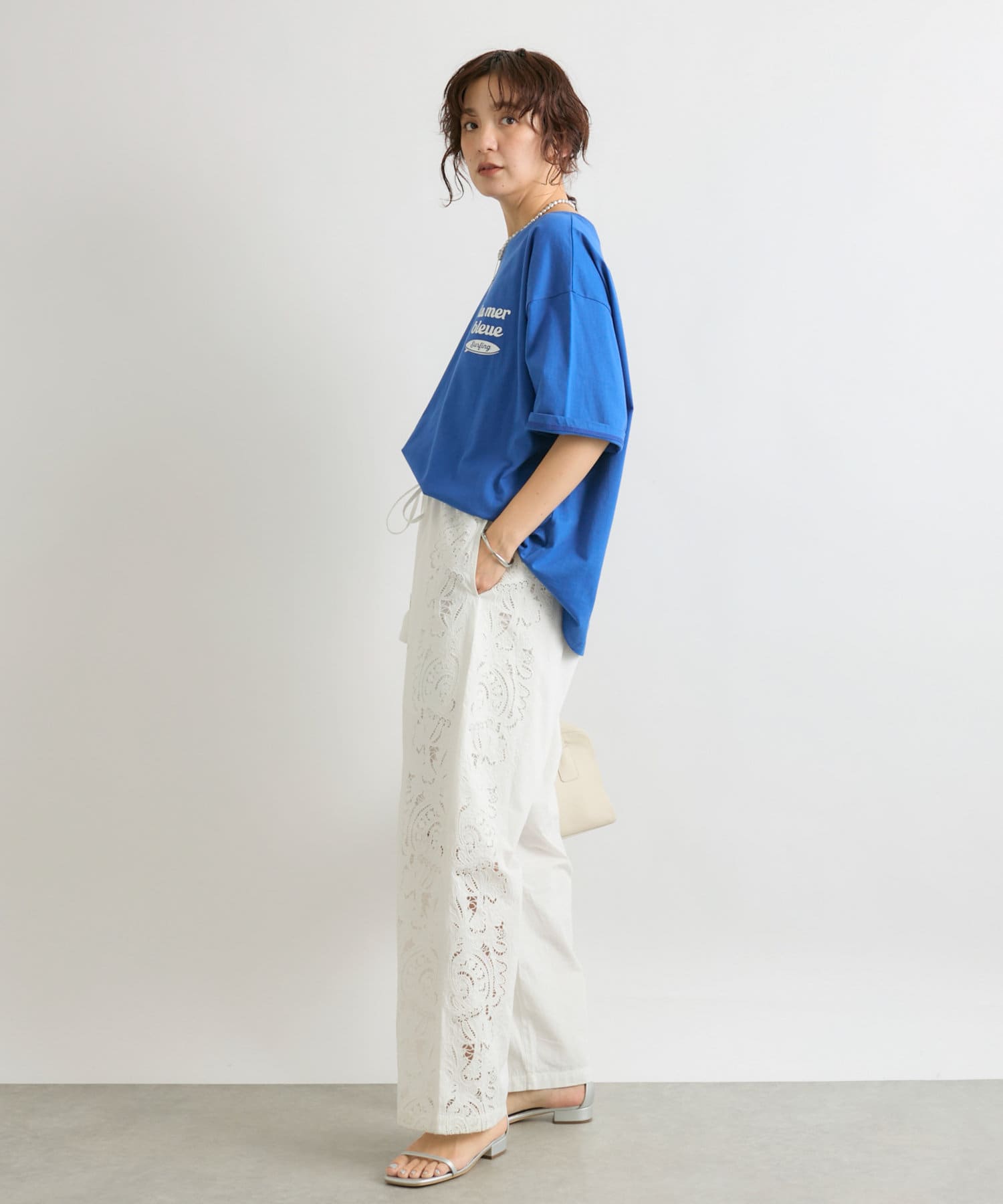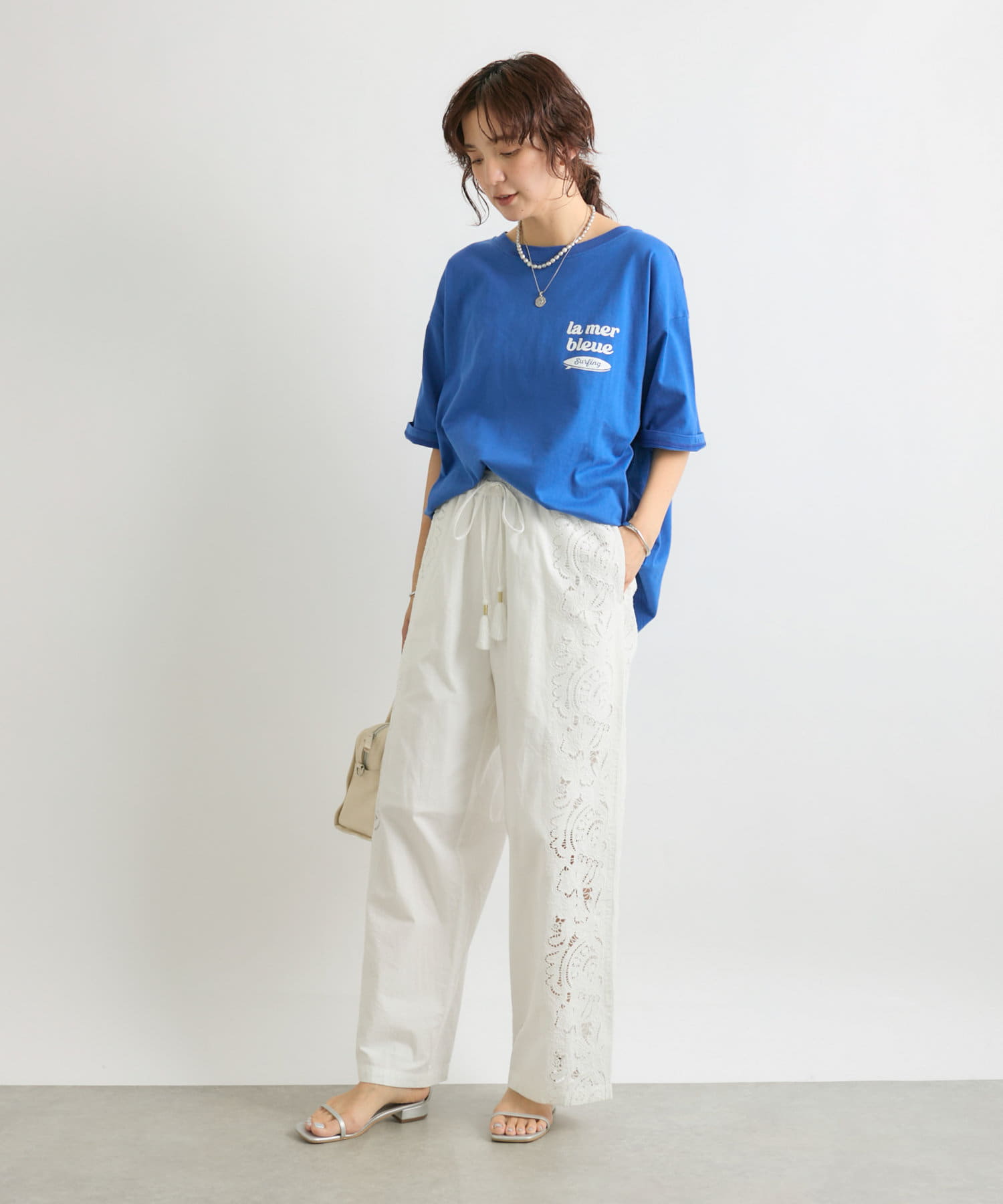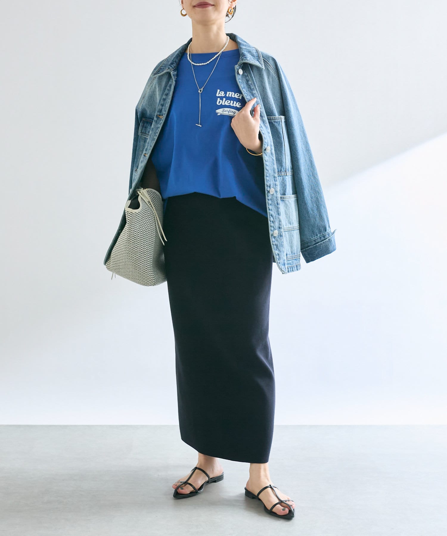 袖をたくし上げたヘルシーな着こなしもサマになる、女性らしさを引き立ててくれるTシャツです。