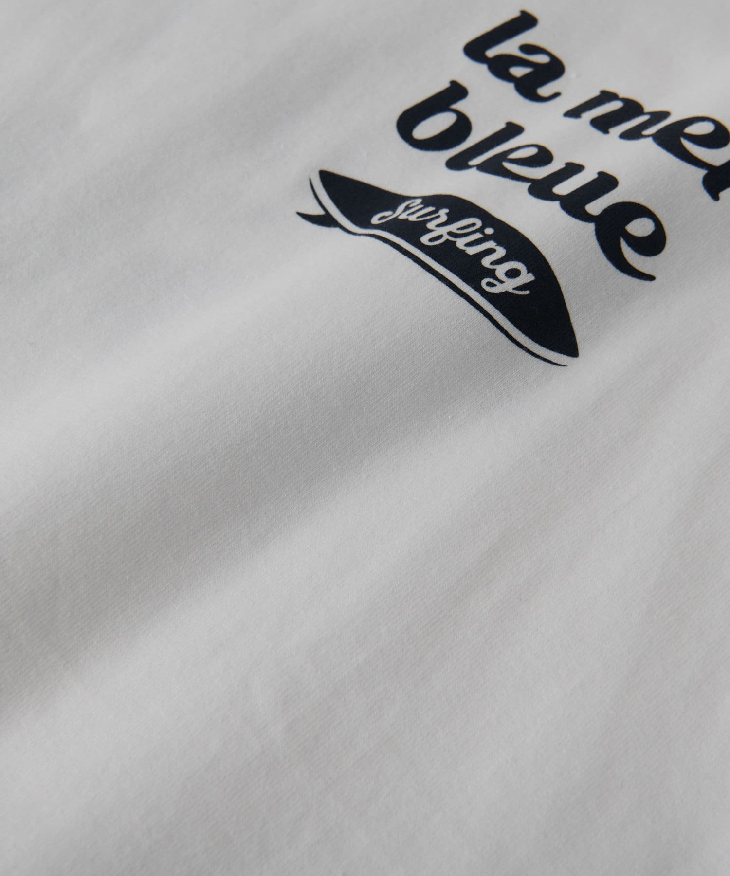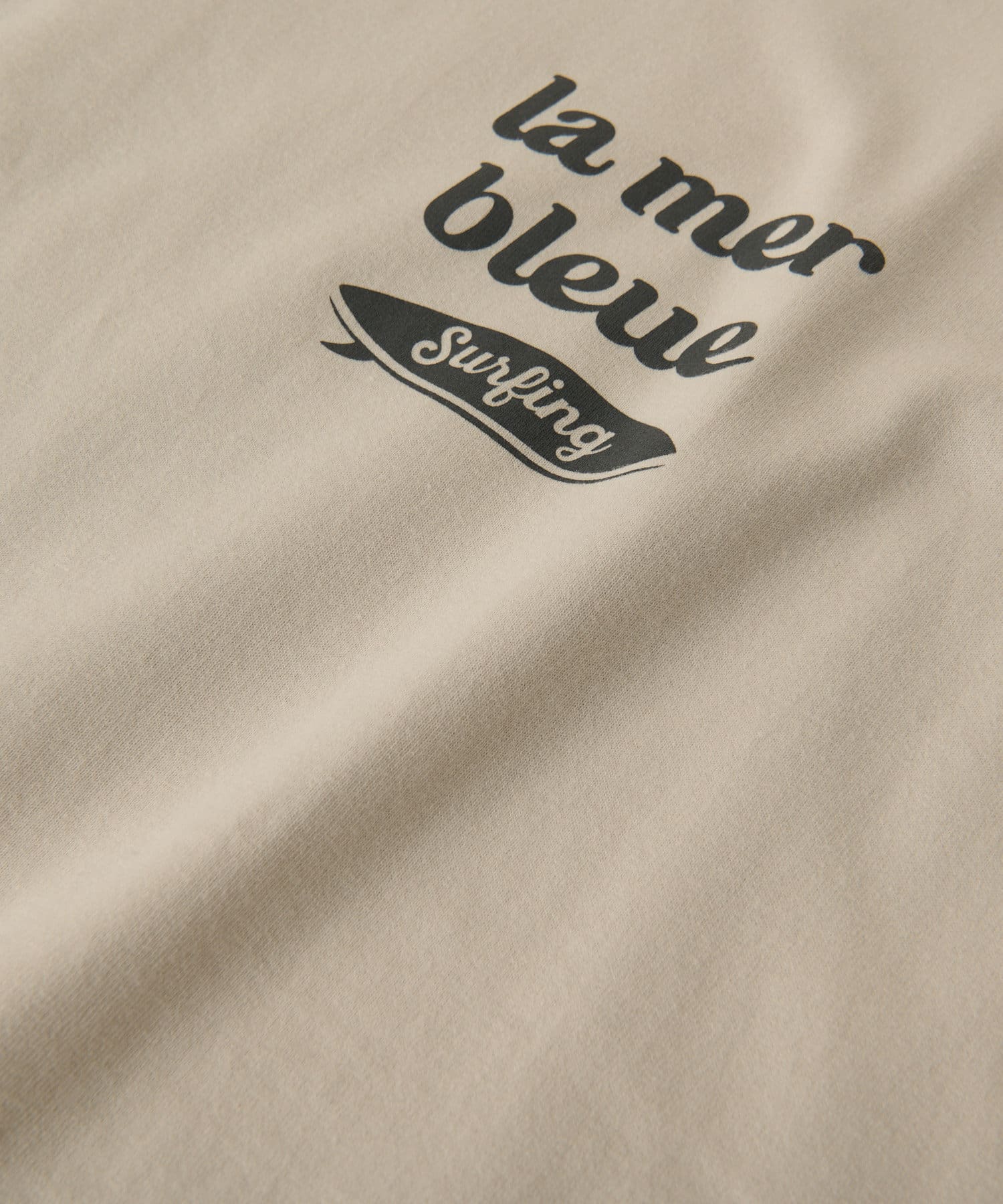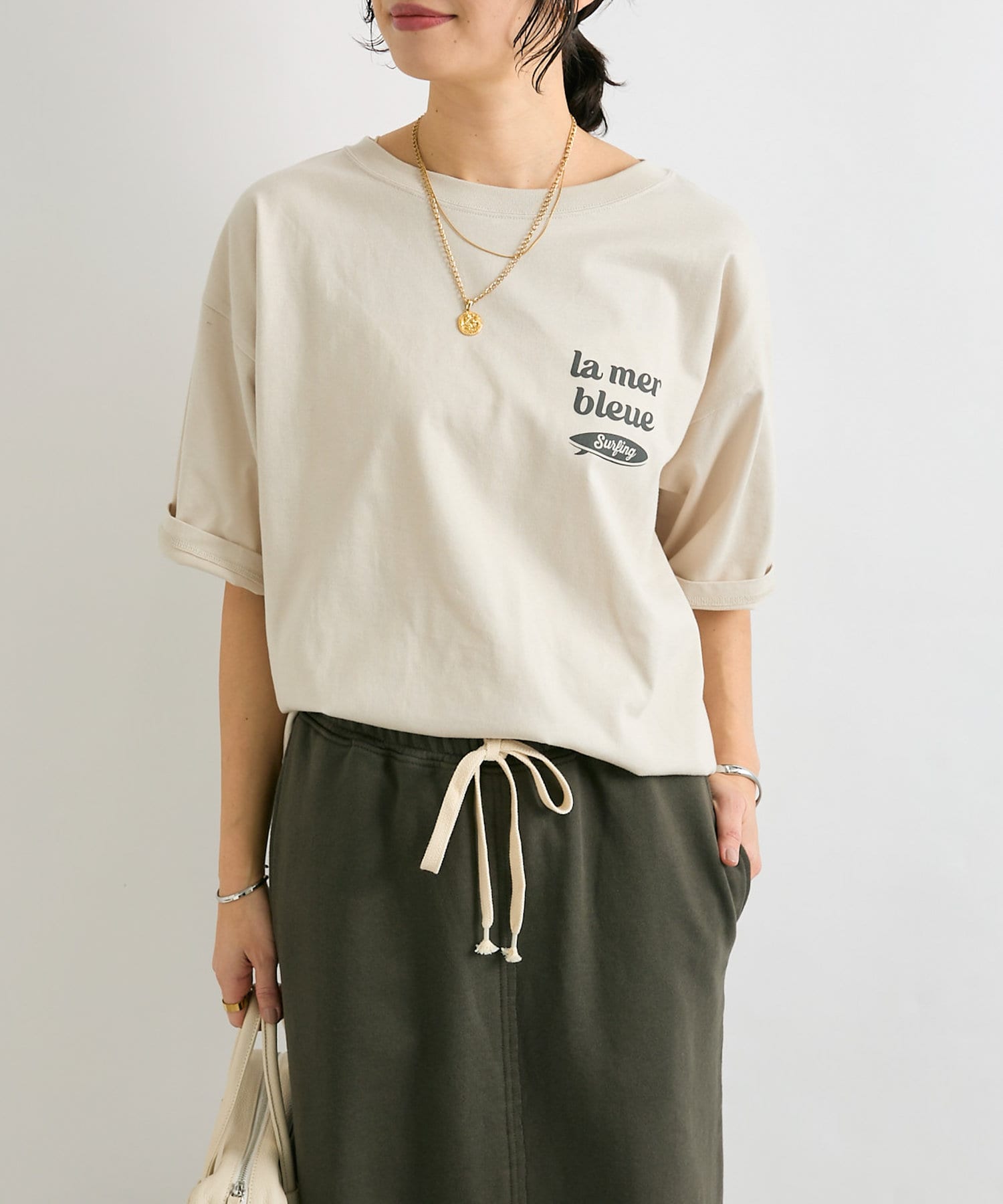 夏とサーフィンへのオマージュを込めたバックロゴプリントがシーズンムードを高めてくれる1着です。