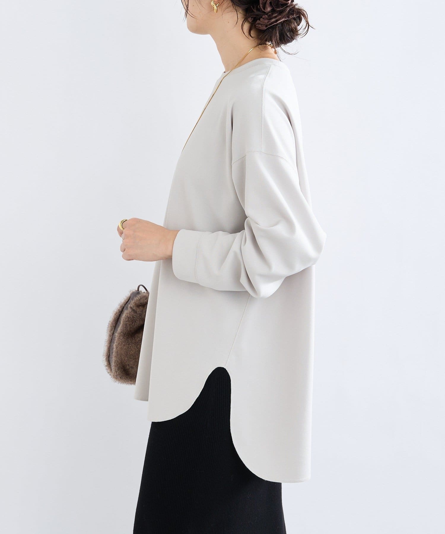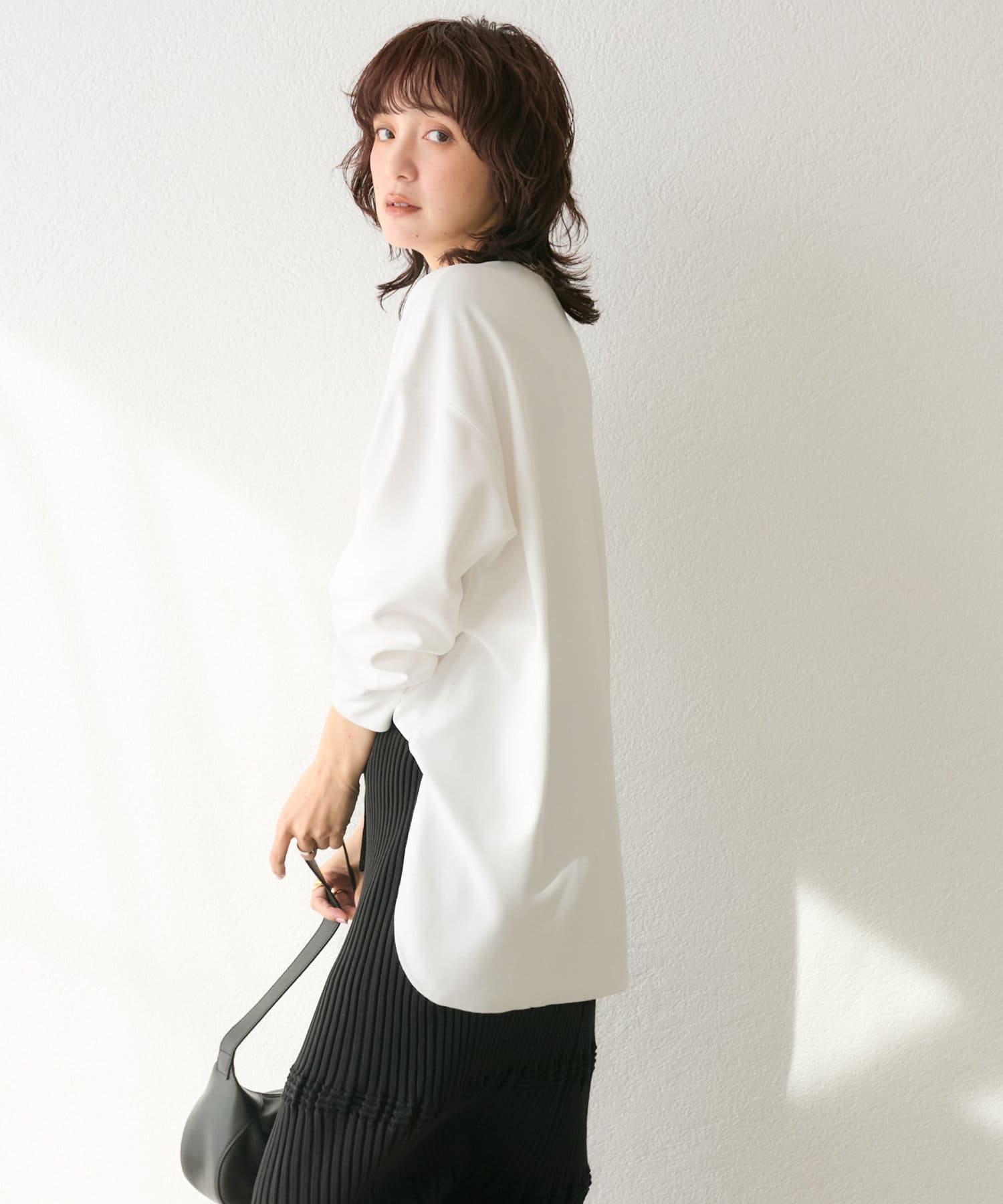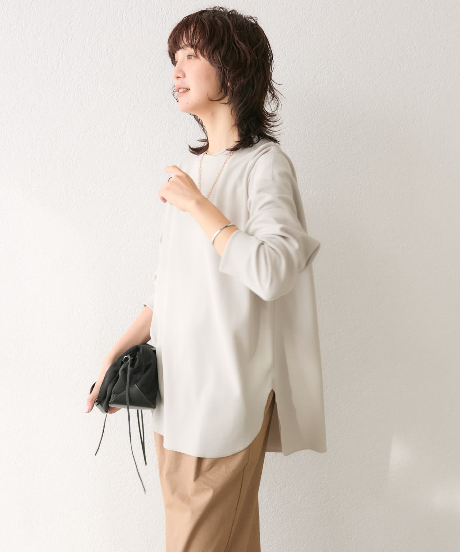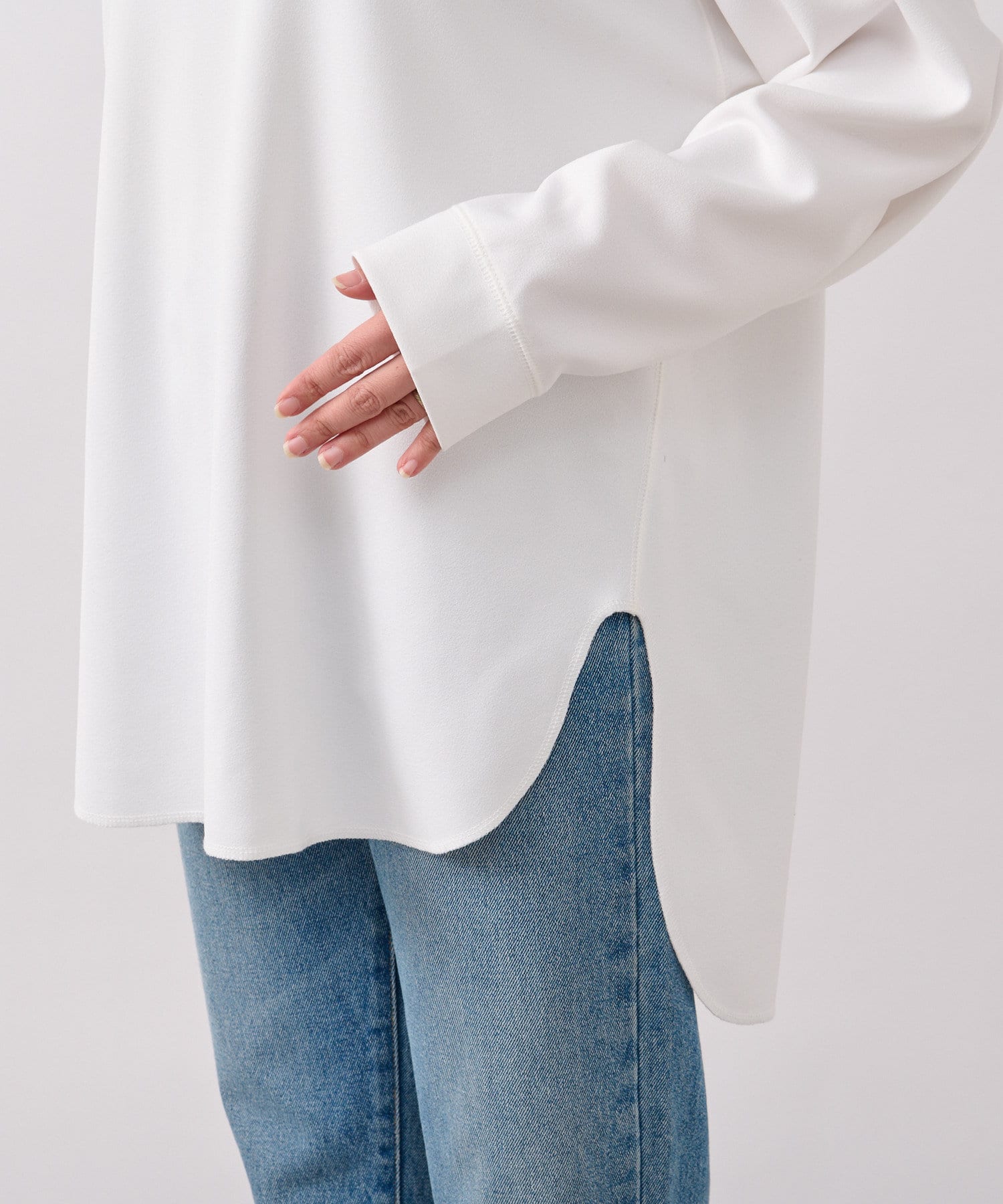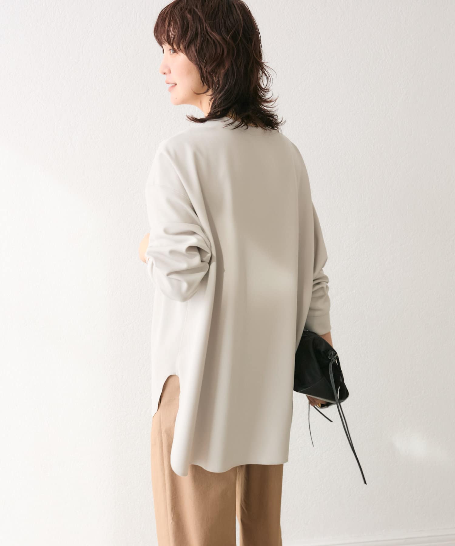 ジャージー素材でありながら、ブラウス見えする上品な質感が特徴。