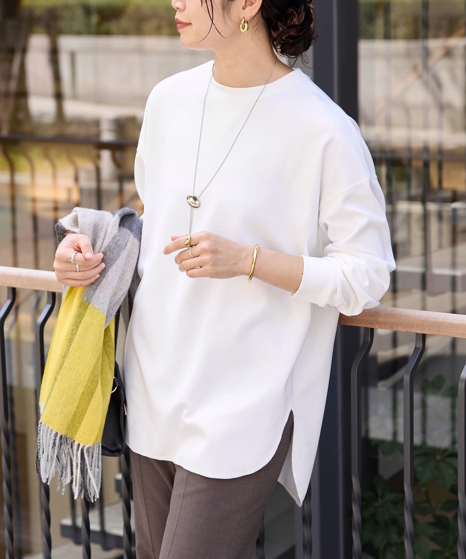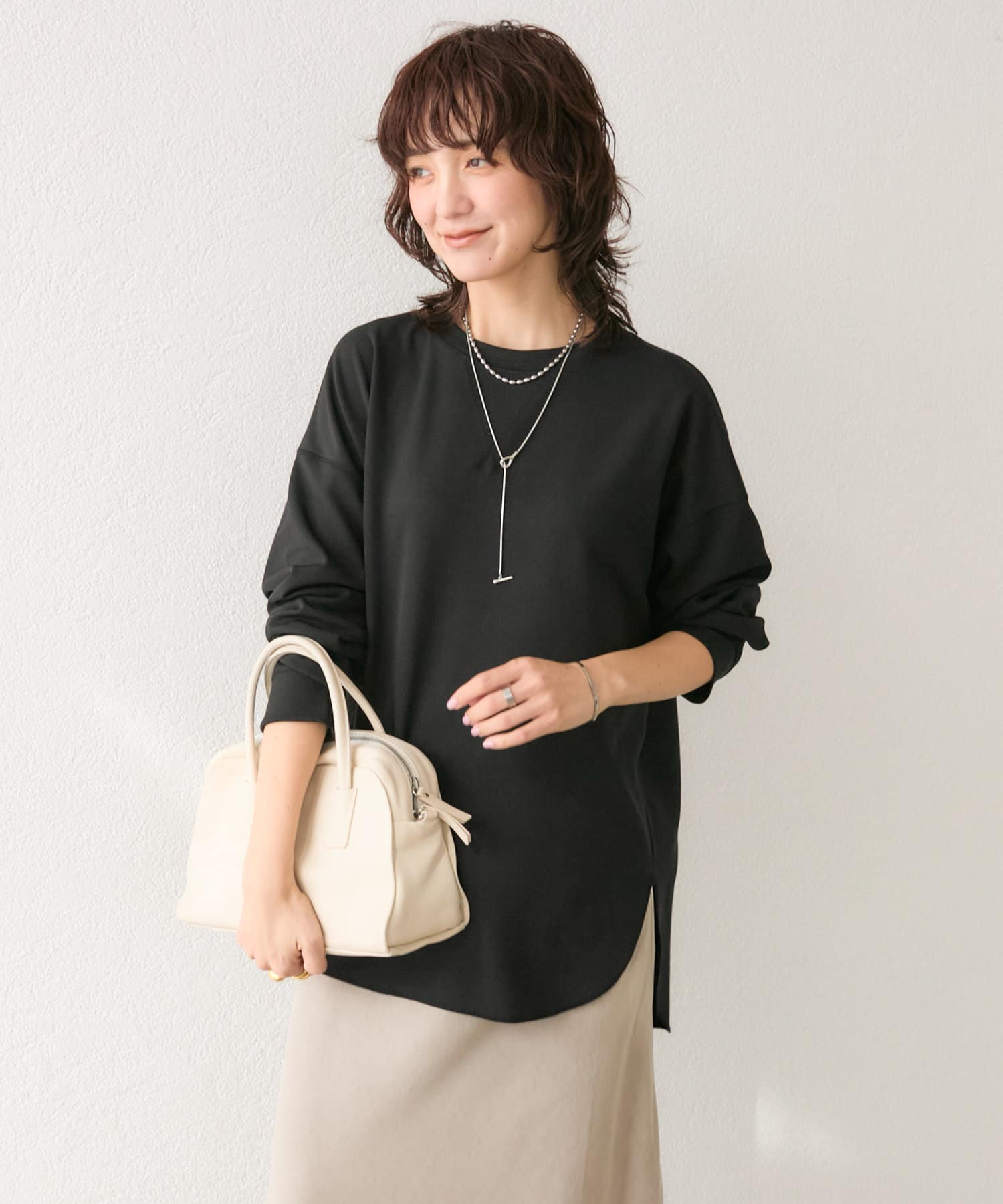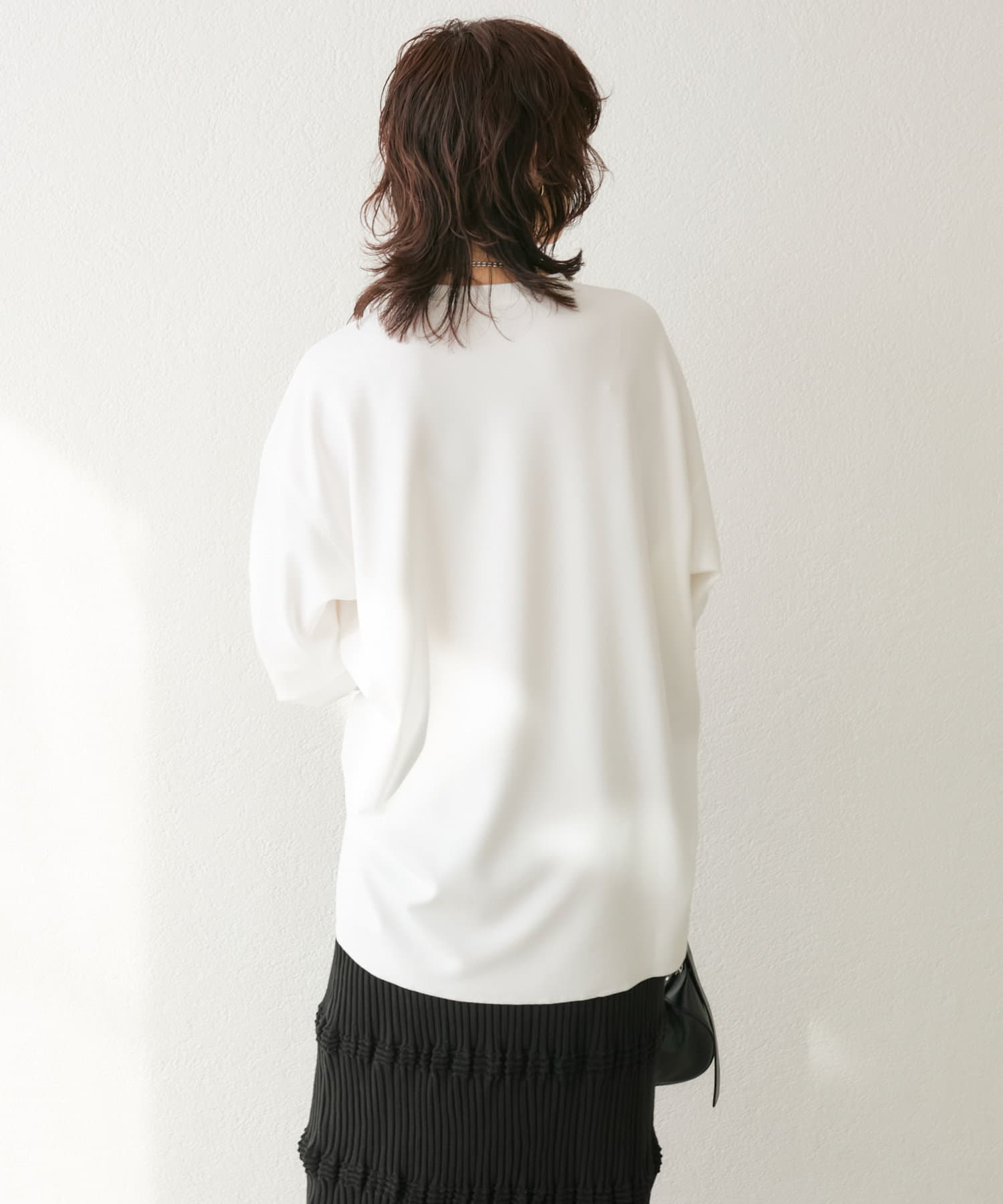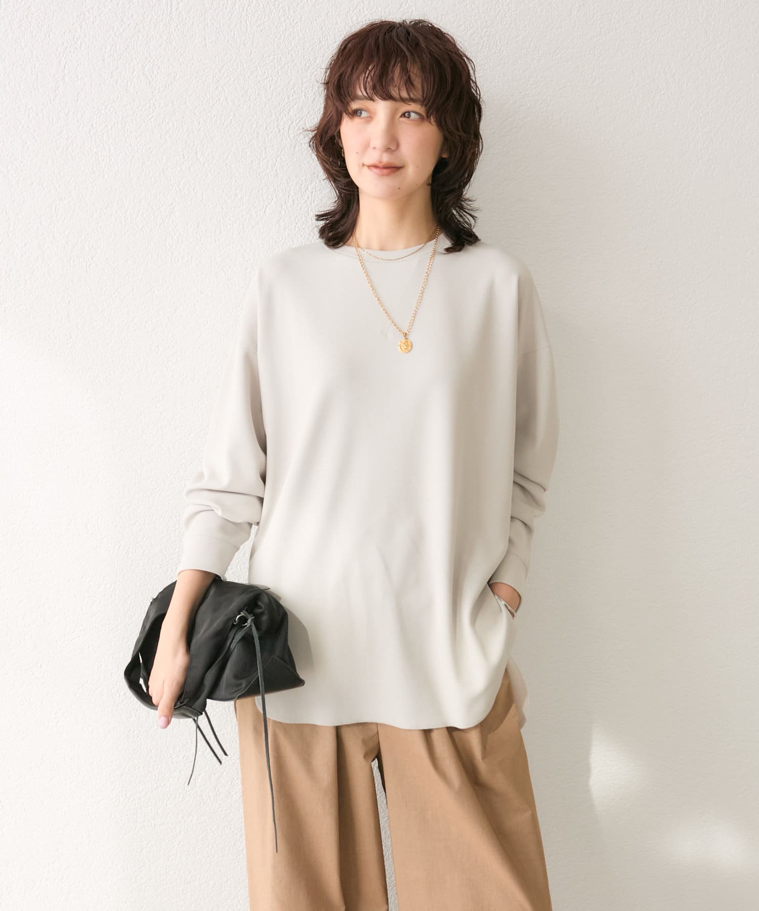 ジャージー素材でありながら、ブラウス見えする上品な質感が特徴。